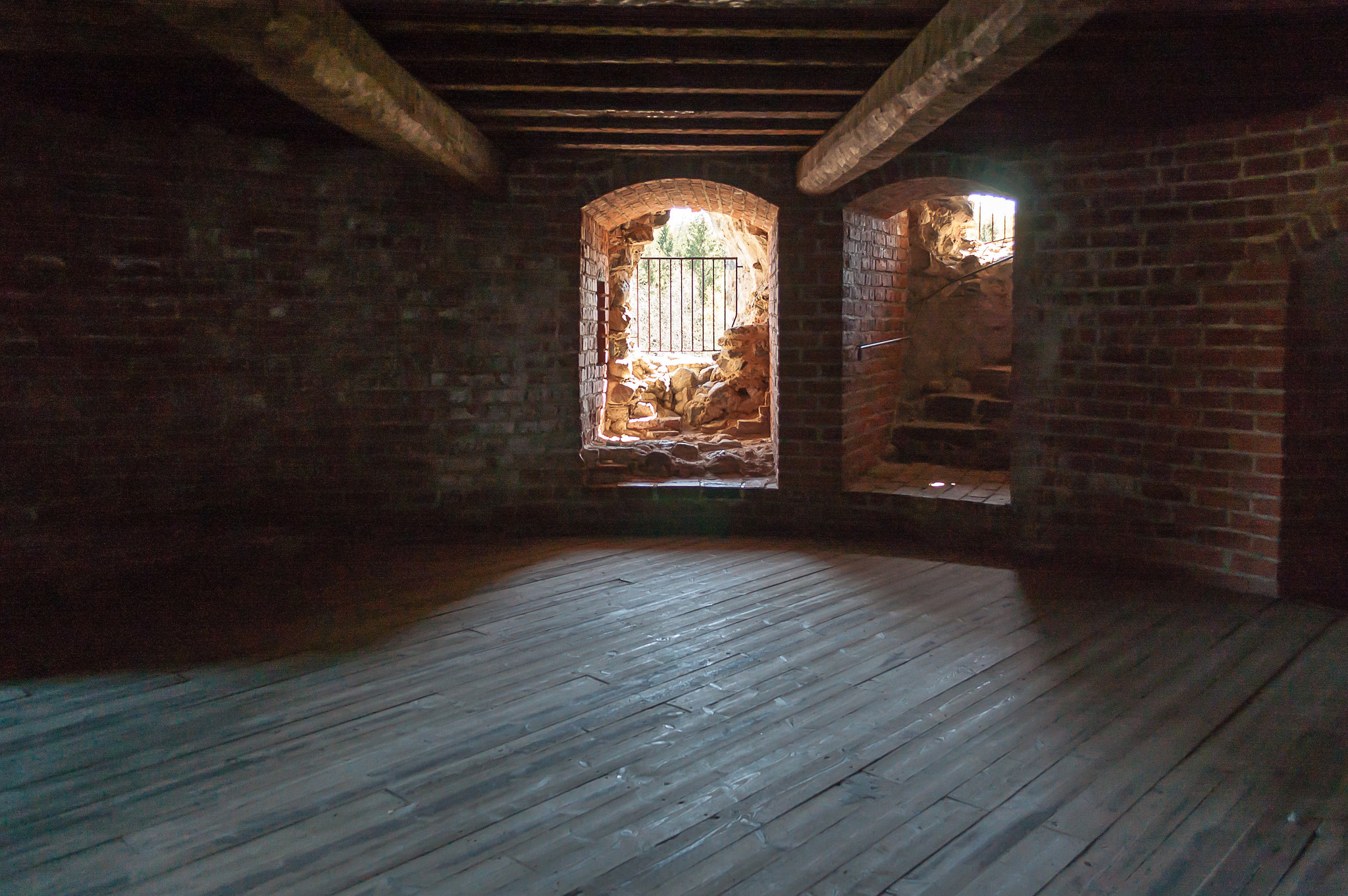24. Согласно схеме замка, на этаже с дырой в полу, сейчас темном, были королевские покои. И не страшно ему было с этой дырой спать? А на следующем этаже, освещенном поярче, была часовня.