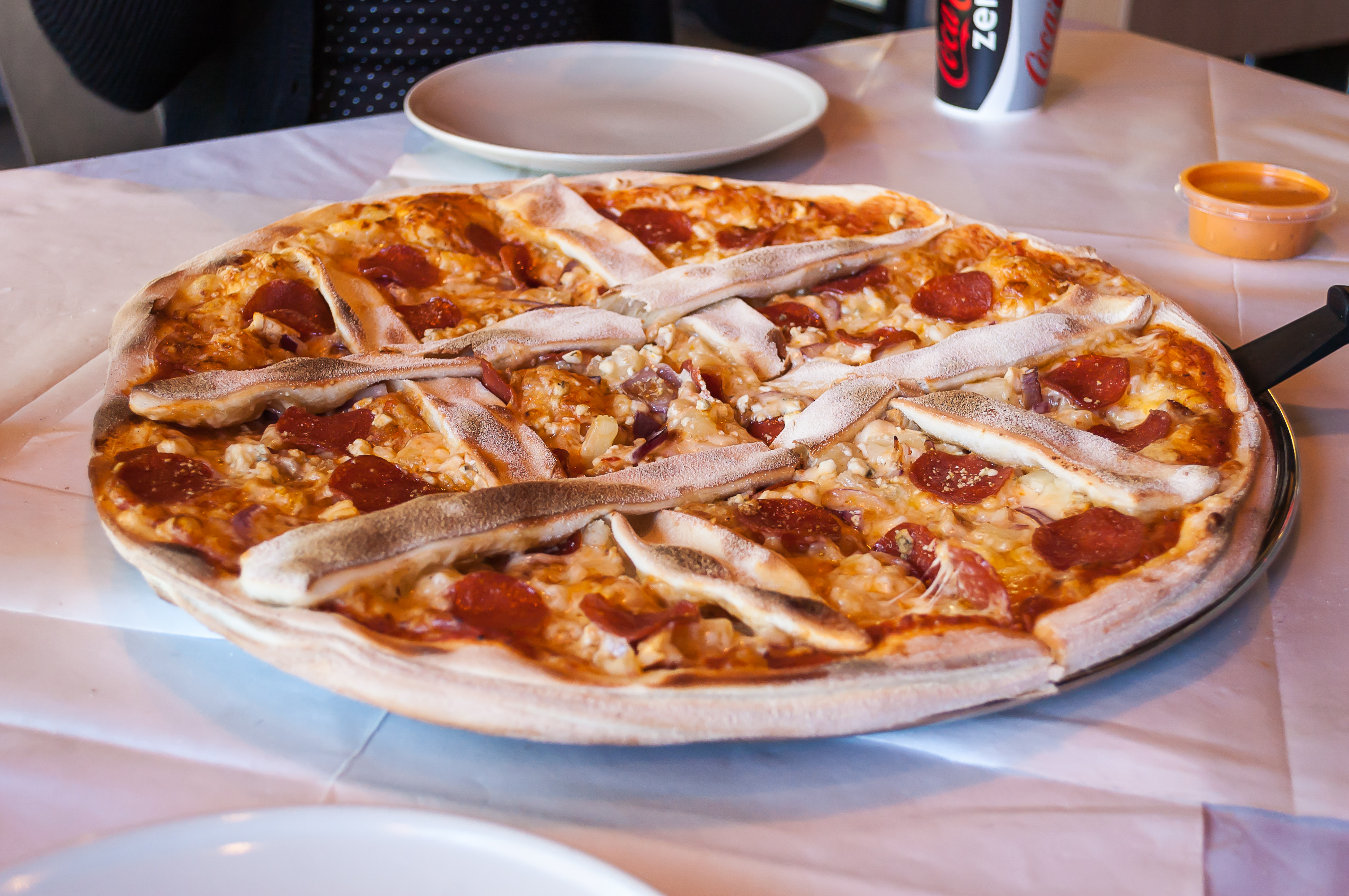 5. Жрат-вопрос после трехсоткилометрового пути уже был весьма актуален даже для меня (а я могу один раз в день спокойно есть, особенно в поездках), и мы зашли в первую попавшуюся забегаловку, «Коти-Пицца». Коти — домашняя по-фински. Несмотря на название, это самая большая сеть пиццерий Северной Европы. В Питере кстати тоже оказывается были, в центре на ул. Восстания, но закрылись по-видимому в прошлом году — то ли крымнаш, то ли сами дураки (я лично вот только сейчас гугля и узнал, что они вообще существовали в Питере). Не помню, сколько стоит такая пицца, но на вкус мне показалась вполне отличной.