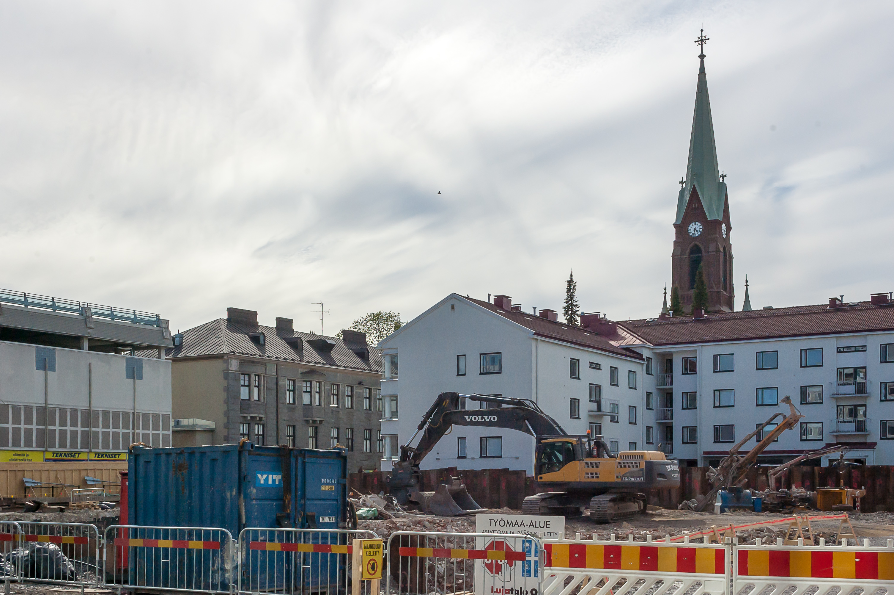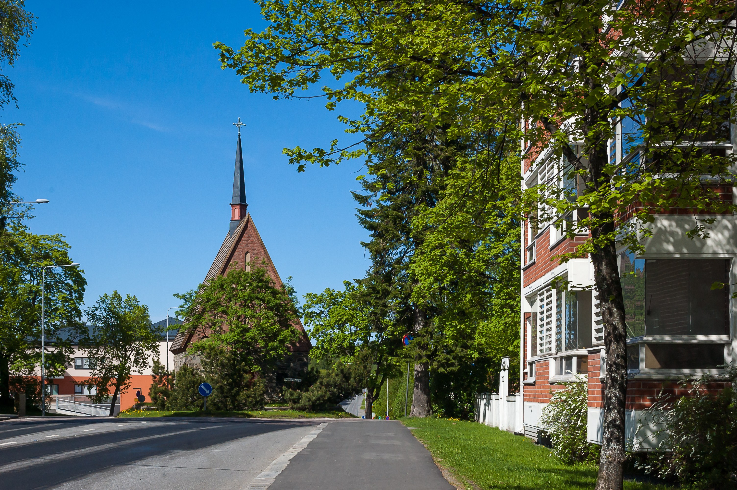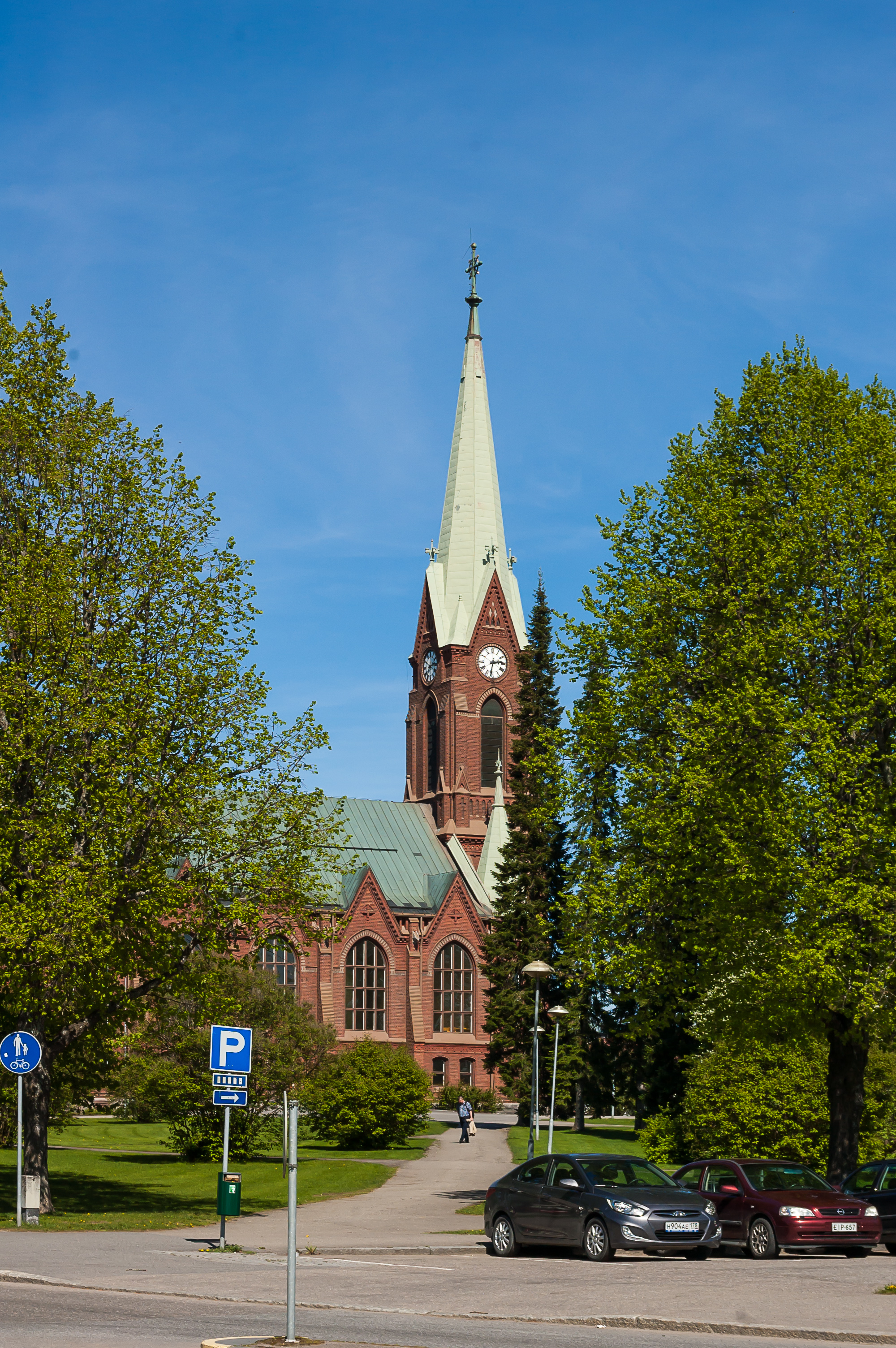 Я забыл дома телефон, который обычно использую в качестве навигатора в дальних поездках, и в итоге ехал по памяти по карте, которую посмотрел заранее. Память на такие вещи у меня идеальная, так что в Миккели я с первого раза нашел нужный магазинчик на улице Юриттяйянкату в небольшой промзоне. Покупка айфона прошла успешно; далее я, следуя своей топографической интуиции, доехал примерно до центра города. Мы оставили машину на бесплатной парковке близ местного собора, и отправились исследовать (и есть).
