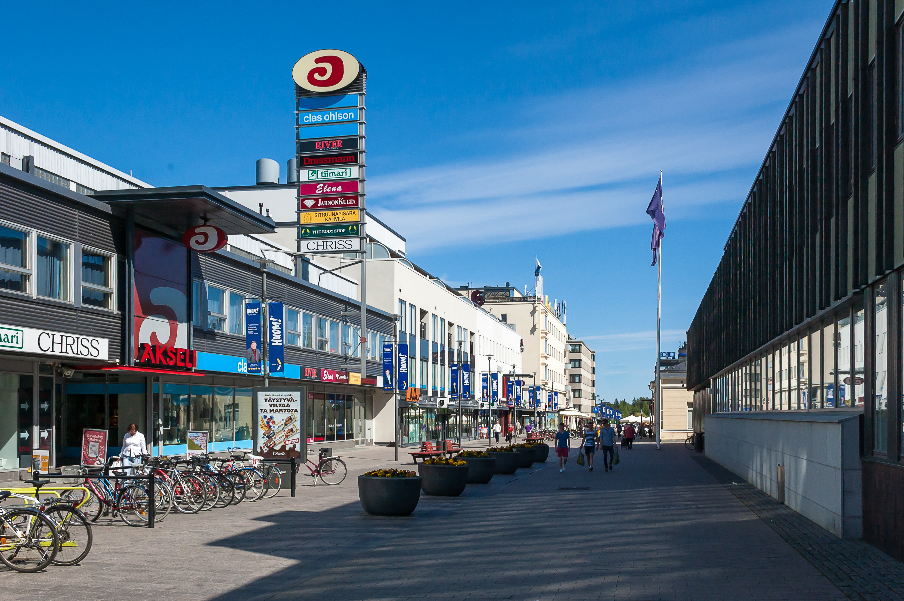 7. Улица Халлитускату проходит через центральную площадь города. По финским меркам здесь очень много народу.