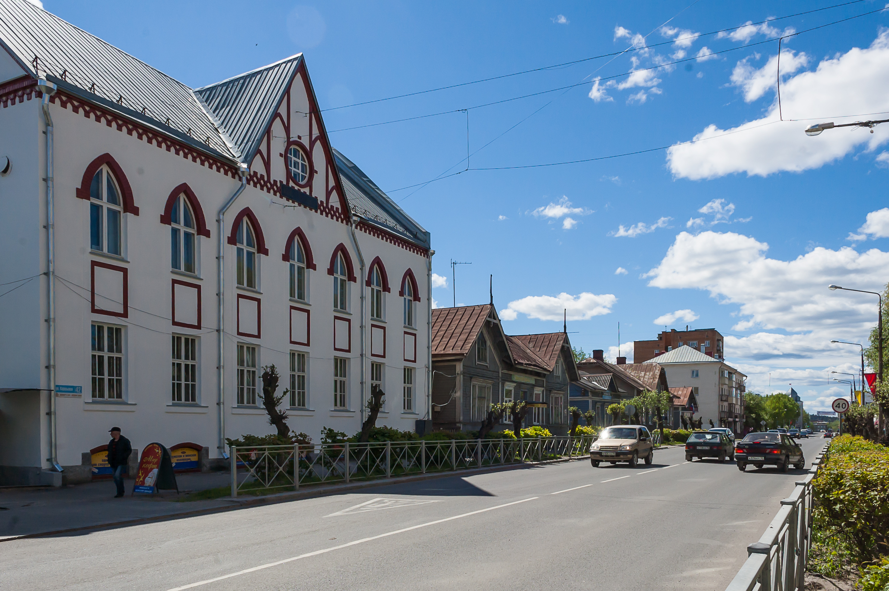 5. Итак, Сортавала. Я еще дома посмотрел, что самое приличное кафе здесь вроде бы называется «Бульвар». Мы оставили машину на боковой улице, и пошли для начала прогуляться по улице главной, по которой проходит трасса «Сортавала». Здесь и правда довольно красиво! Ну не считая хрущевок и разбитых боковых дорог и ужасного частного сектора и прочих прелестей нашей глубинки, конечно.