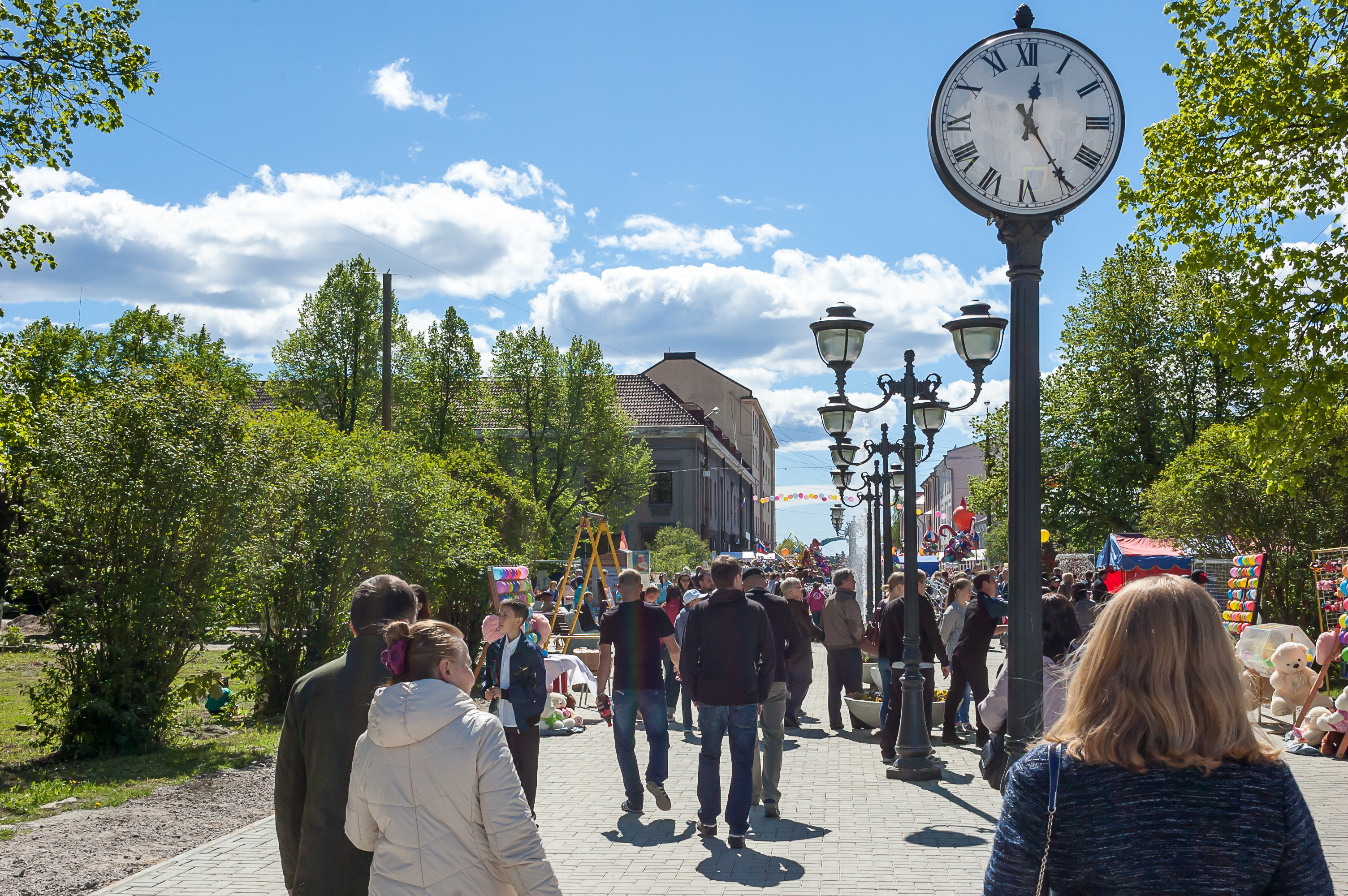 8. Пешеходная аллея в центре Сортавалы. Народу очень много вышло погулять. Много боковых улиц ДПС перекрыли.