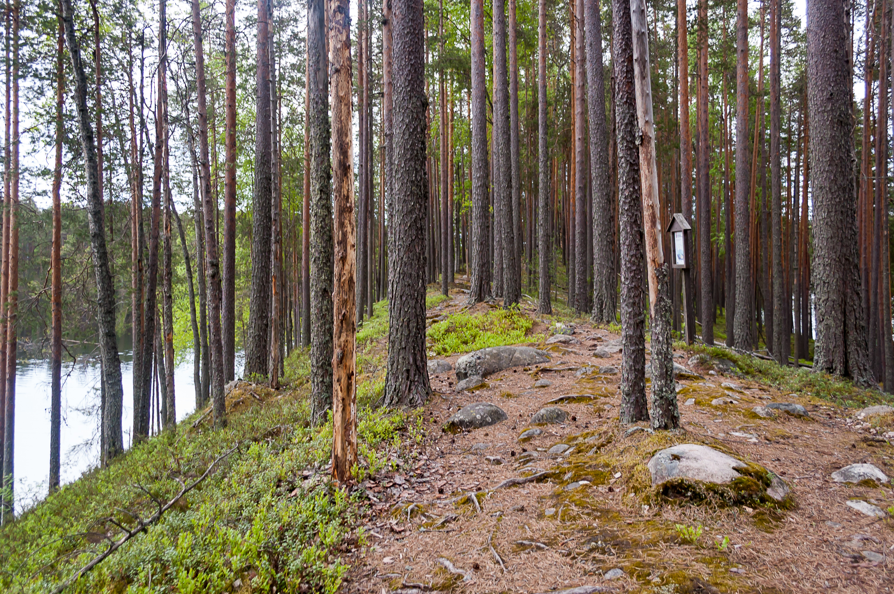 21. Было уже часов семь вечера, но до ночевки в коттеджике мне хотелось посмотреть еще одно место, национальный парк Петкельярви, километрах в двадцати от Иломантси. С местной дороги 5004 Иломантси-Мёхкё в Петкельярви идет симпатичная гравийная дорожка. Петкельярви — очень маленький национальный парк, всего несколько квадратных километров полуостровов и перешейков в лабиринте одной из местных озерных систем.