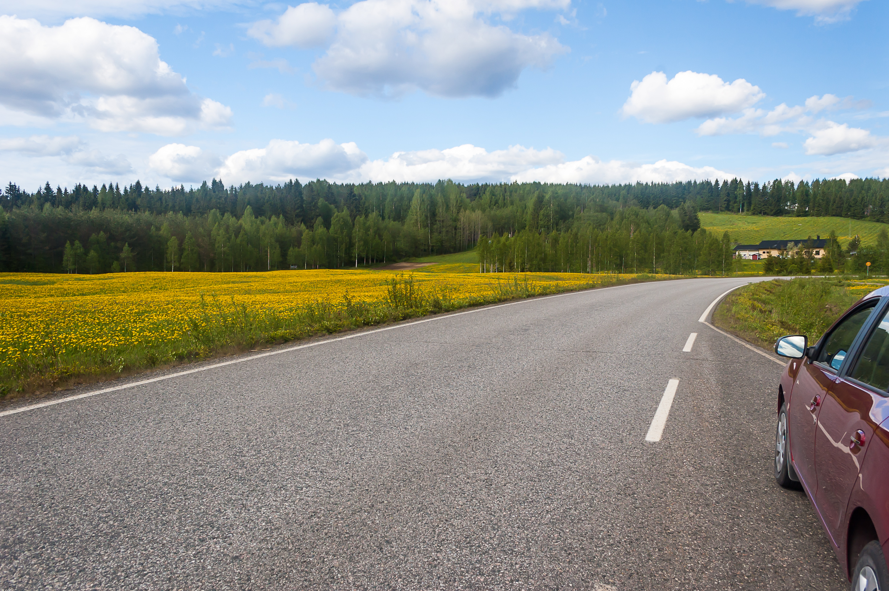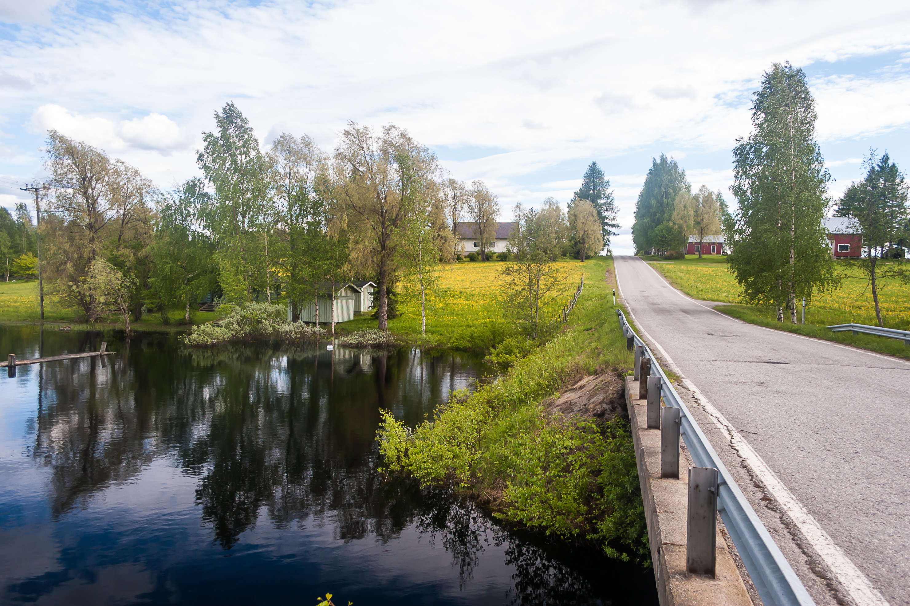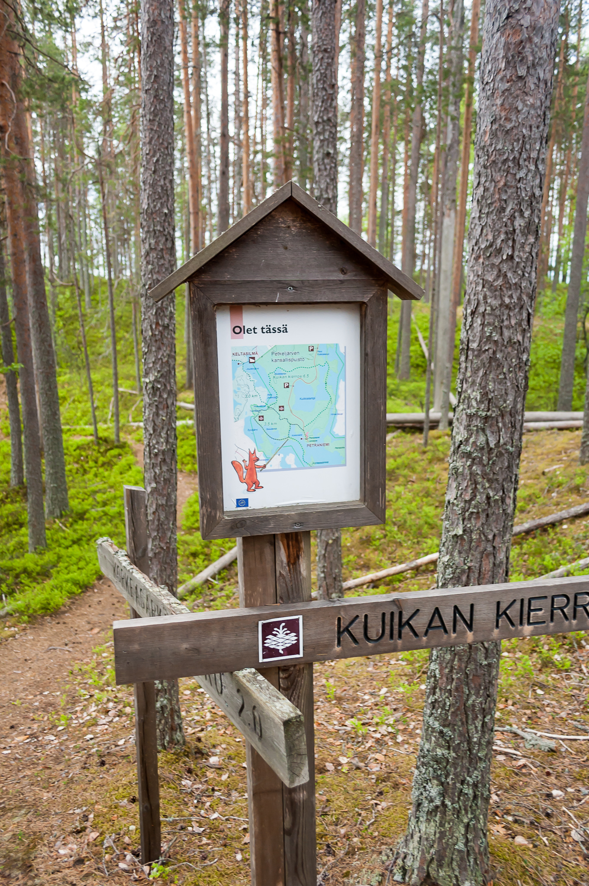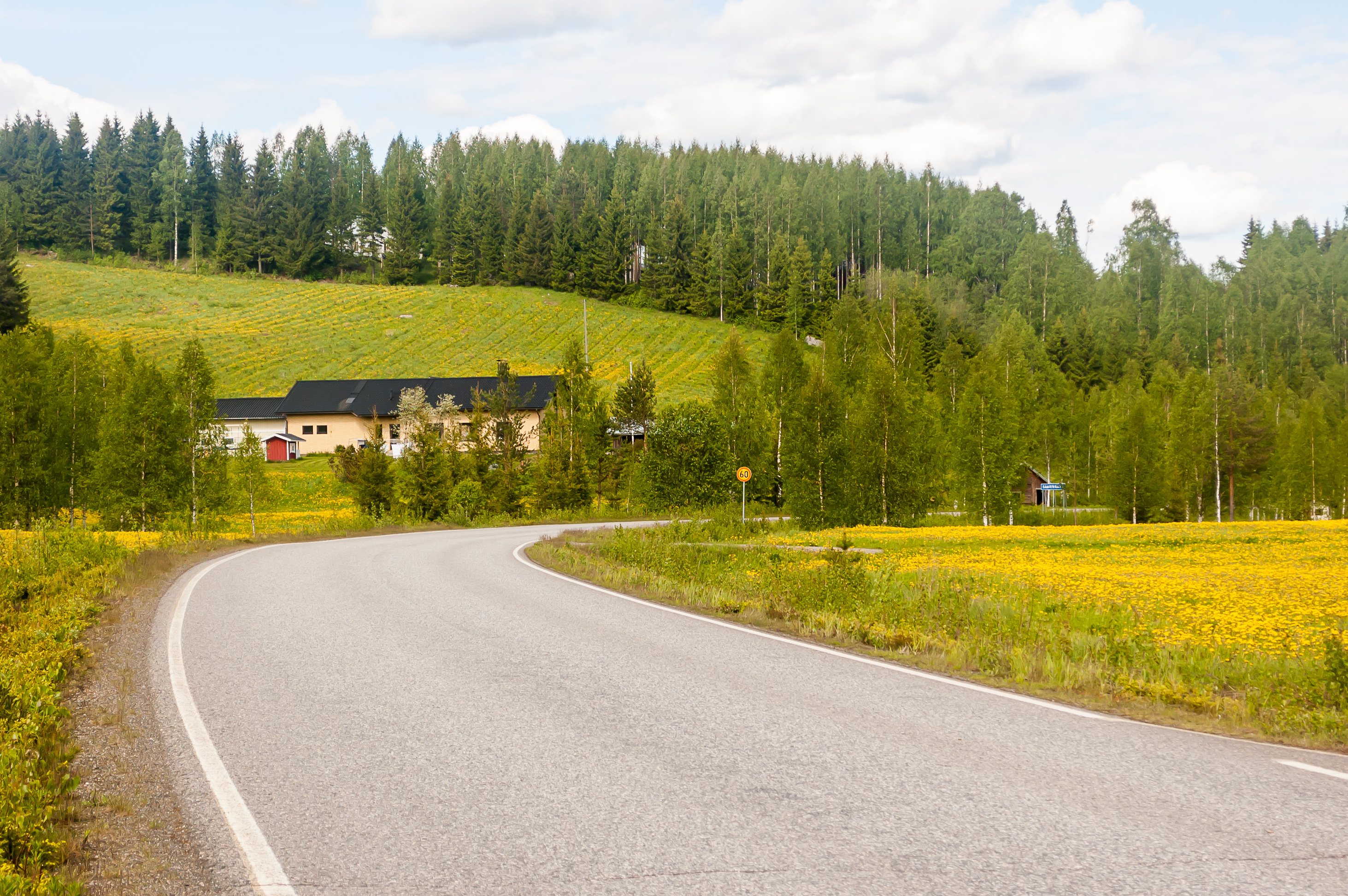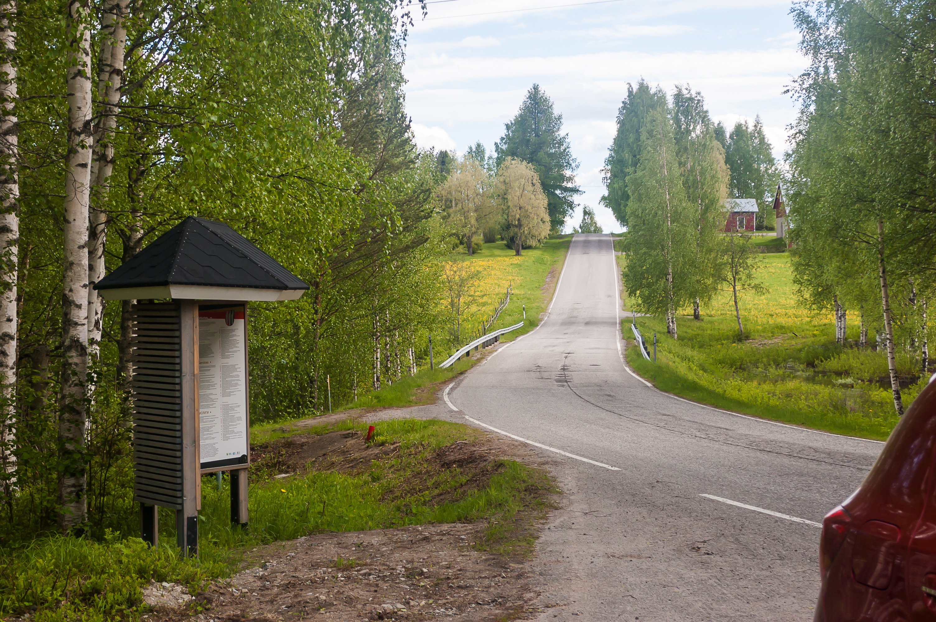 1. Итак, в Йоэнсуу мы не поехали, а вместо этого почти сразу после пересечерния границы повернули направо, на региональную дорогу номер 500. Дорога проходит большой поселок Вяртсиля (наверное, туда переехали финны из того Вяртсиля, что оказался на советской территории после войны), а дальше сужается — даже осевой разметки нет, как на норвежских горных дорогах. Движение — одна машина в несколько минут. Дорога — по лесам, деревням и мимо множества небольших озер — однако, живописна; она является частью туристического автомобильного маршрута «Карельский тракт» (он же «Дорога рун и приграничья») — цепь дорог, идущих максимально близко к российской границе от Финского залива до Лапландии.