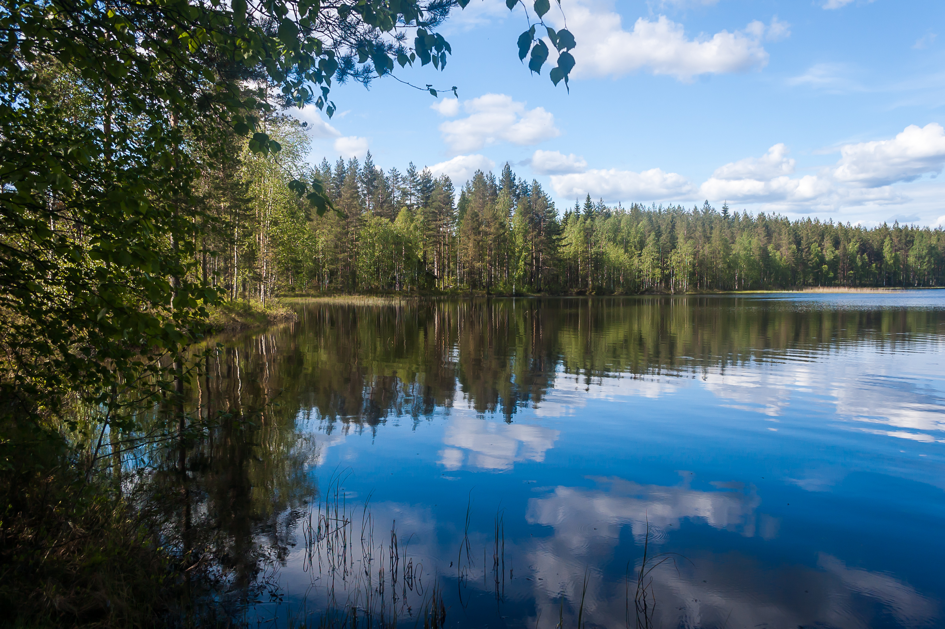 Погранпереход Ниирала — финская сторона погранперехода Вяртсиля — находится в муниципалитете Тохмаярви провинции Северная Карелия. От Ниирала начинается трасса 9, идущая прямо в столицу Северной Карелии, город Йоэнсуу (далее: Куопио — Ювяскюля — Тампере — Турку; во многих местах маршрут 9 фактически проходит по участкам других дорог). Мы, однако, в этот раз в Йоэнсуу не собирались, да и вообще не собирались в крупные города. У нас был забронирован коттеджик на базе отдыха Рухкаранта в муниципалитете Иломантси, еще в 70 км на север. Рухкаранта — место не только приятное, но и весьма дешевое на самом деле. Это был мой первый опыт ночевки в финских коттеджиках, но о нем я расскажу чуть позже, а пока собственно немного пейзажей Северной Карелии.