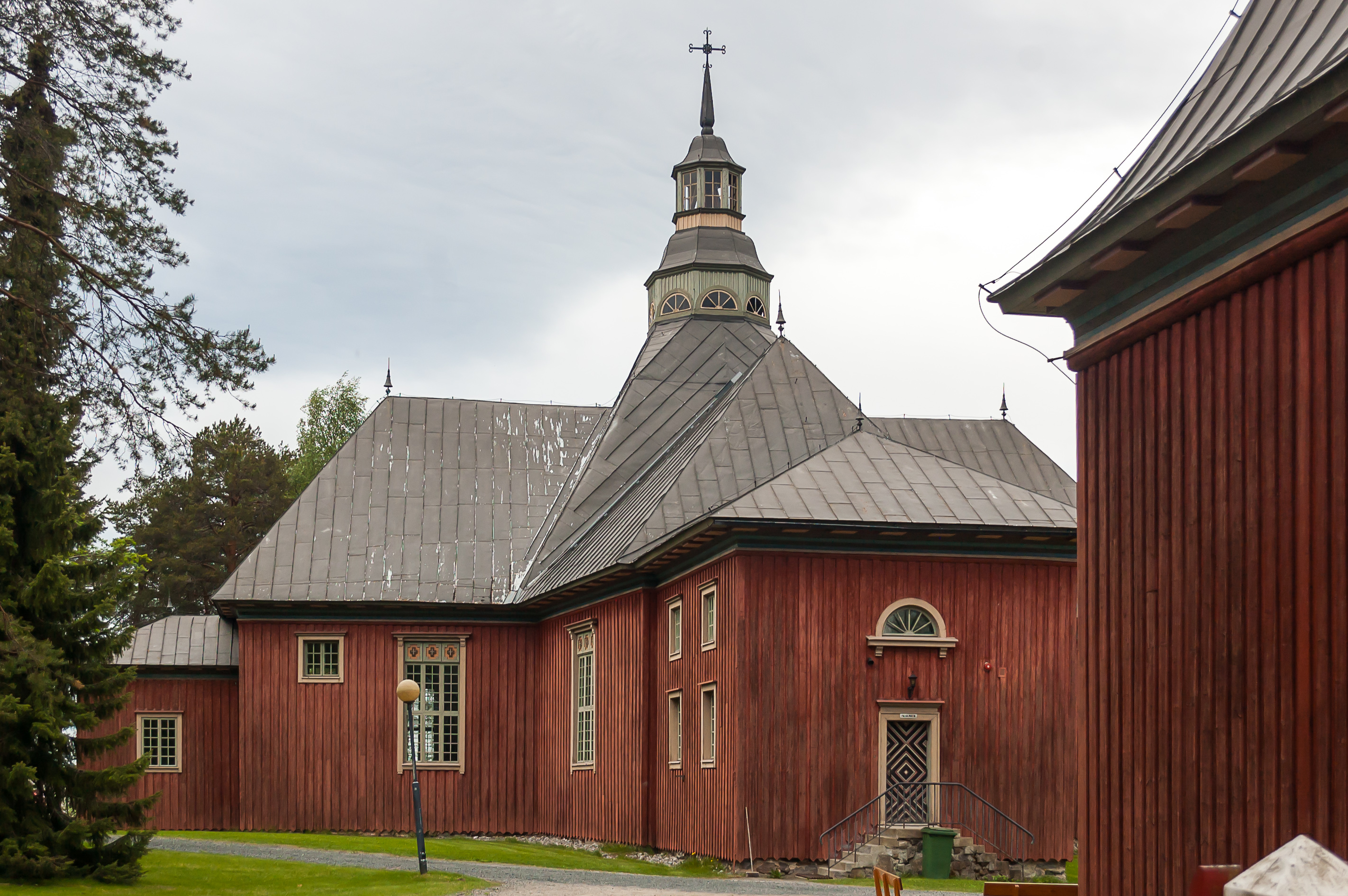 17. Дорога 500 закончилась — в конце сворачиваем налево и через несколько километров приезжаем в городок-«погост» Иломантси. Население — несколько тысяч. Типичный сонный финский городок, нетуристический. Мы купили немного еды в местном К-Маркете (удачно), поискали работающее кафе (неудачно), и посмотрели местную достопримечательность — церковь Ильи Пророка. Это самая большая деревянная православная церковь в Финляндии.