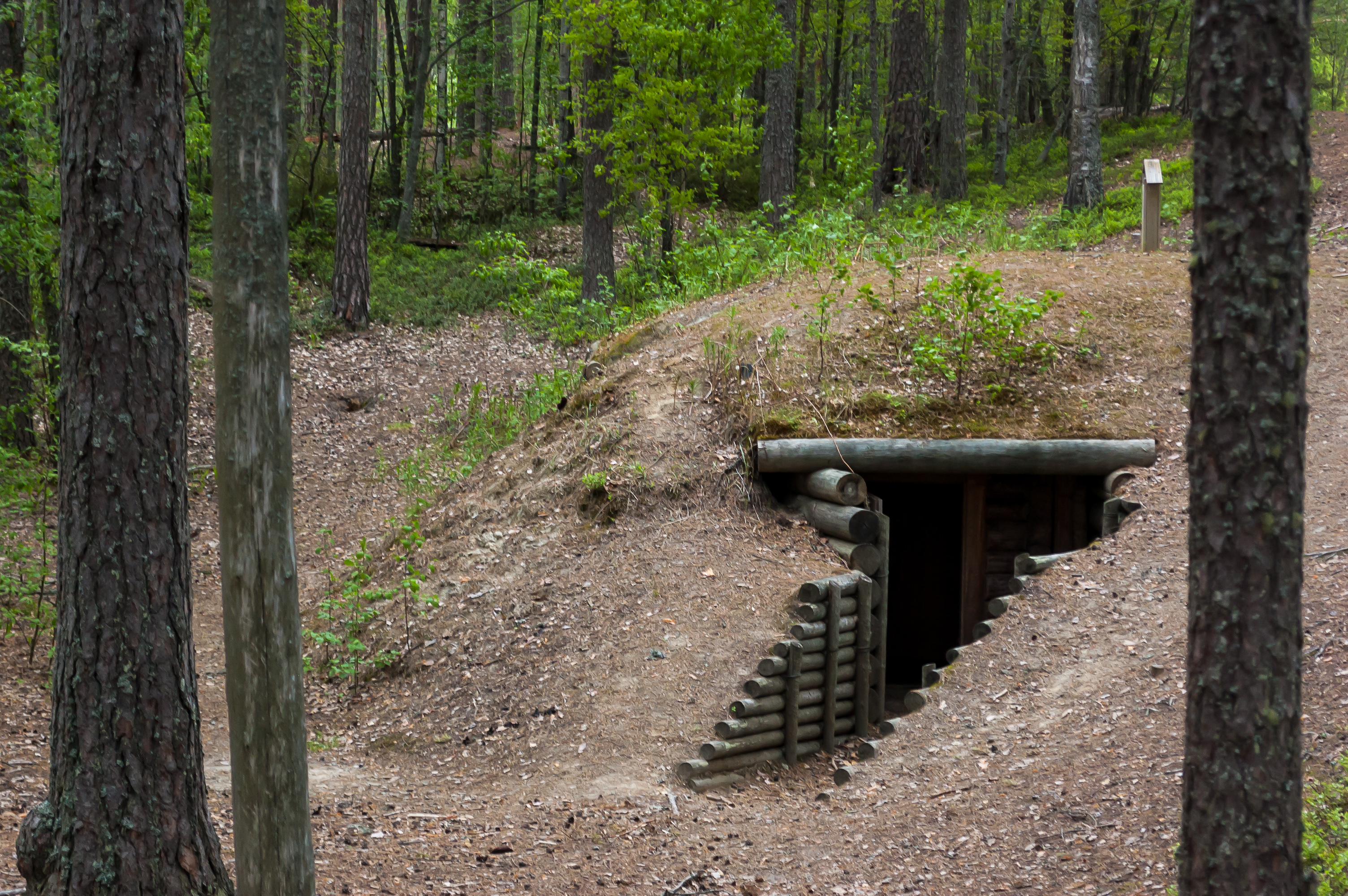 22. Блиндаж. Можно зайти и посмотреть с фонариком (ничего особо интересного). Блиндаж и траншея с предыдущего фото, по-видимому, специально восстановленные.