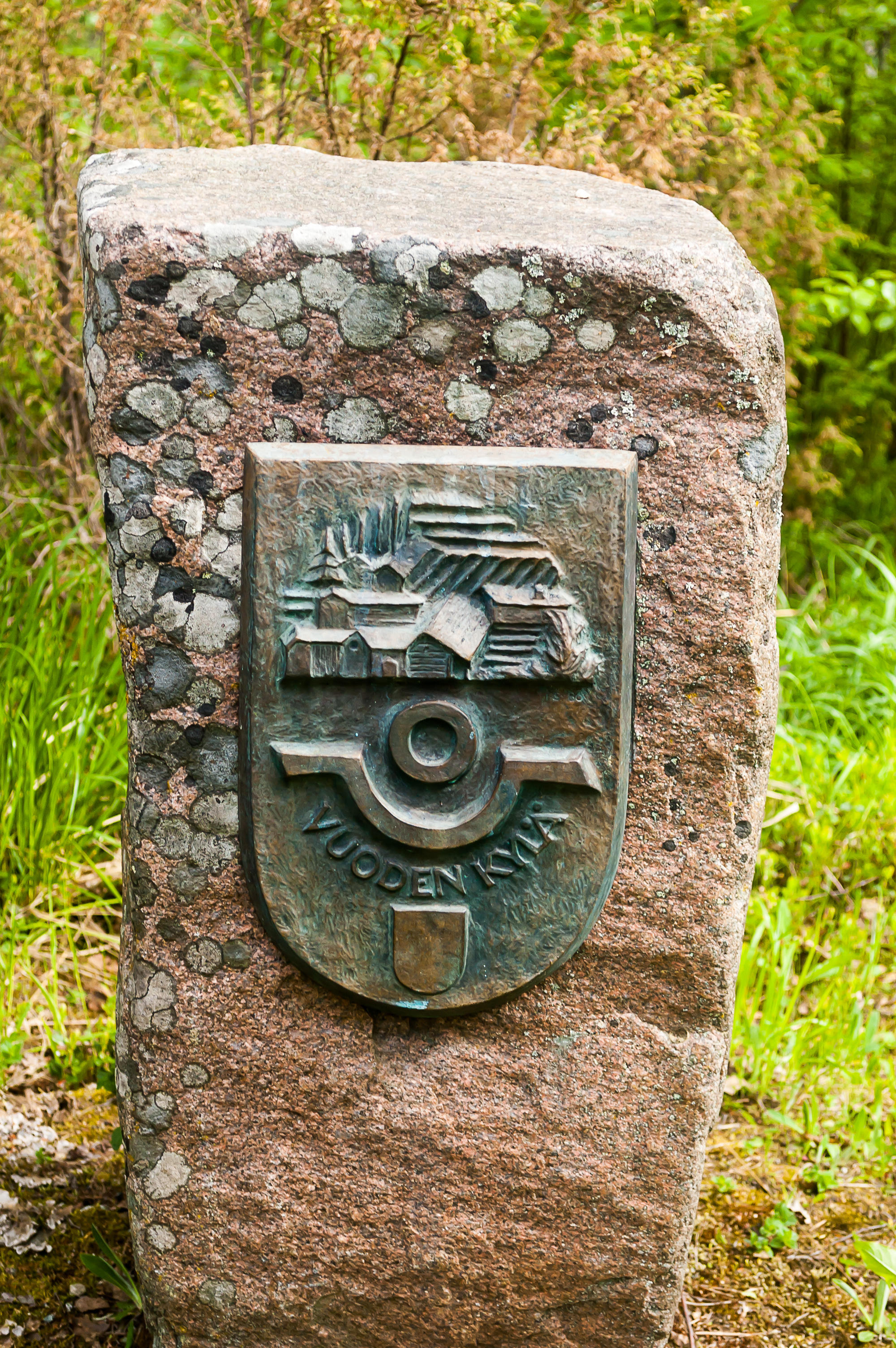 12. Здесь же рядом — маленький столбик vuoden kylä — «деревня года». Деревня Муталахти была объявлена деревней года Финляндии в 1990 году. Не знаю, по каким критериям деревню отбирают и что ей дает это звание. Из отвратительного гуглоперевода (Гугл очень плохо переводит с финского) прошлогодней статьи местной газеты Погостан-Саномат можно понять, что сейчас жизнь в деревне потихоньку угасает. Грусть-пичаль [2]. Наверное, урбанизацию в 21 веке в одной из самых развитых стран мира невозможно остановить даже субсидиями для села. Погостан-Саномат — тоже кстати название русского происхождения — pogostan от русского «погост». В муниципалитете Иломантси исторически сложилось, что городок-центр муниципалитета, собственно Иломантси как таковой, зовут погостом.