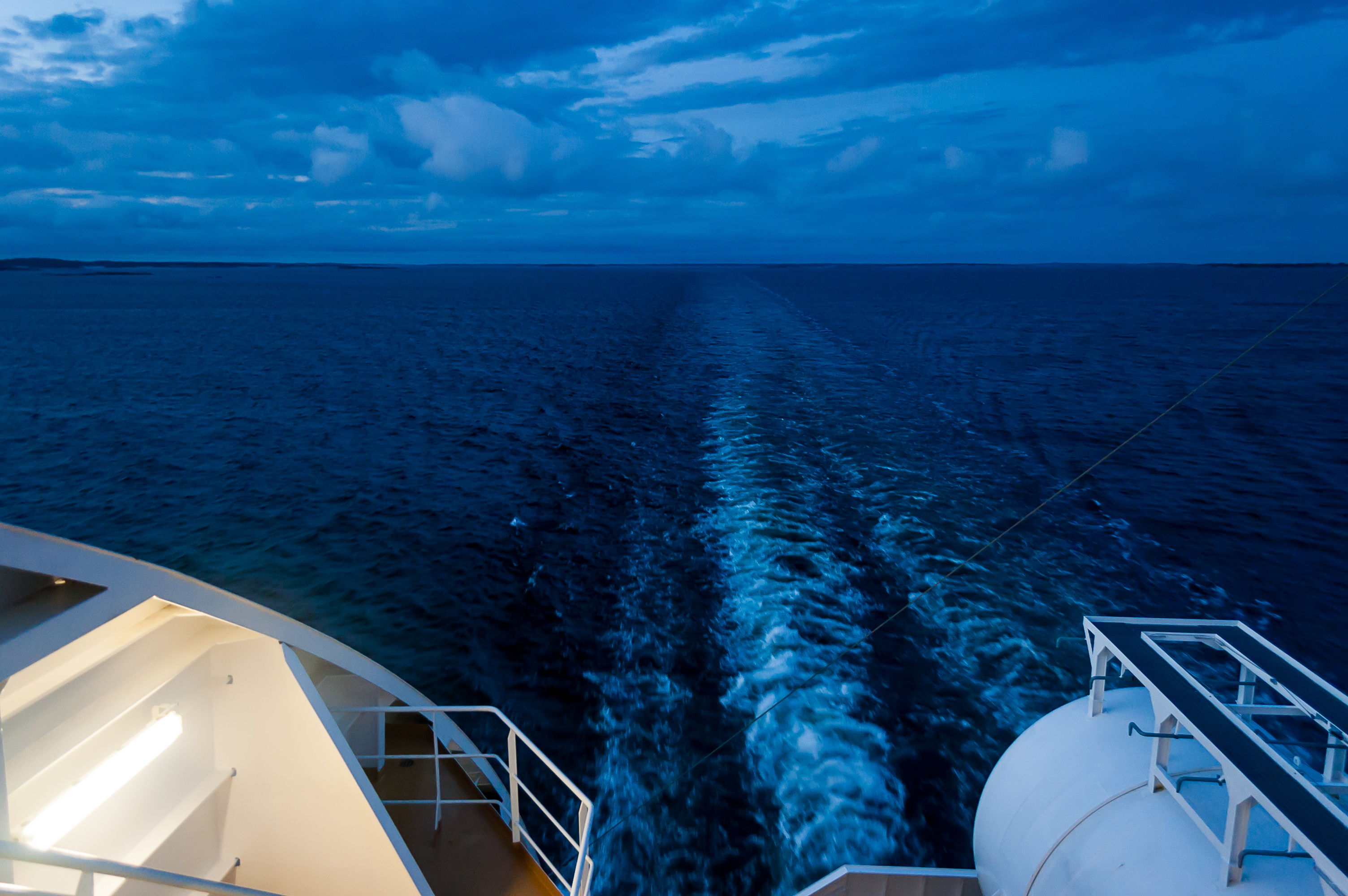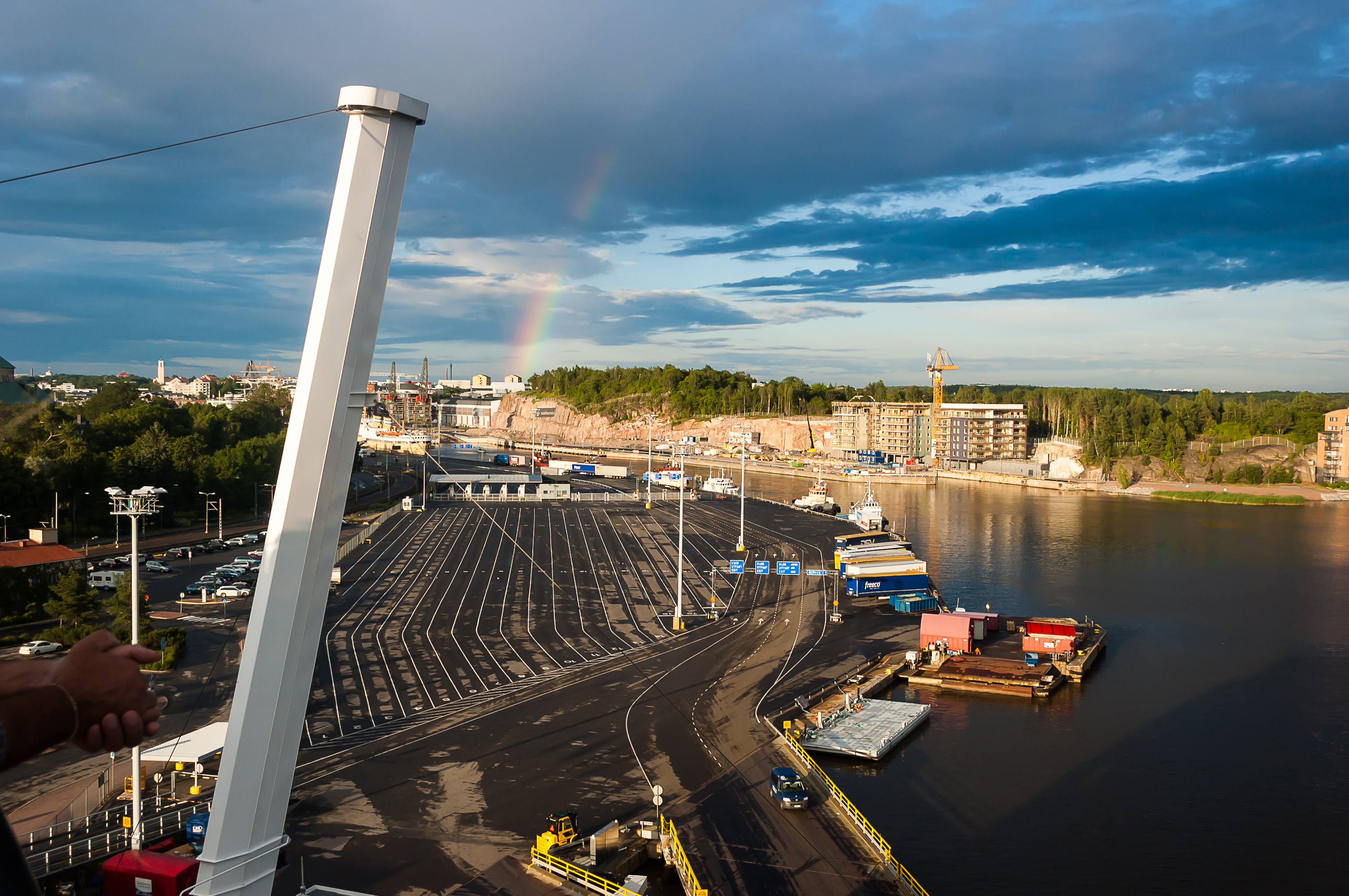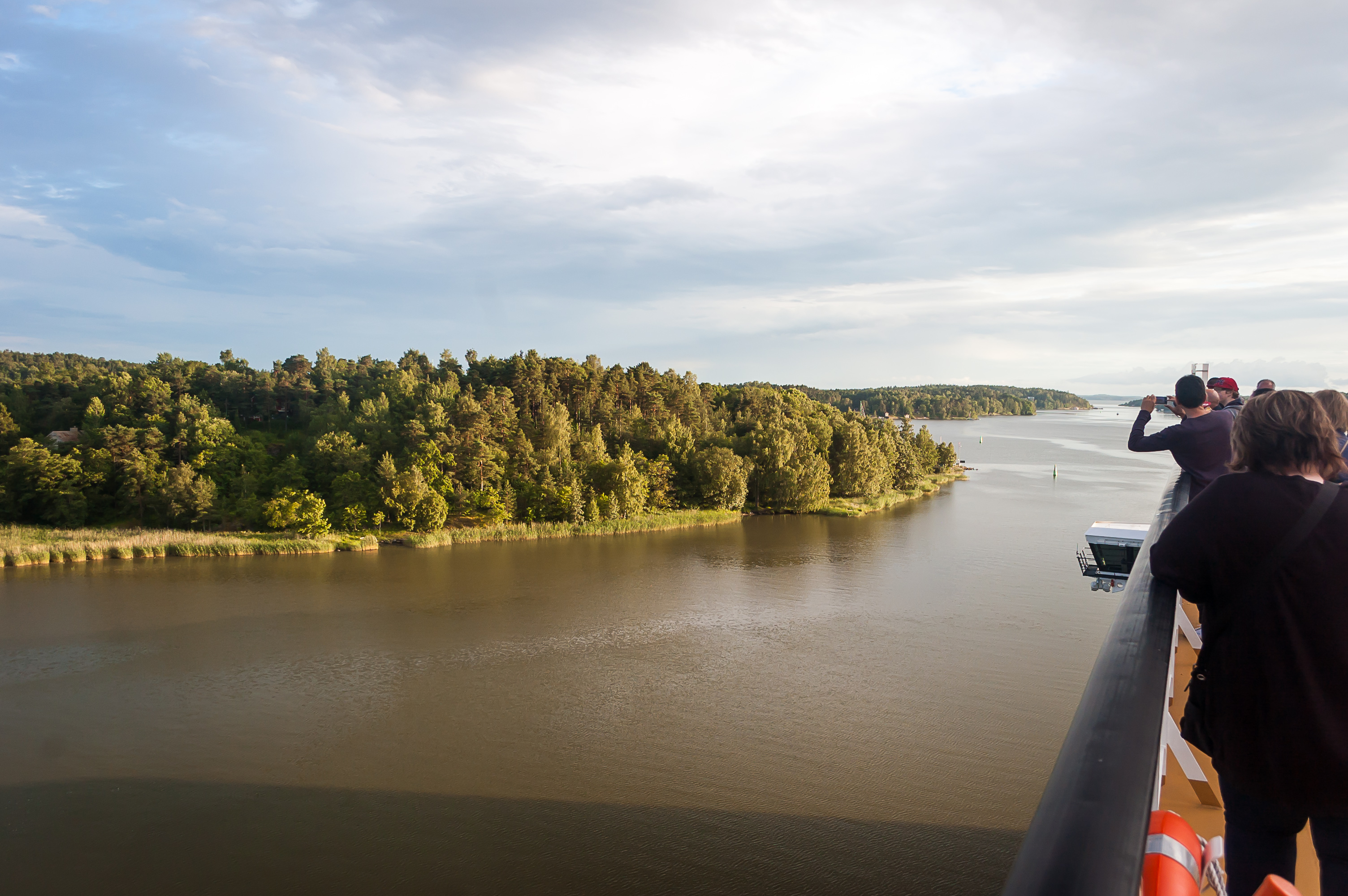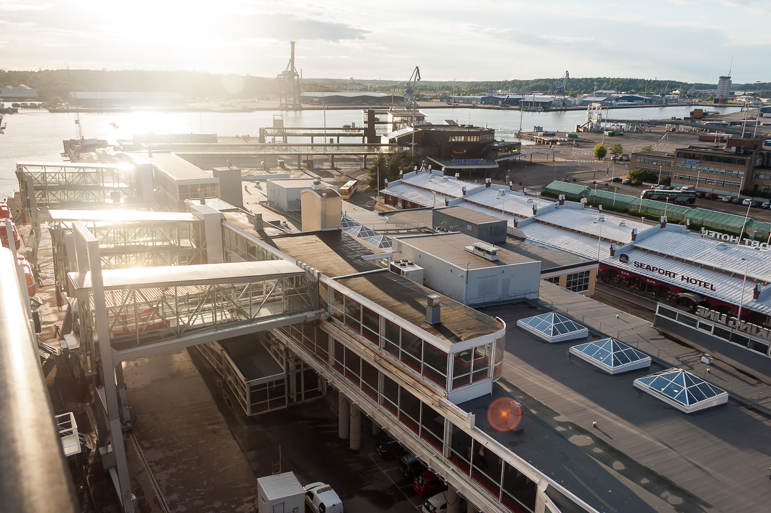 8. Паром отправляется в 20:55 и прибывает в 7:30 (шведское время 6:30, они уже в другом часовом поясе). Не так уж и много. Так что план таков: посмотреть с верхней палубы отправление, ужин со шведским столом, поспать, завтрак и прибытие. И, оставив вещи в каюте, мы поднимаемся на верхнюю («солнечную») палубу. Здесь можно погулять на свежем воздухе и насладиться видами во все стороны.