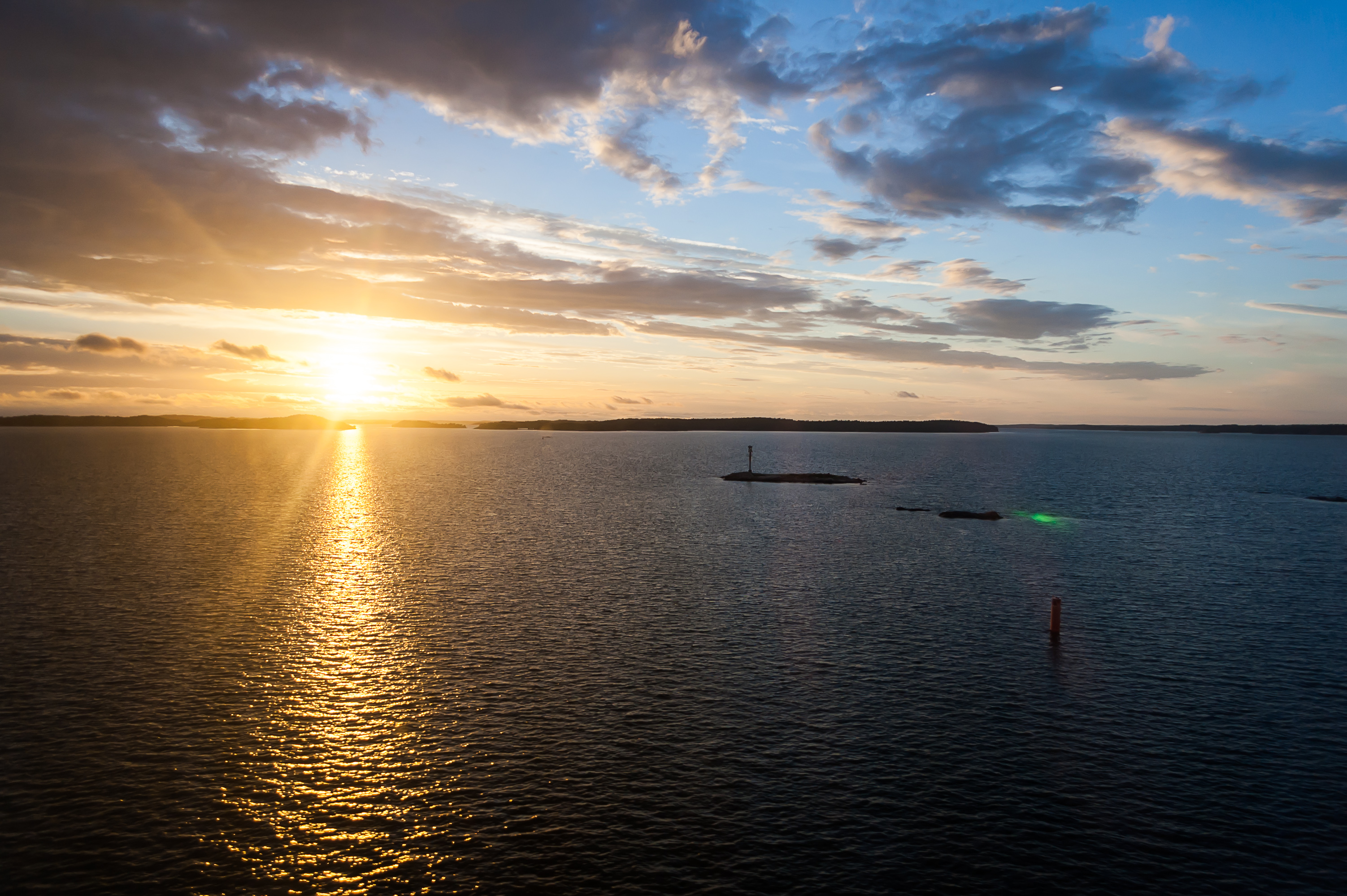 19. Вскоре острова расступаются дальше, и можно наслаждаться вечерними видами Архипелагового моря, с мелкими шхерами и маяками.