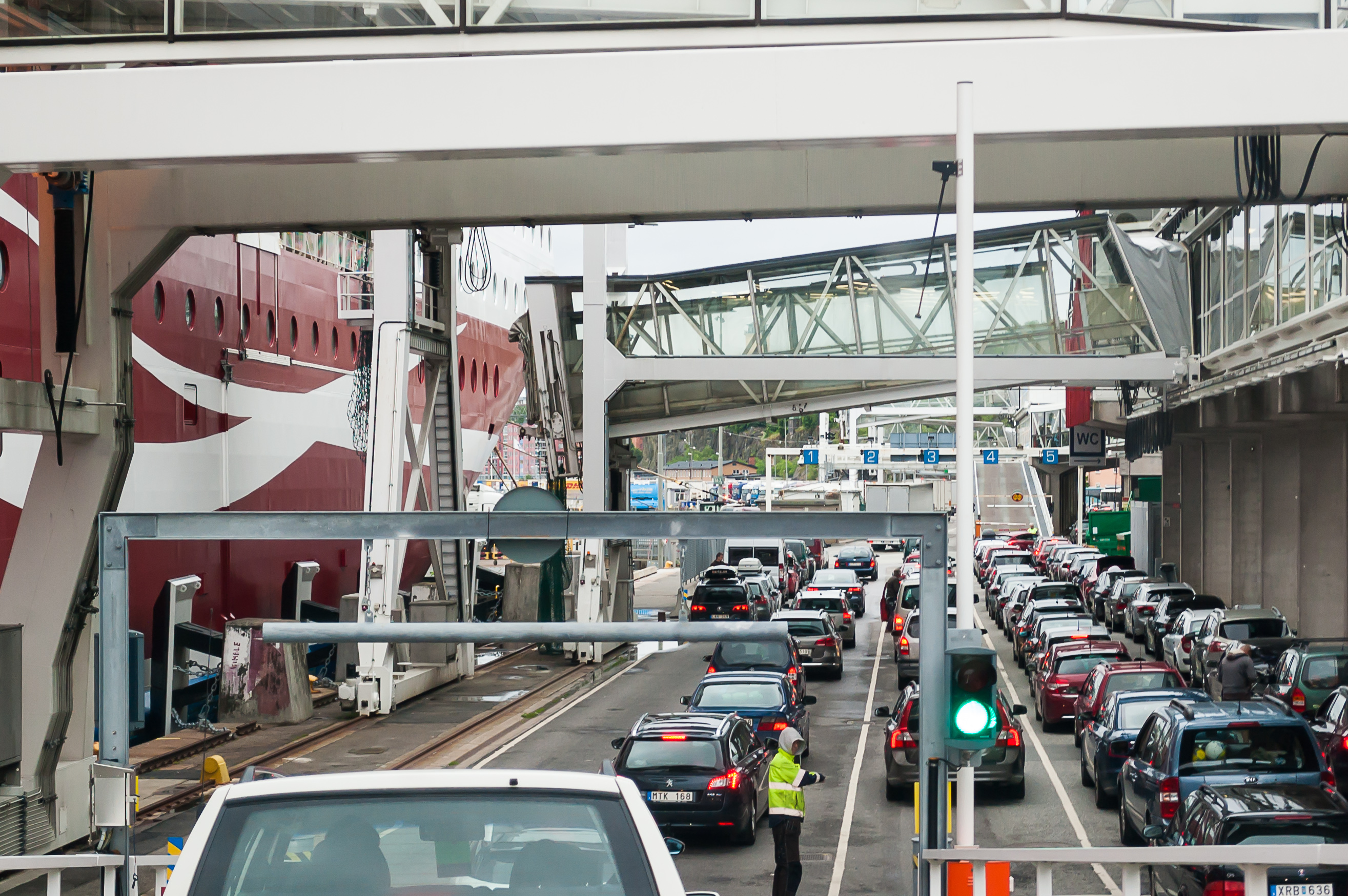 29. Съезжаем там же, где и заезжали. Паромы Викинг-Лайн швартуются у терминала Стадсгорден (Stadsgården), довольно близко к центру города. Терминал весьма тесный, и остановиться до того, как вы из него выедете прямо на довольно оживленную улицу, негде. Да и на улице этой тоже негде. Так что если надо запрограммировать навигатор или еще что, лучше это сделать заранее, до съезда с парома.