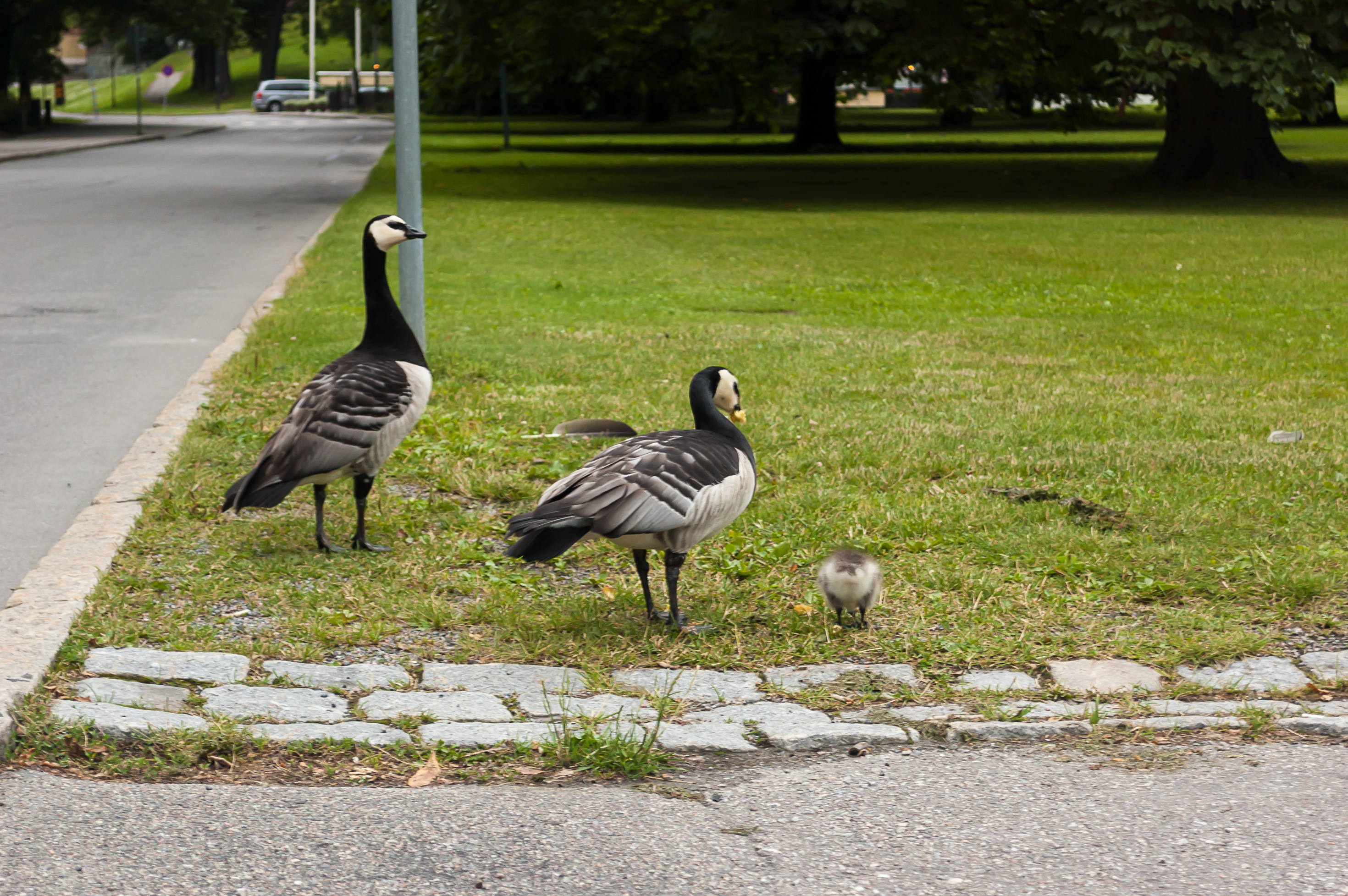 13. Присмотритесь к низу картинки — целый выводок казарок разгуливает просто так! Мы видели этих птиц и в Стокгольме, и в Турку, и птенцов с ними. Они ведут себя довольно угрожающе, если подойти ближе.