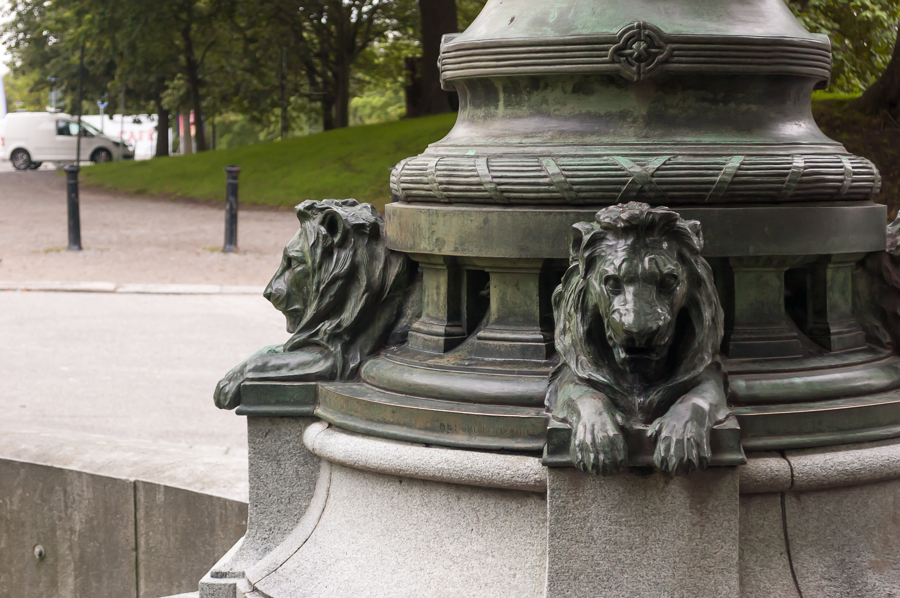 37. Львы у музея северных стран. Напоминают о моем любимом выпуске комикса Scandinavia and the World. Хотя на самом деле львы присутствуют лишь на Большом Гербе Швеции. На обычном, более известном, только три золотые короны.