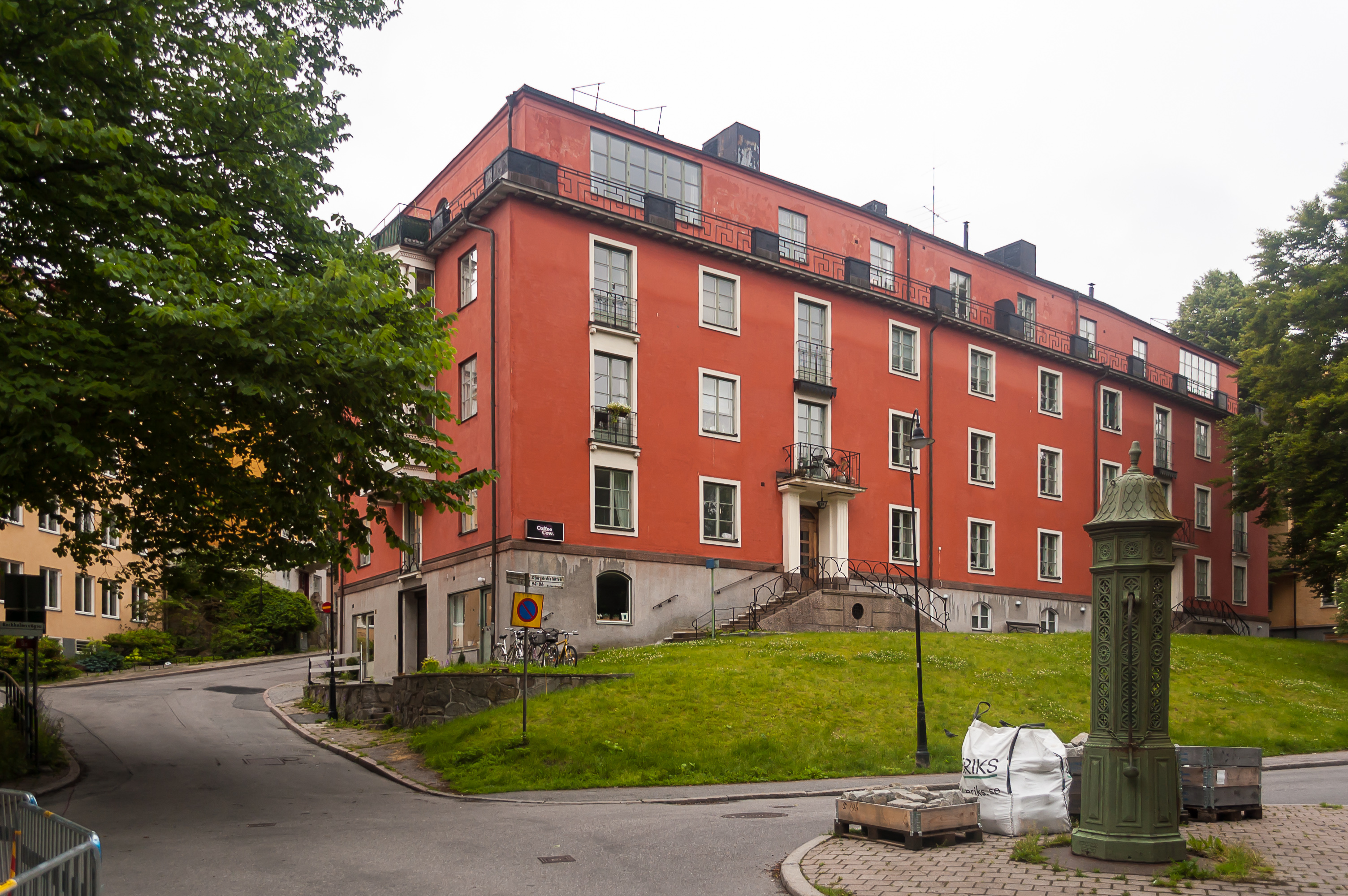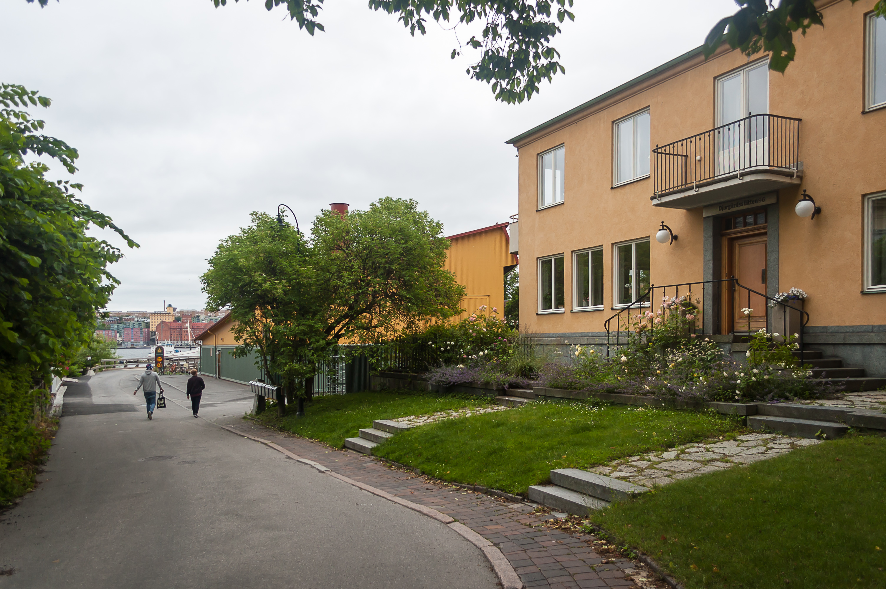 2. Съезжаем на улицу Стадсгордследен (Stadsgårdsleden), зажатую между набережной, где построен терминал, и отвесной каменной стеной. Наверху этой стены располагается большая часть района Сёдермальм.