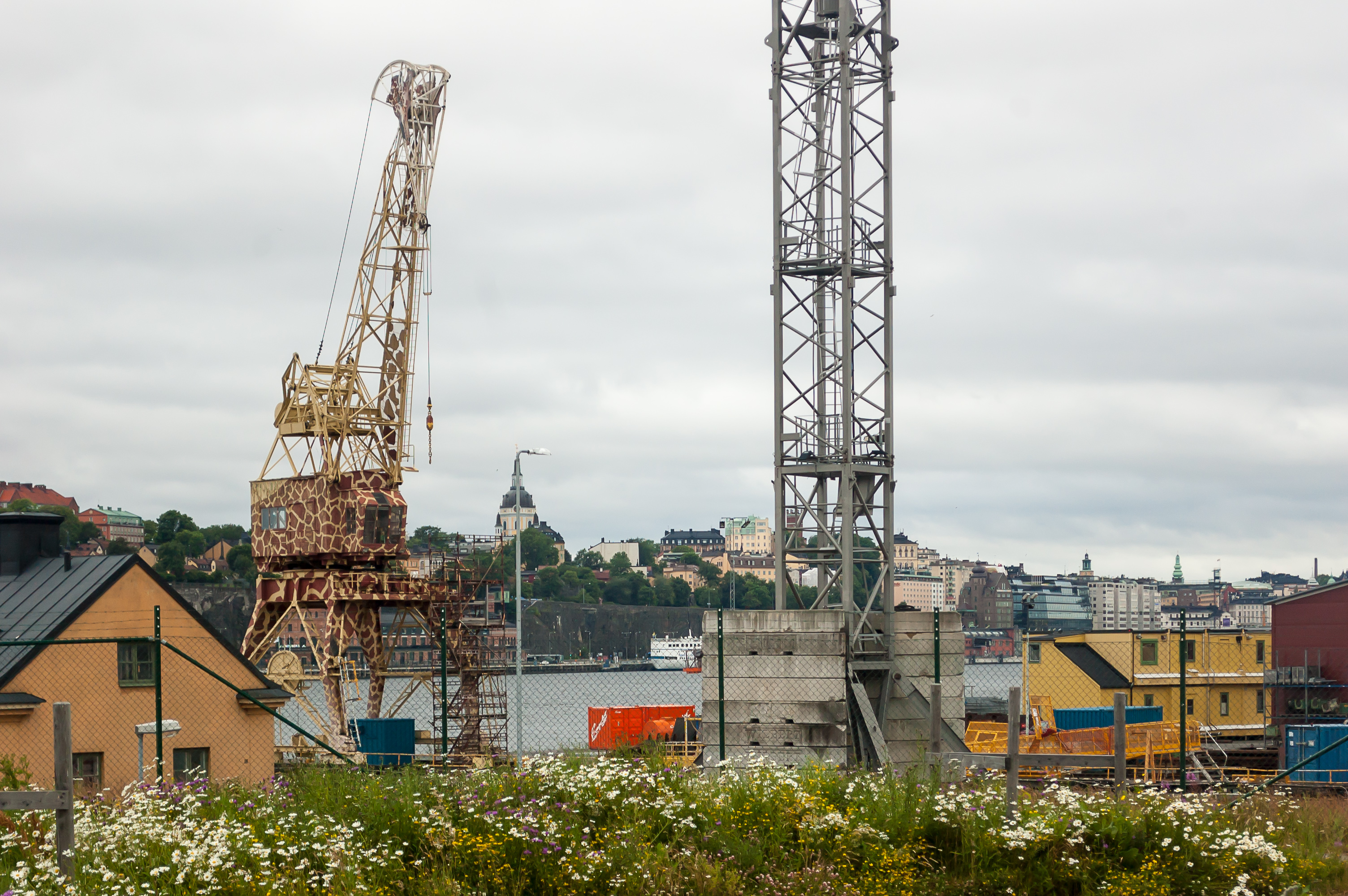 27. Один из кранов у дока на Бекхольмене раскрашен под жирафа.