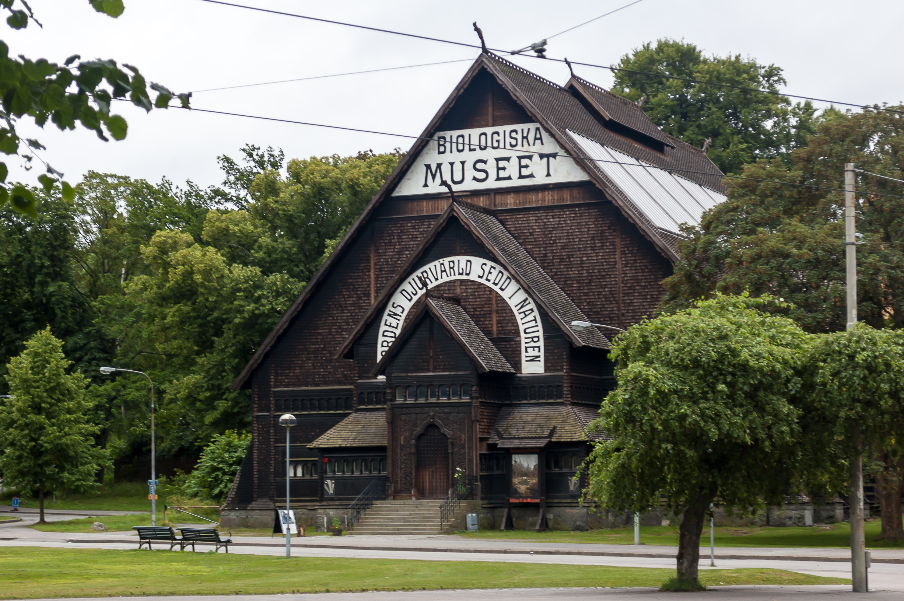 14. Биологический музей (Biologiska museet) размещен в здании, напоминающем старую деревянную каркасную церковь; такие церкви местами сохранились почти исключительно в Норвегии.
