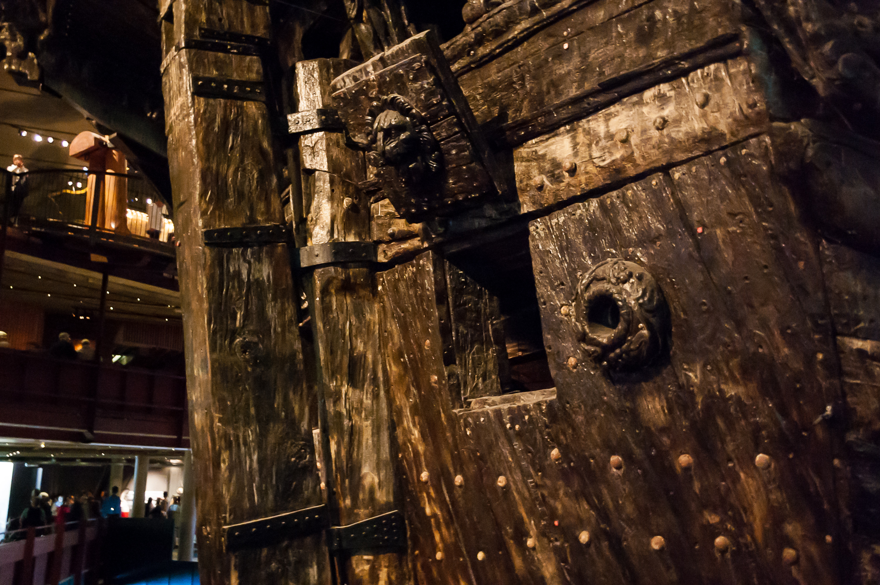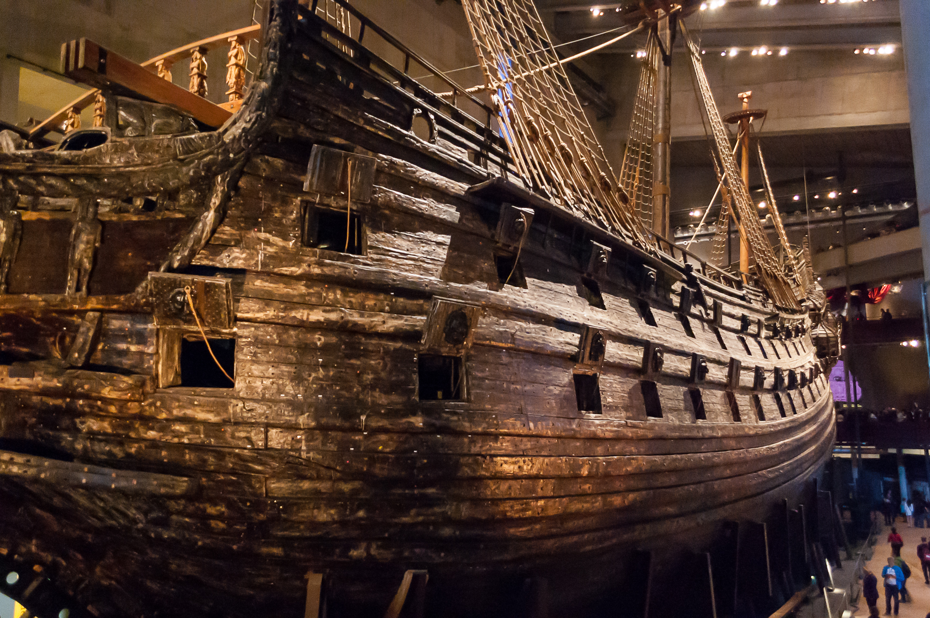 1. Войдя в музей, вы сразу же увидите такое зрелище. Корпус «Васы» от времени стал темно-коричневым. Мачты, и, вероятно, часть надстроек были восстановлены после поднятия «Васы», также пришлось починить его нос, но все остальное на корабле аутентично на сто процентов.