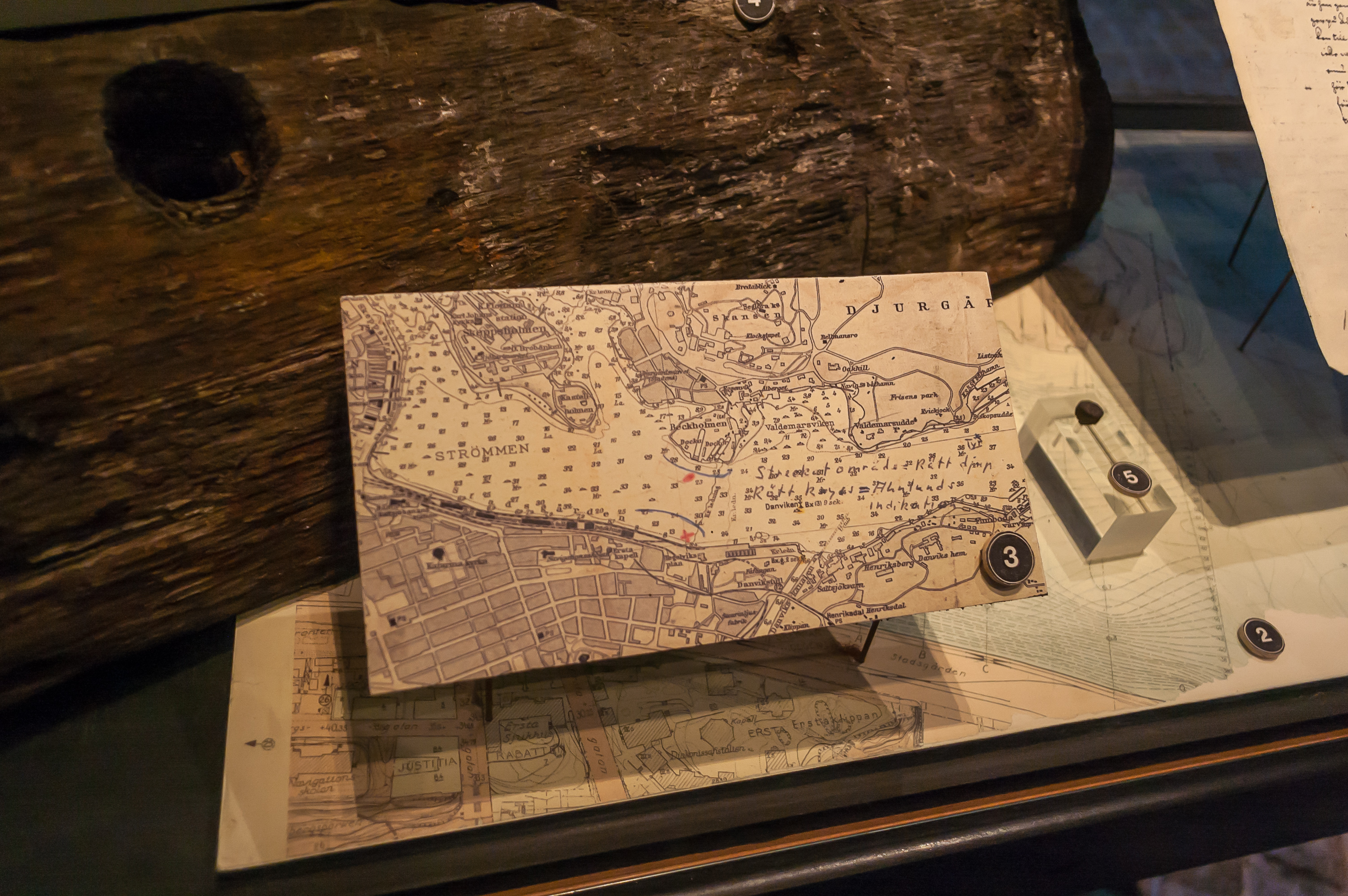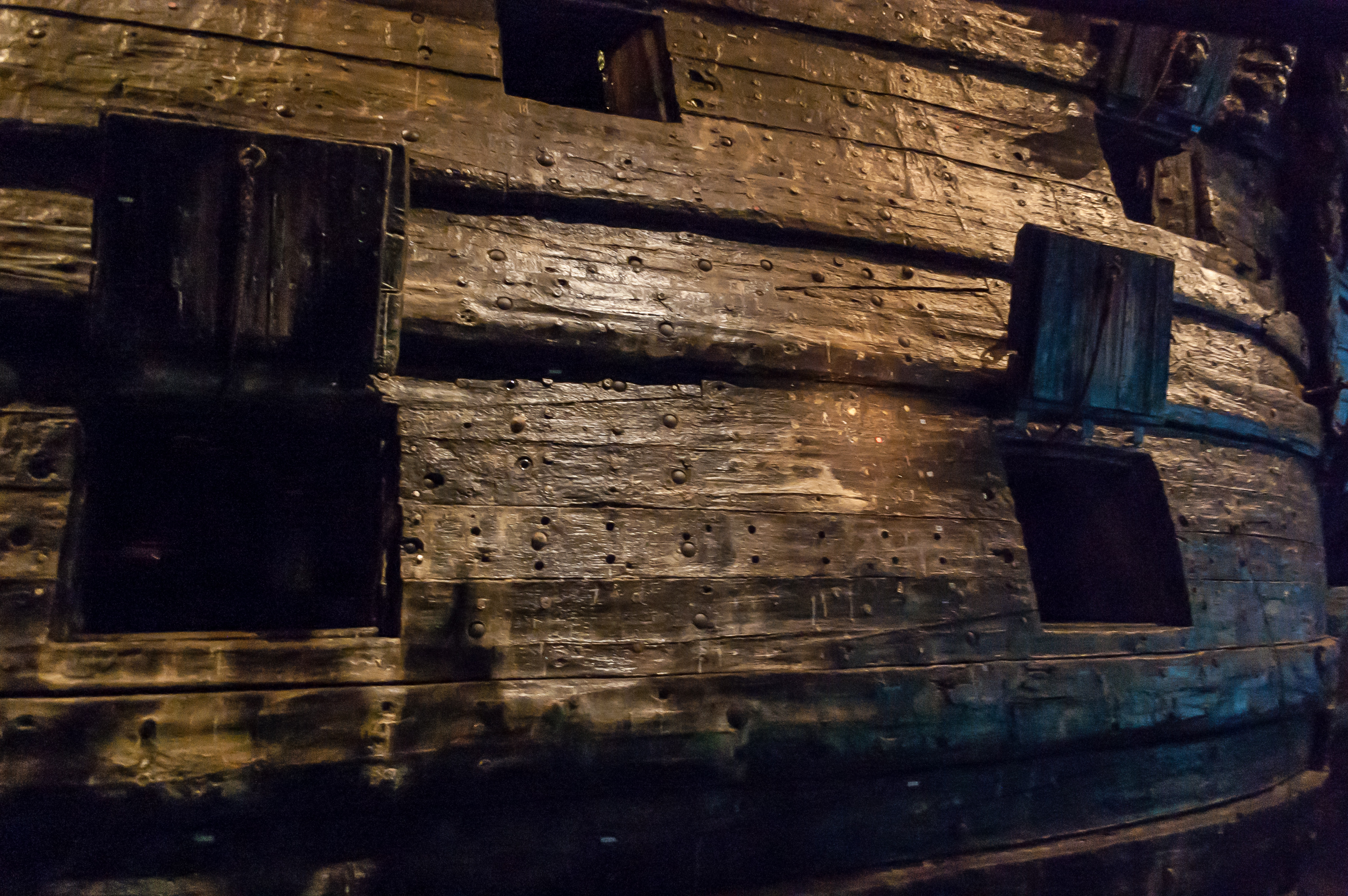 6. Конечно, корабль не буквально единственный экспонат музея. Выставки вокруг него повествуют о его истории, строительстве, экипаже, гибели, подъеме и консервации. Например, на этих деревянных балках демонстрируются повреждения, наносимые дереву корабельными червями. Нижняя балка (темная) — с «Васы», идеально сохранила форму. Верхняя (светлая) — с другого корабля, затонувшего примерно в те же годы, но сильно разрушена, и в ней есть несколько дырок. Этот корабль затонул в соленом Каттегате, где корабельным червям раздолье.