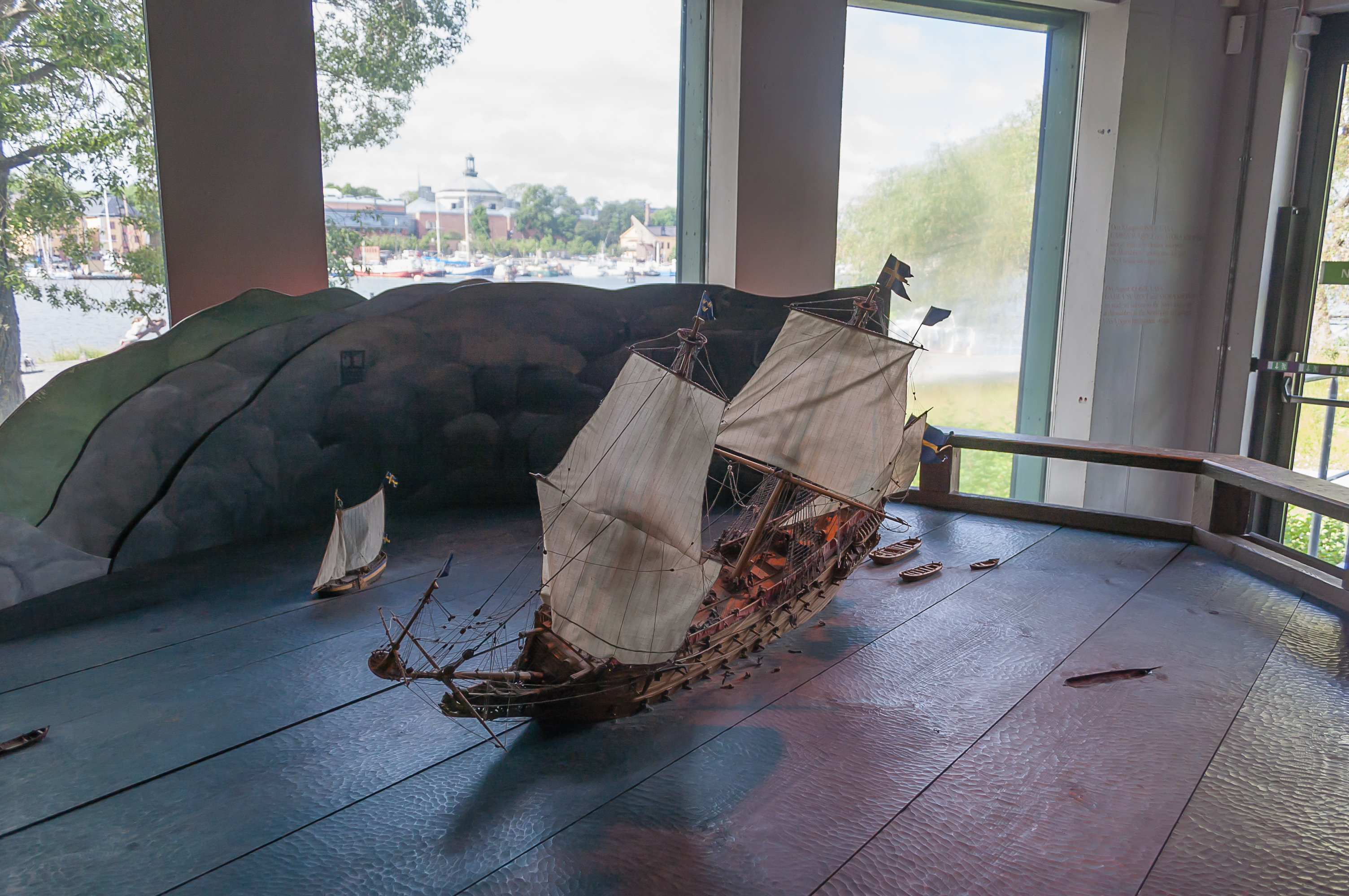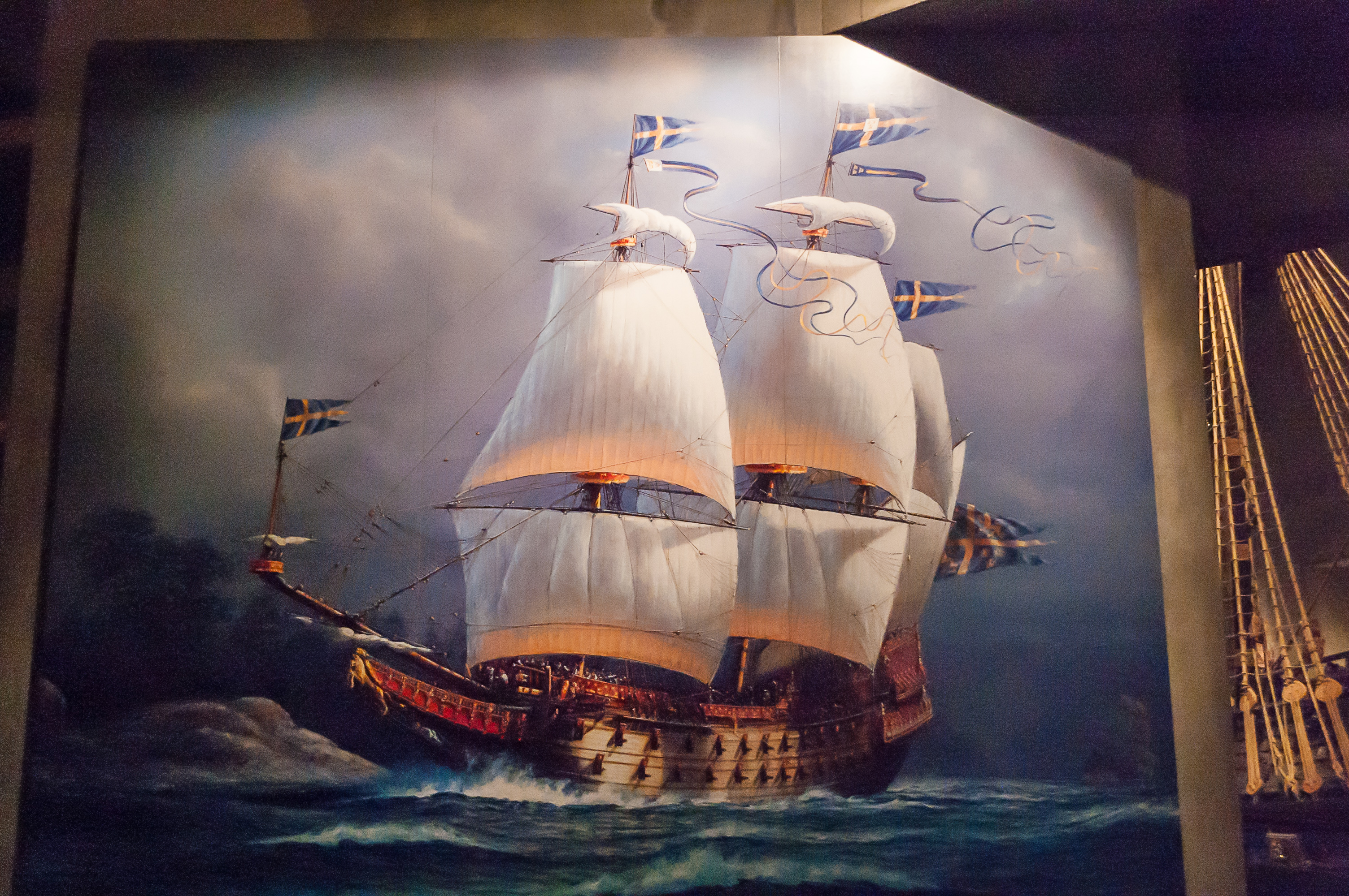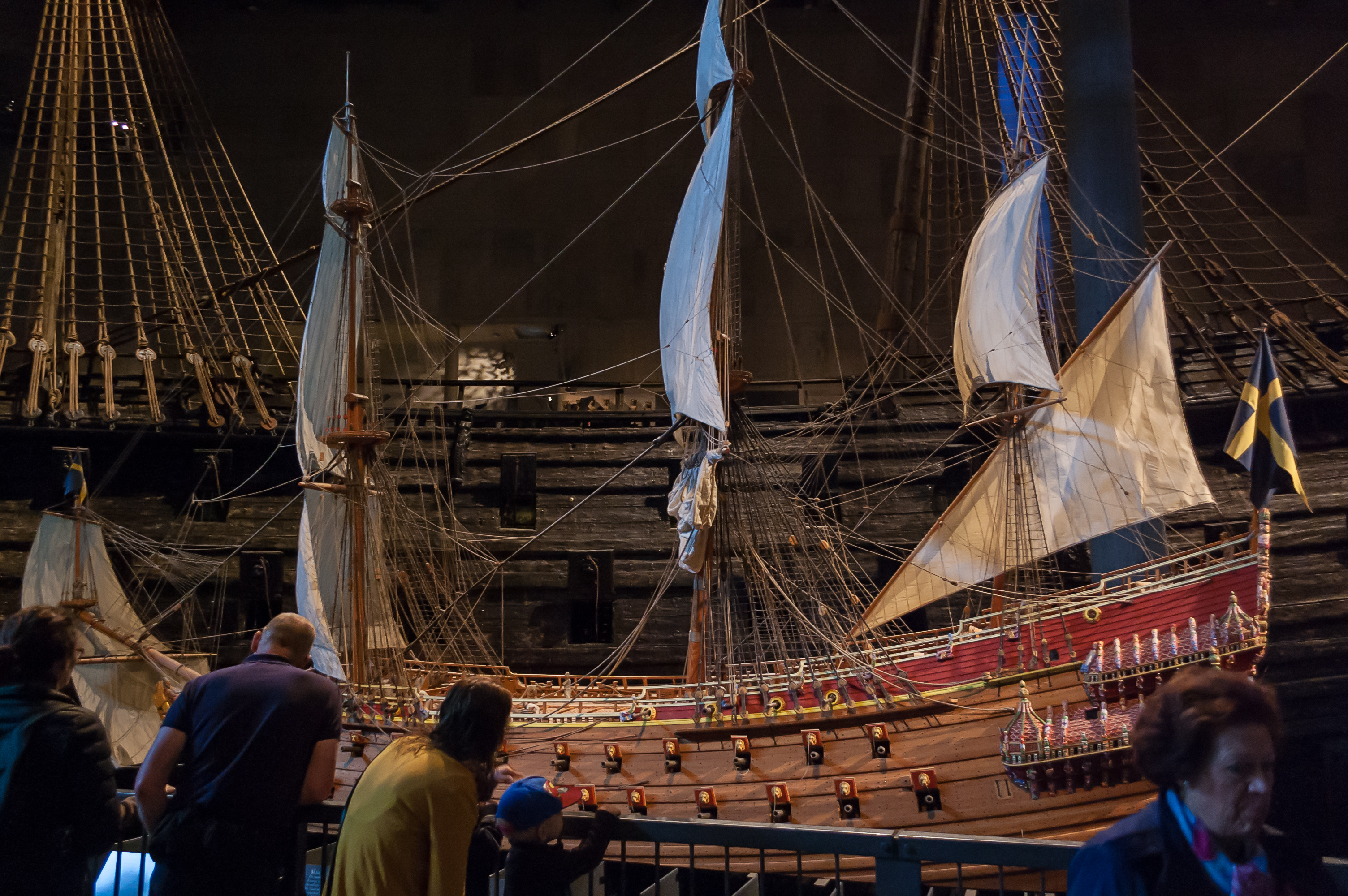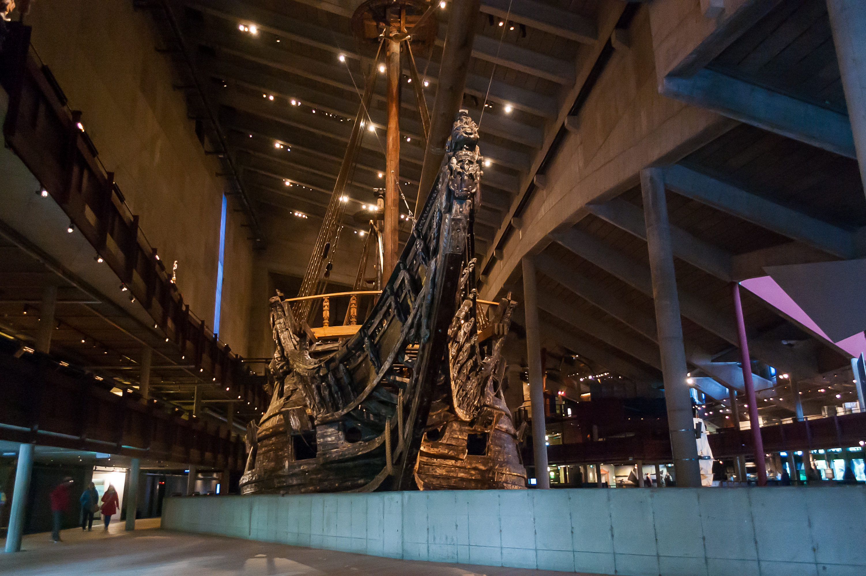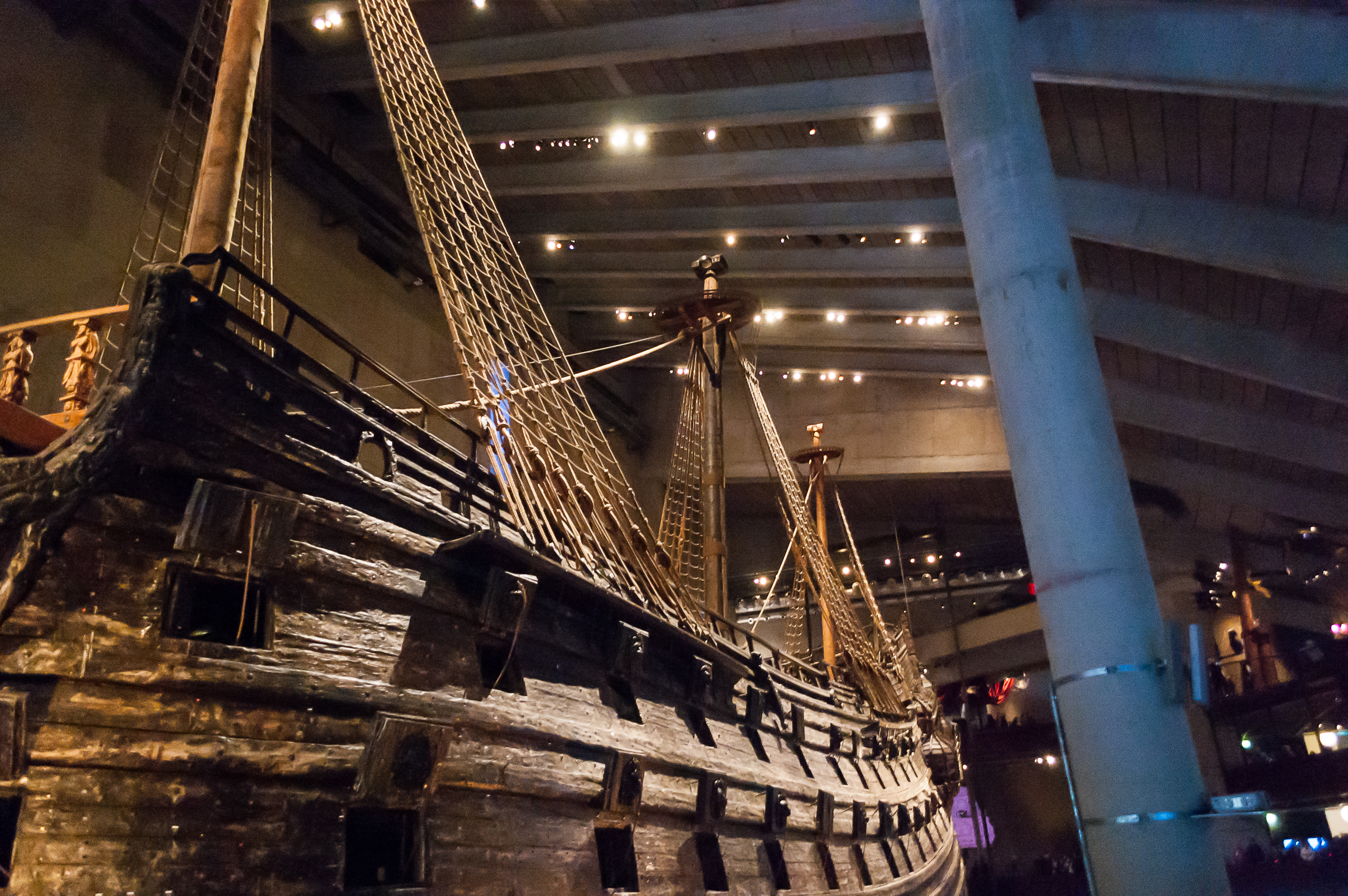 Ну и, в общем, в 1961 году останки корабля были наконец-то подняты с морского дна с помощью нескольких понтонов, и помещены под временный навес, «Васаварвет» (Wasavarvet, верфь «Васы»). Современное здание музея было построено в 1988 году. Если верить Википедии, на данный момент «Васа» находится на шестом месте по возрасту среди всех сохранившихся кораблей мира, и он намного больше любого из первых пяти. Так что попили мы чай в ресторане музея, и узрели, собственно, «Васу».
