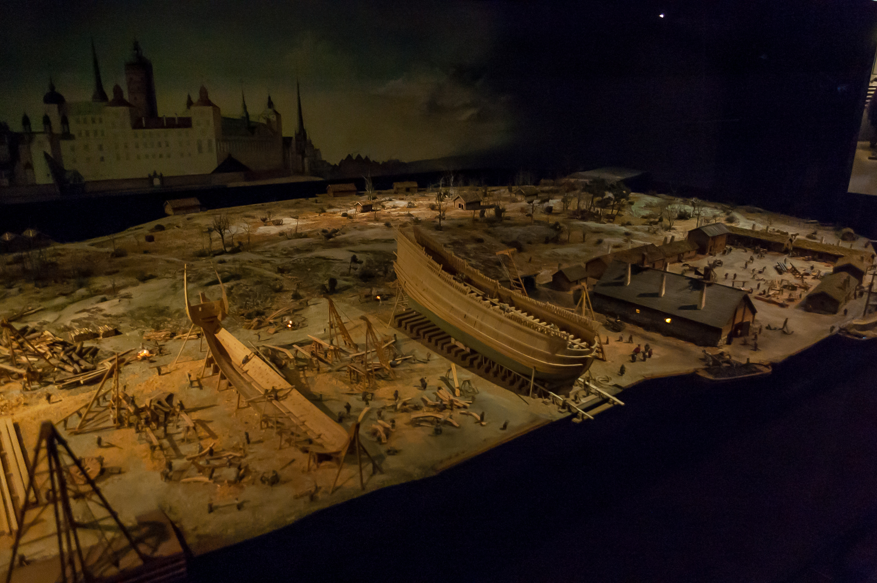 25. Так в 17 веке выглядела Блазиехольменская верфь. Корпус «Васы» — посередине.