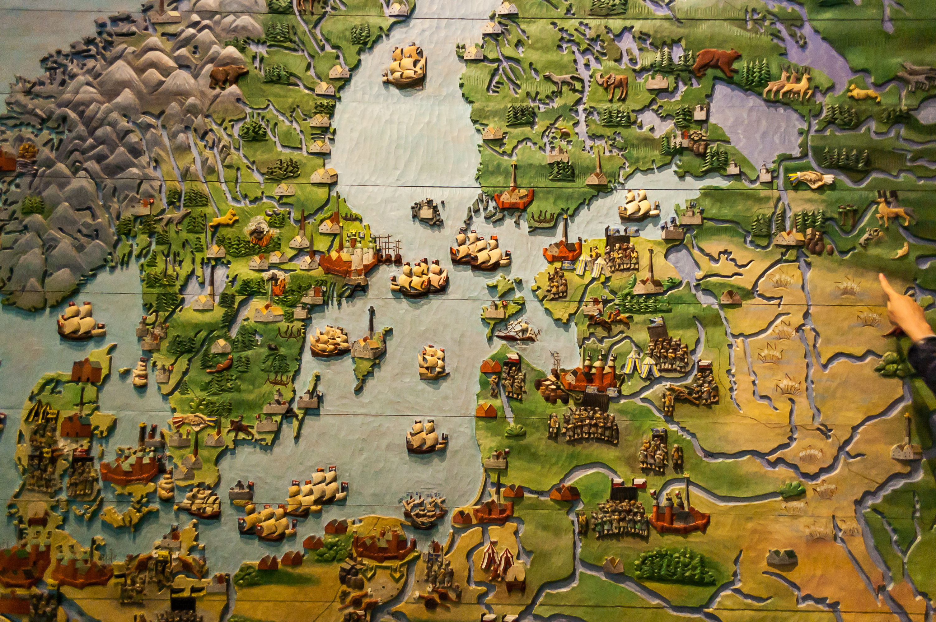 13. Стилизованная карта Балтийского моря, каким оно было в то время. Мне больше всего нравится, как цивилизация заканчивается в аккурат где начинается Россия на востоке, дальше только дикие звери какие-то.