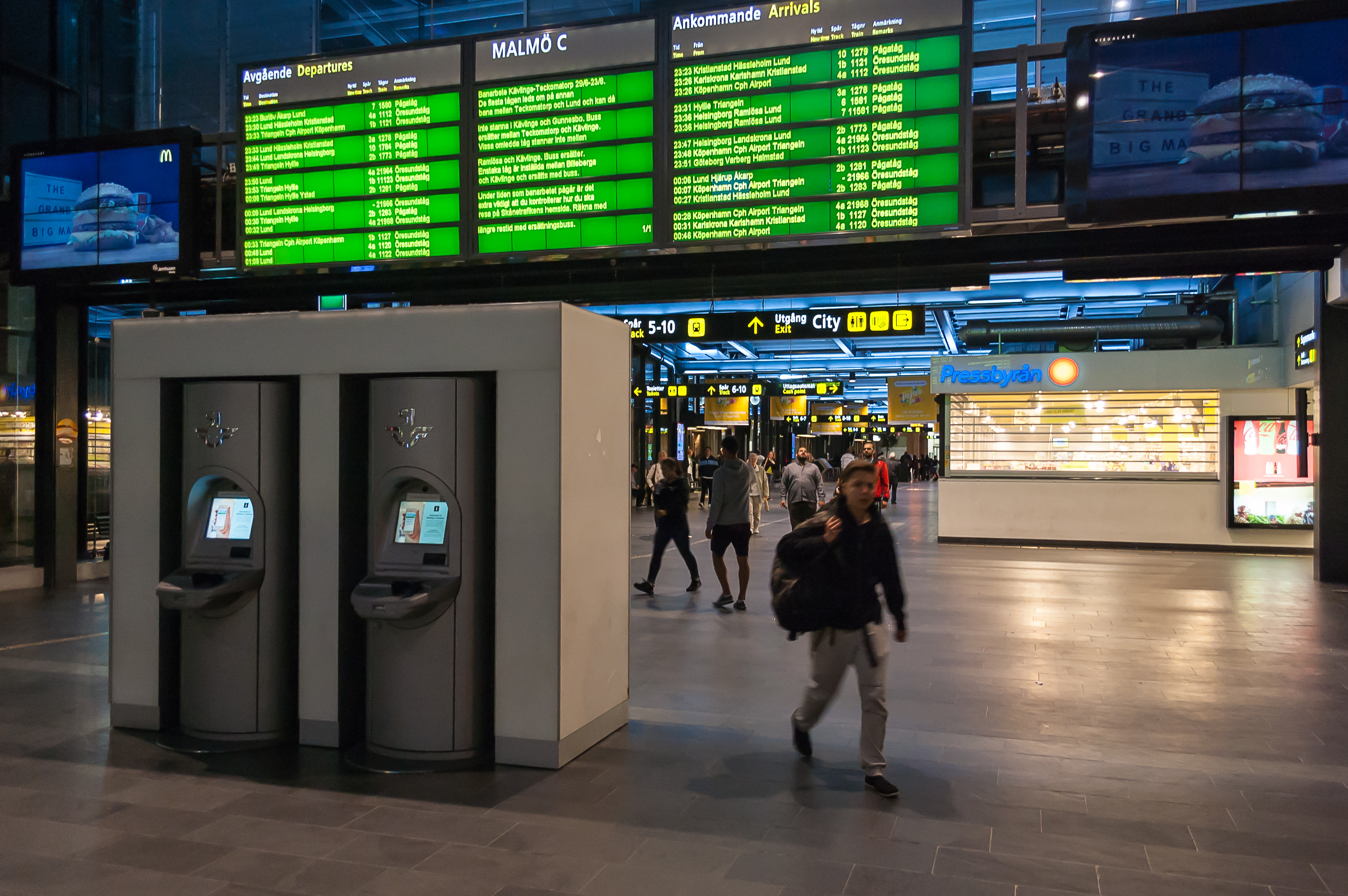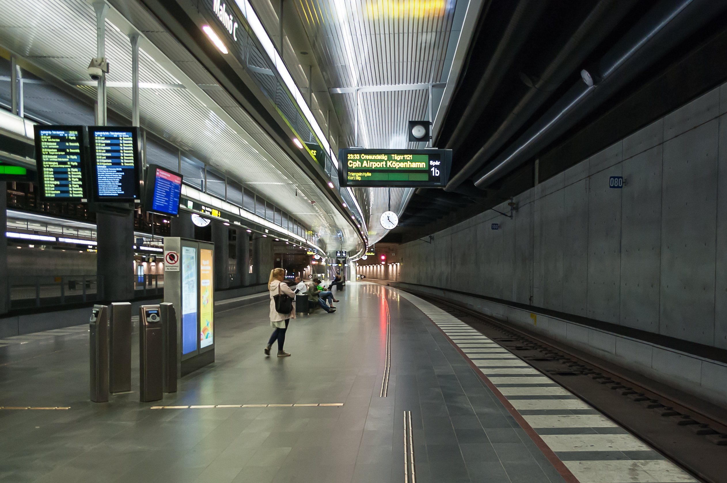 42. Я заранее нашел относительно дешевую парковку невдалеке от железнодорожного вокзала Мальмё. Мы оставили на ней машину, оплатили двое суток парковки, и пошли на вокзал со своими вещами. Большинство платформ вокзала — подземные, включая те, с которых поезда идут в Копенгаген.