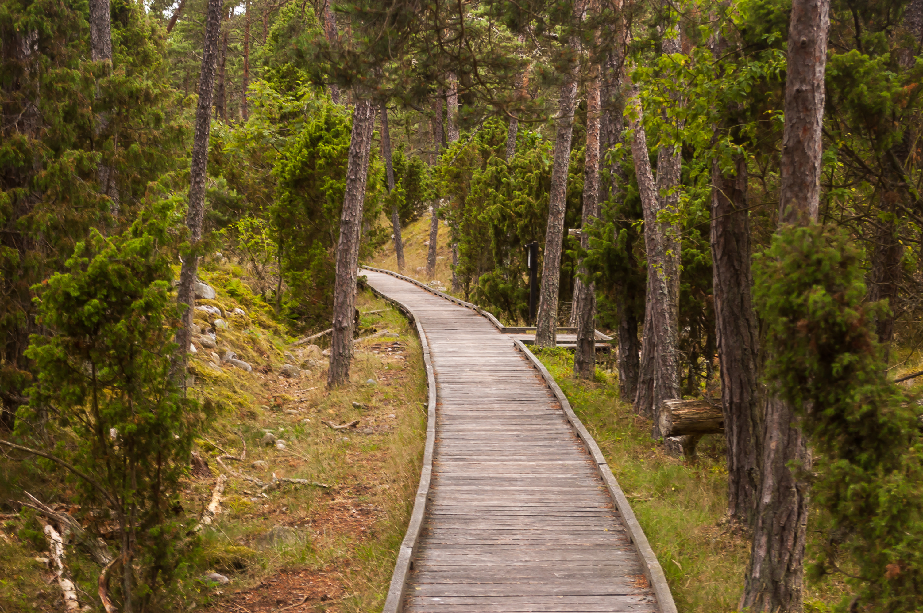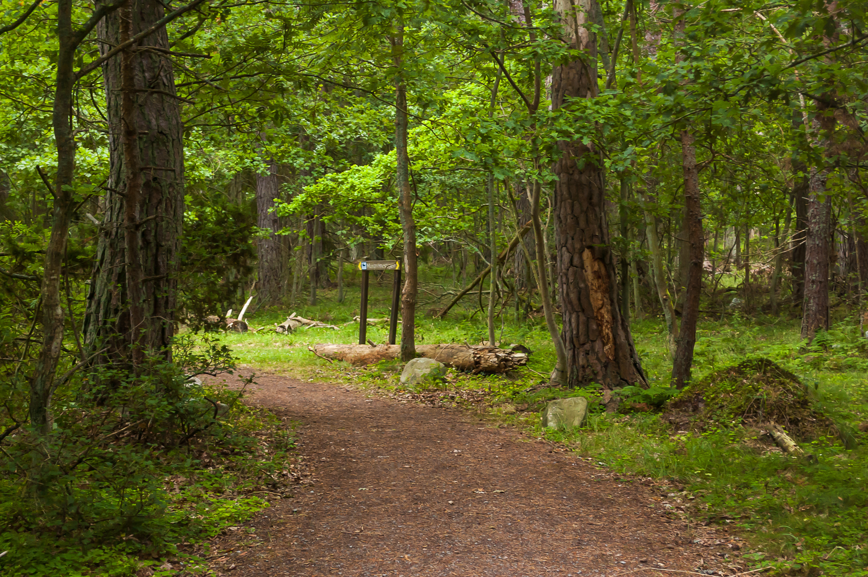 24. Отправляемся в лес. И опять же, времени у нас было мало (надо было к 23 часам доехать до Мальмё, чтобы успеть на поезд в Копенгаген), и по большому счету я хотел просто прогуляться через лес до места кораблекрушения, о котором до этого читал, да обратно. По-видимому, изначально мы выбрали не ту дорожку. Ну зато дорожка приятная была, оборудованная, чтобы на инвалидной коляске можно было проехать.