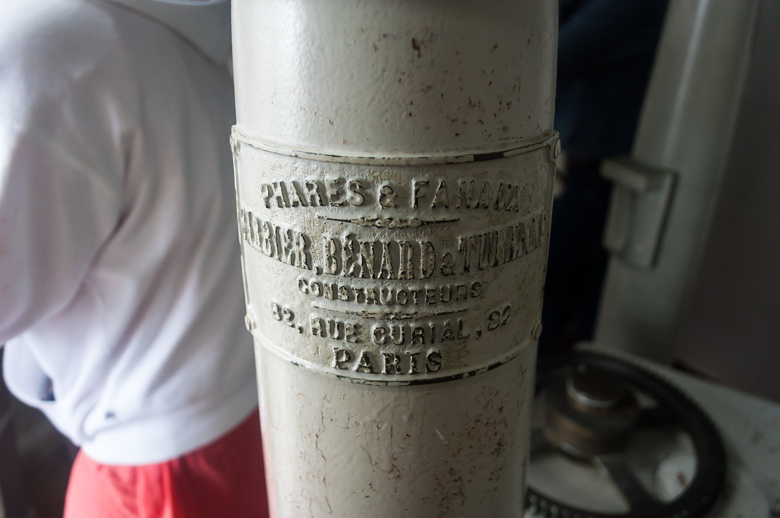 11. А вот это часть старого механизма маяка, видного на винтовой лестнице наверх. Барбье, Бенар и Туренн (Barbier, Bénard, et Turenne) — так называлась небольшая парижская фабрика, специализировавшаяся на оборудовании для маяков. Она существовала с 1862 по 1982 год. (Так что это уже не оригинальный механизм, очевидно — изначально-то сам маяк еще в 1845 построен.)