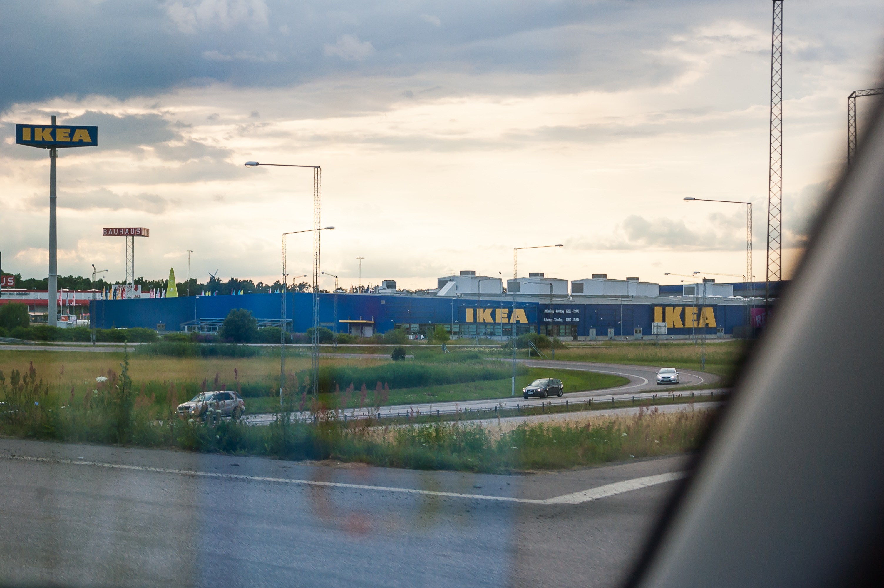 40. В Швеции, естественно, очень много магазинов «Икея». Вот у развязки на Кальмар на трассе E22, например. Выглядят издали так же, как и российские.