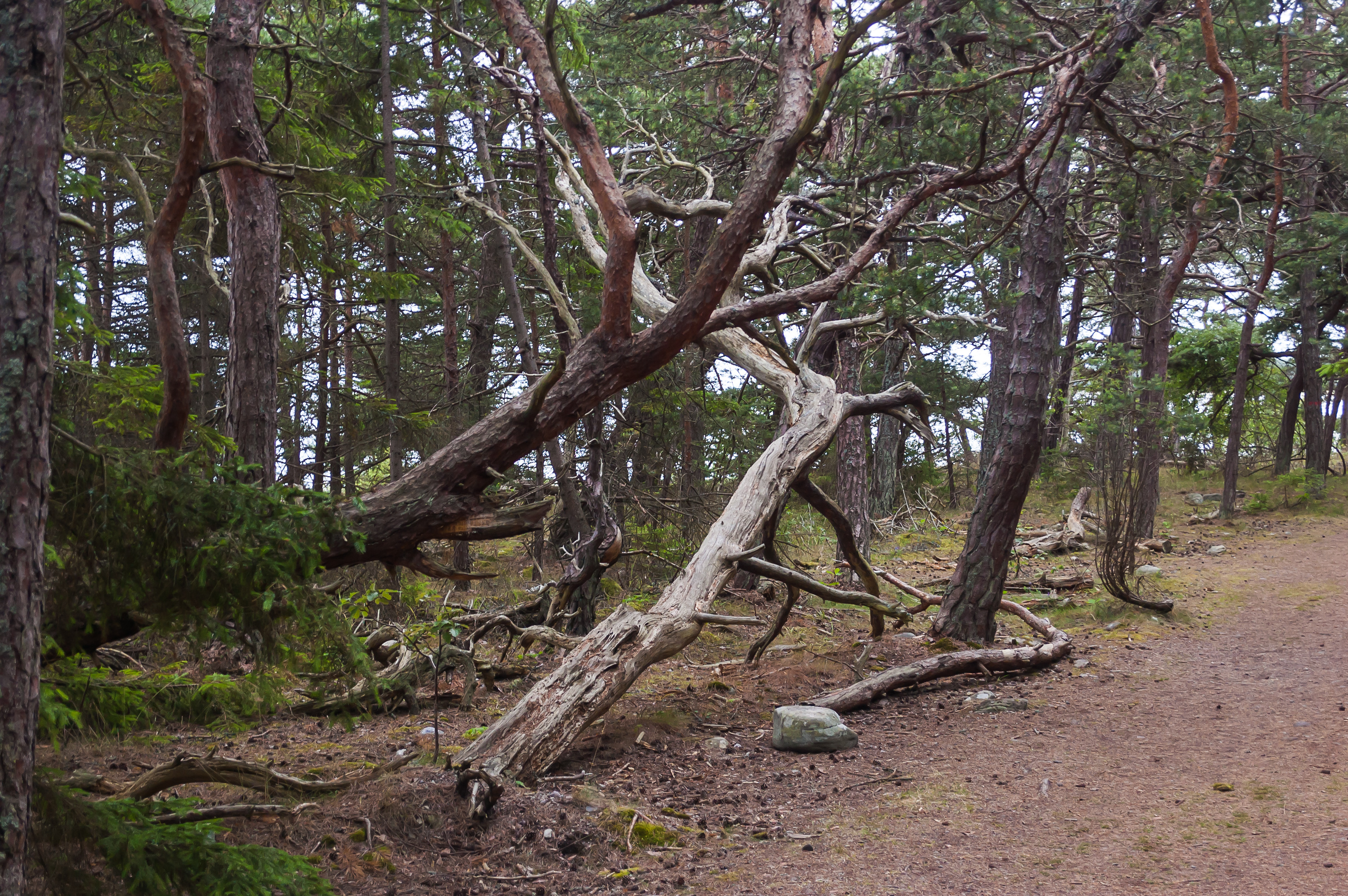 22. Тролльскуген буквально означает «лес троллей». Большая его часть — довольно густой и полный зелени лес, но у моря деревья делаются скрюченными и голыми.