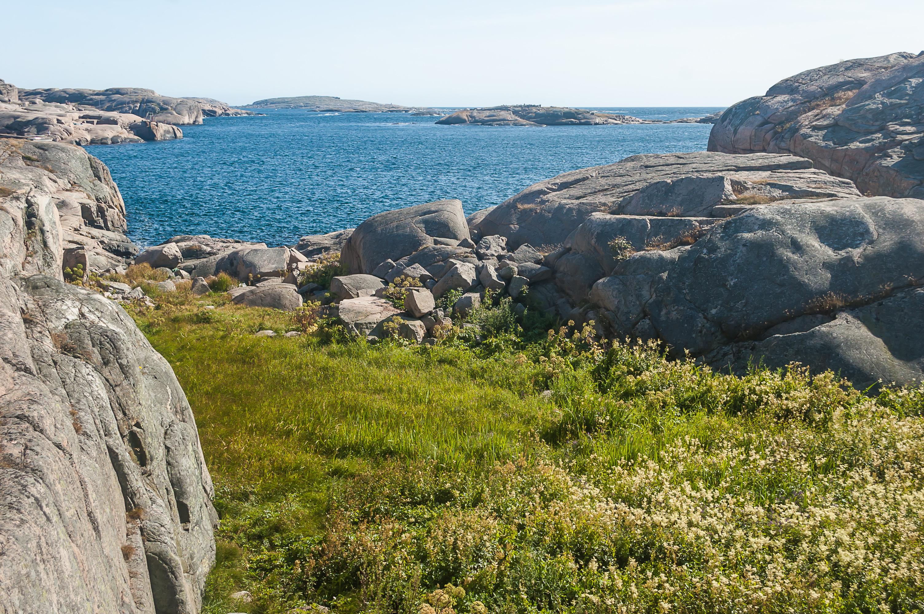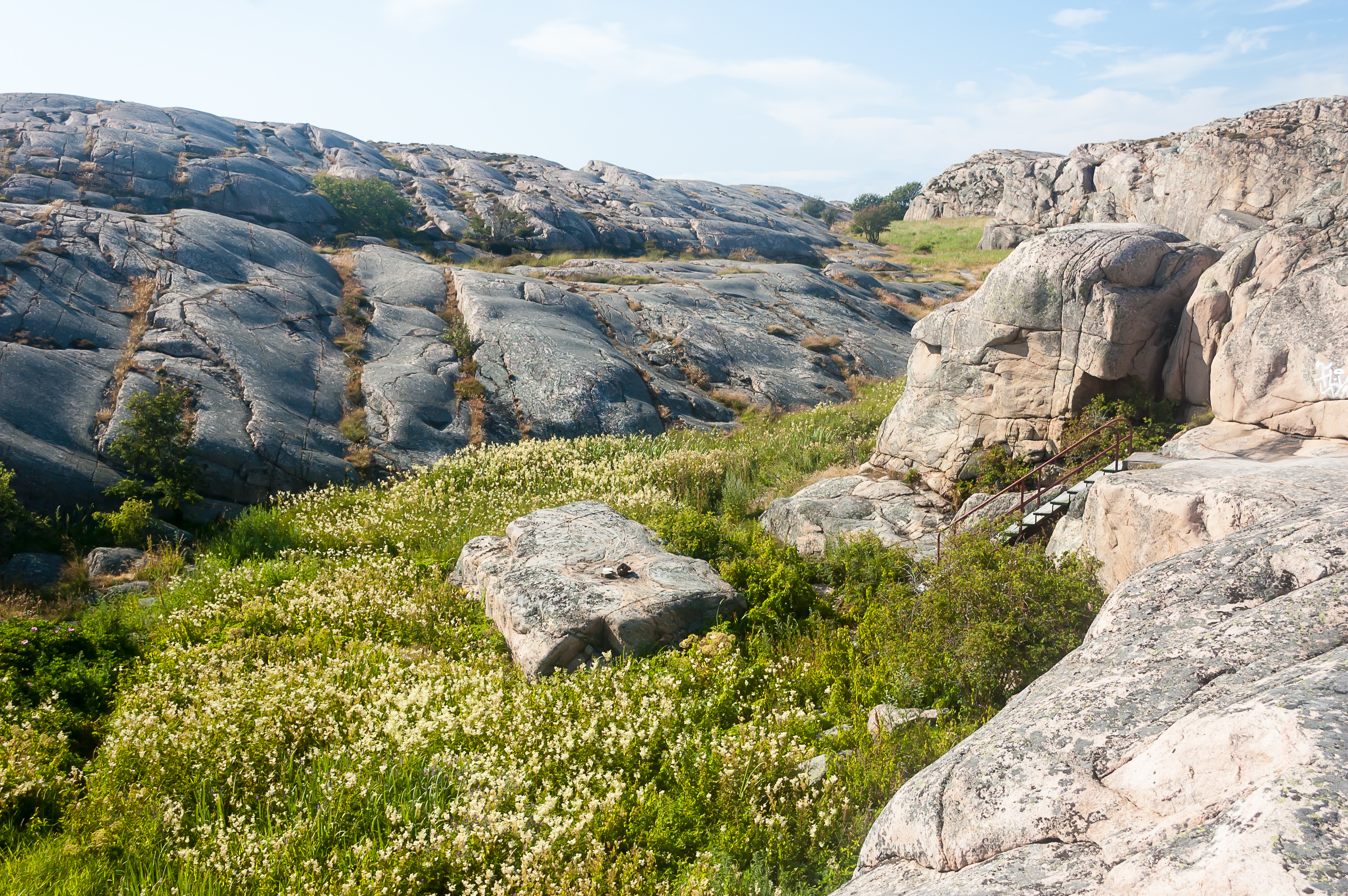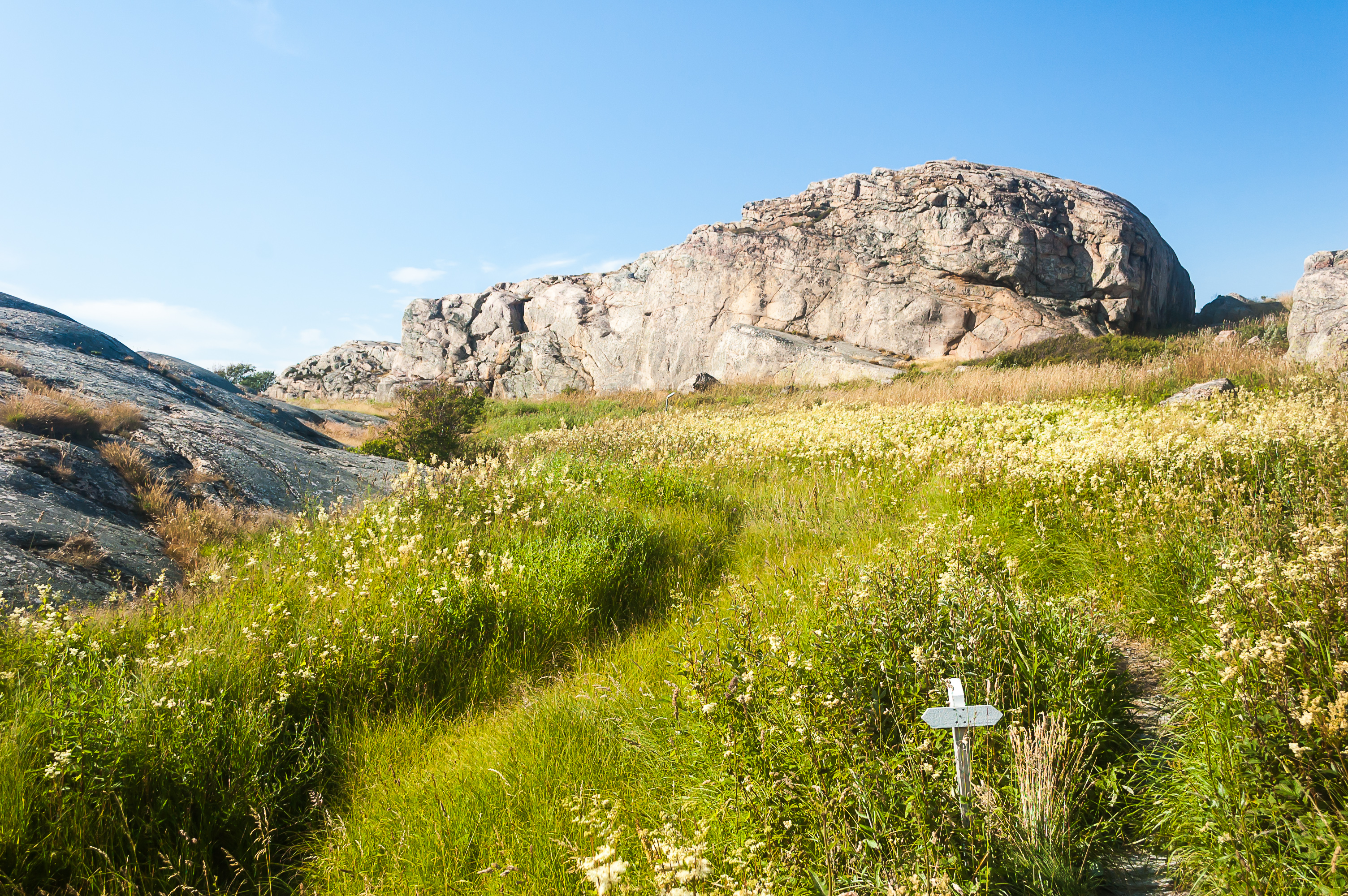 26. Примерно половина площади Смёгена застроена. Оставшаяся часть острова представляет собой в основном голый камень, покрытый сетью коротких туристических тропинок. Одна из них, например, идет на остров Клевен (Kleven), отделенный от Смёгена очень узким проливом, буквально метр шириной.
