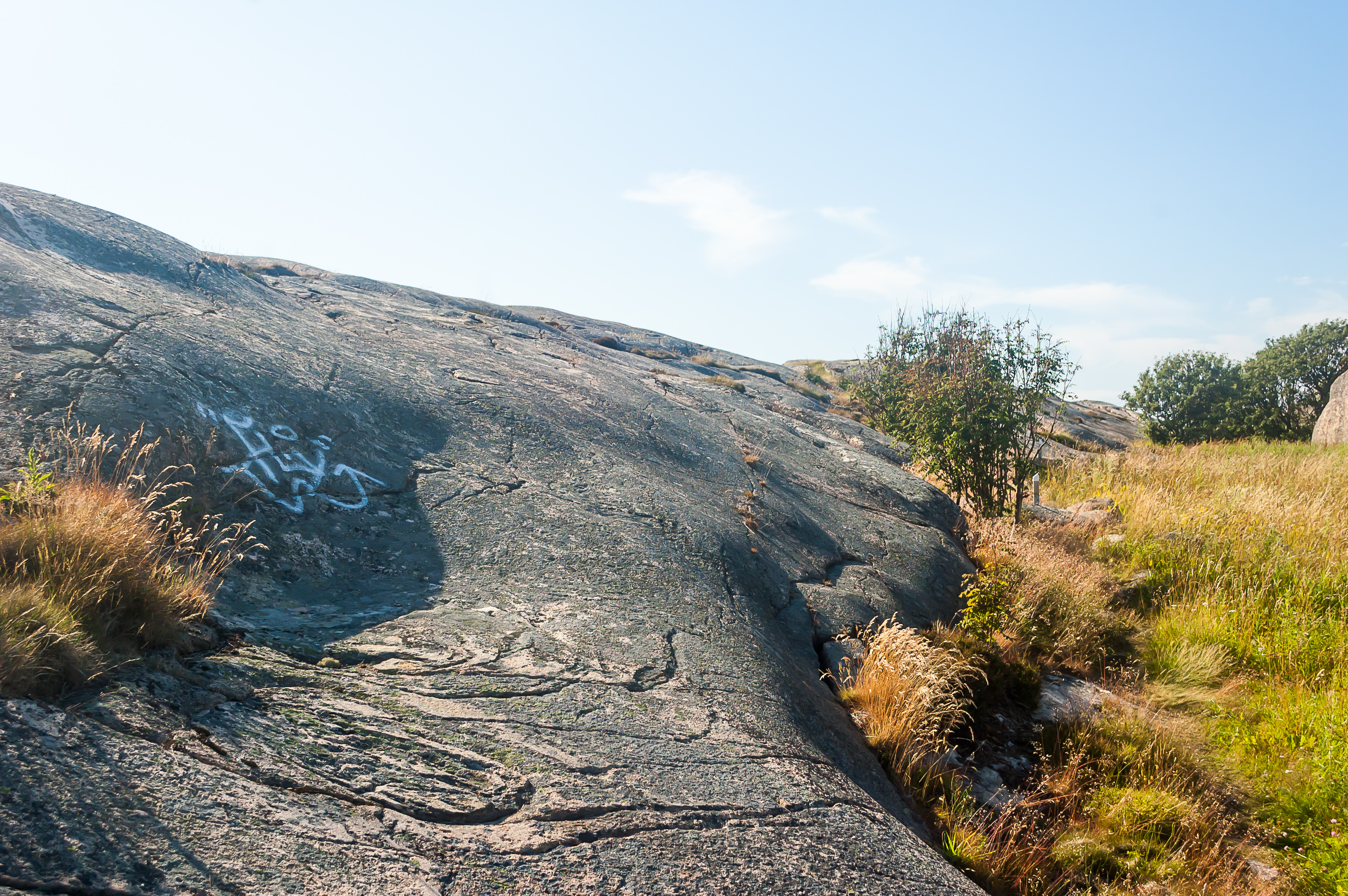 38. Наскальный рисунок. Может молодежь намалевала, а может и древний — на Смёгене есть древние наскальные рисунки. Они вообще нередко в Скандинавских странах встречаются. Их обычно подкрашивают красной или белой краской, чтобы, собственно, их можно было разглядеть.