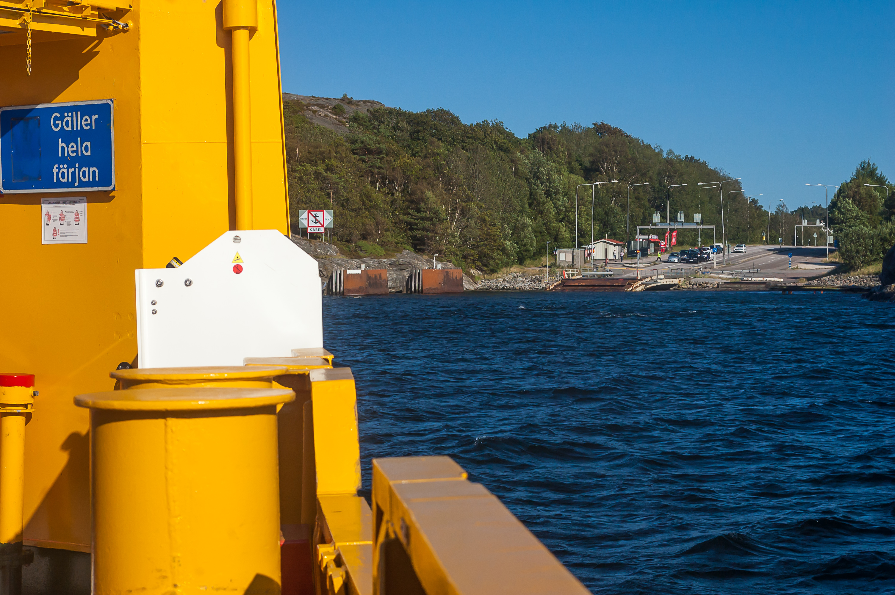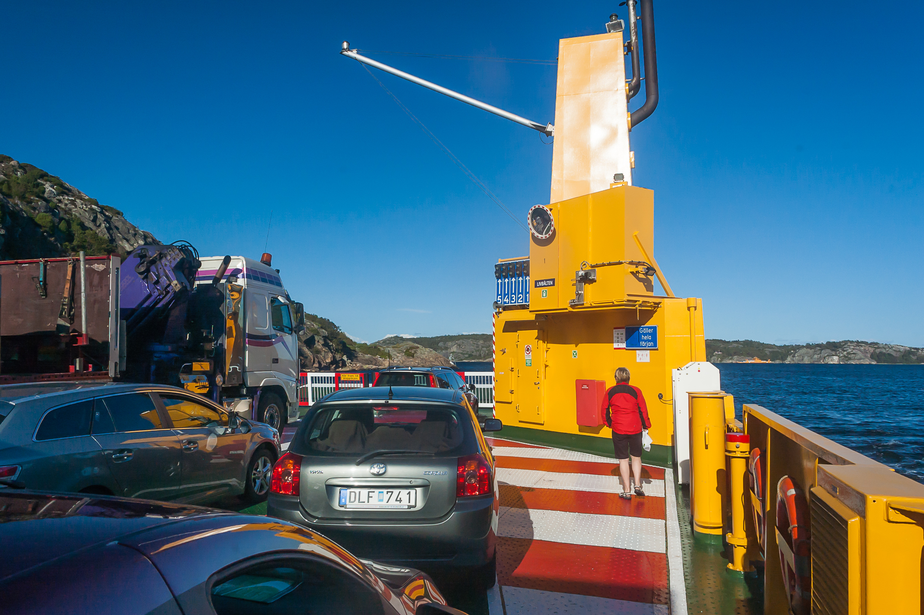 32. Вот и он, машинки с него съезжают. Переправа, как я уже сказал, весьма загруженная; это самый короткий маршрут в Люсешиль из практически любого места, кроме Смёгена ну или Норвегии. Но все равно никто бы не умер, проехав на 25 км больше.