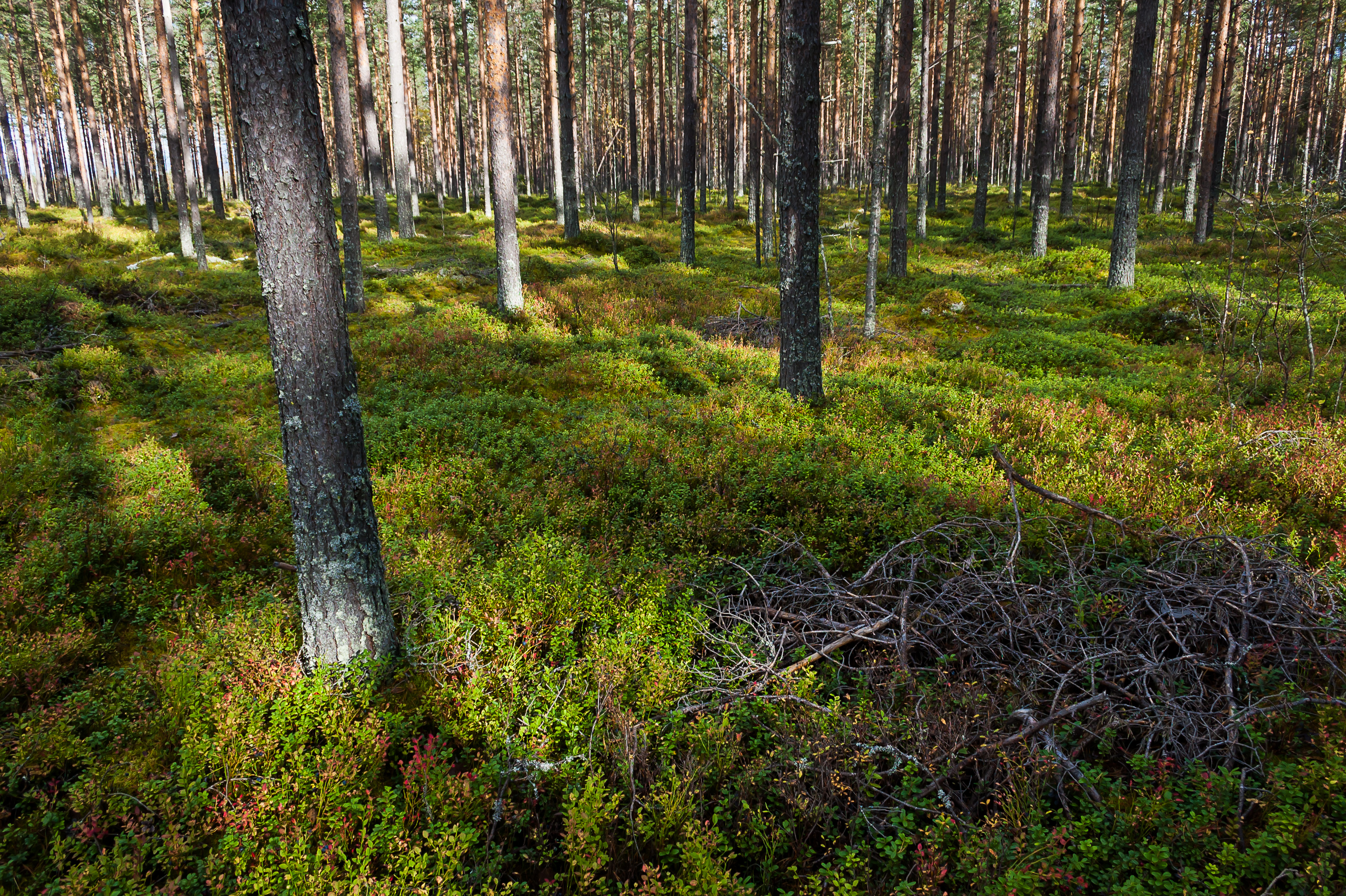30. 14:09, 670 км: ехал я, ехал, и заметил, что на очередной стоянке стоит фура с российскими номерами, а рядом в лесу водитель ходит, ягоды собирает. Мне стало интересно, и на следующей стоянке я сам притормозил, и прогулялся немного по лесу. Лес был весьма живописный, и в нем и впрямь было ну очень много брусники и голубики. Я попробовал несколько ягодок, ну, ягодки как ягодки. Ну на самом деле почти в любом финском лесу этих ягод тонны. Можно было всю страну «Ягодкалэнд» называть. Грибов тоже довольно много растет, правда, ни одного знакомого.
