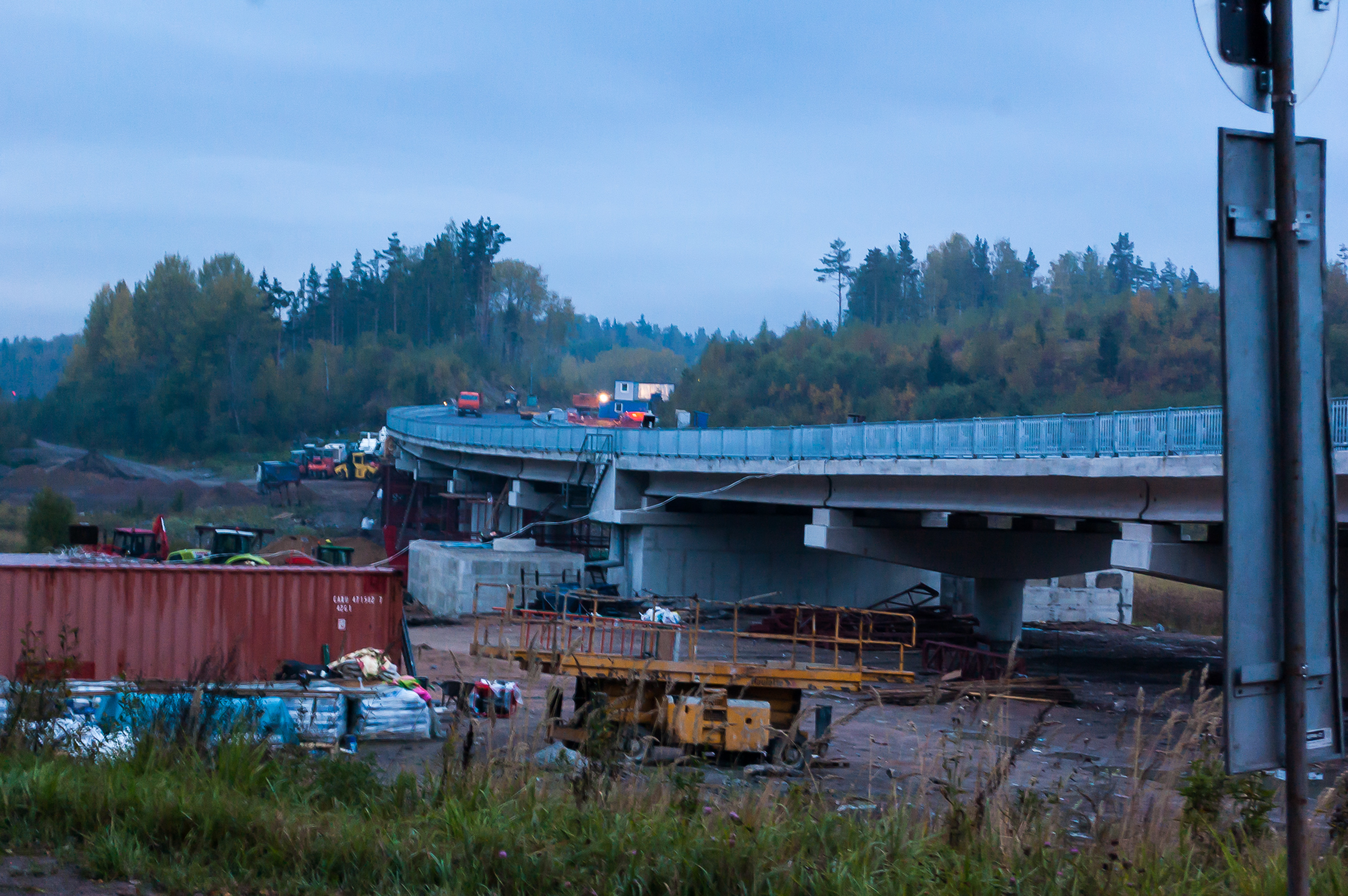 3. Выборг-Светогорск — отвратная дорога. Покрытие сейчас в порядке (раньше еще и ямы в полколеса были), но все равно узкая, петляет, а разметки местами вовсе нет. Здесь очень часто бьются при обгонах. Ранним утром, однако, дорога была почти пуста. Перед самым Светогорском проехал строящийся мост через реку Сторожевую, который где-то аж с 2006 года или около того ковыряют. Даже финны в свое время денег подогнали, чтоб его доделали наконец, а все как-то вот «место проклятое». Старый мост вполне проезжий, просто с крутыми съездами и поворотами.