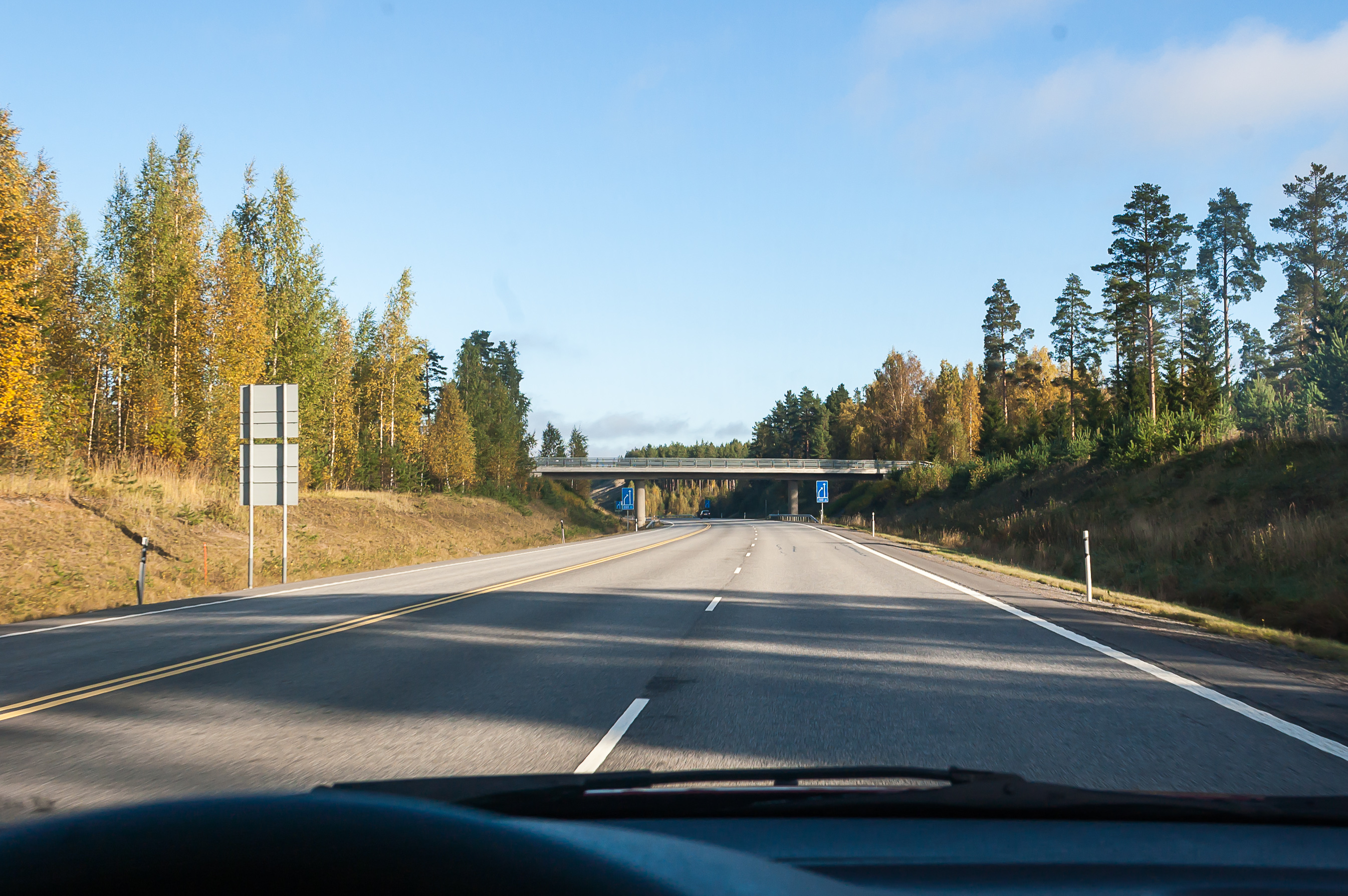 18. На Виитостие есть несколько участков 2+1, то есть с дополнительной полосой для обгона. Это именно просто несколько отдельных участков; серьезным строительством дорог в формате 2+1, как в Швеции, в Финляндии не занимаются.