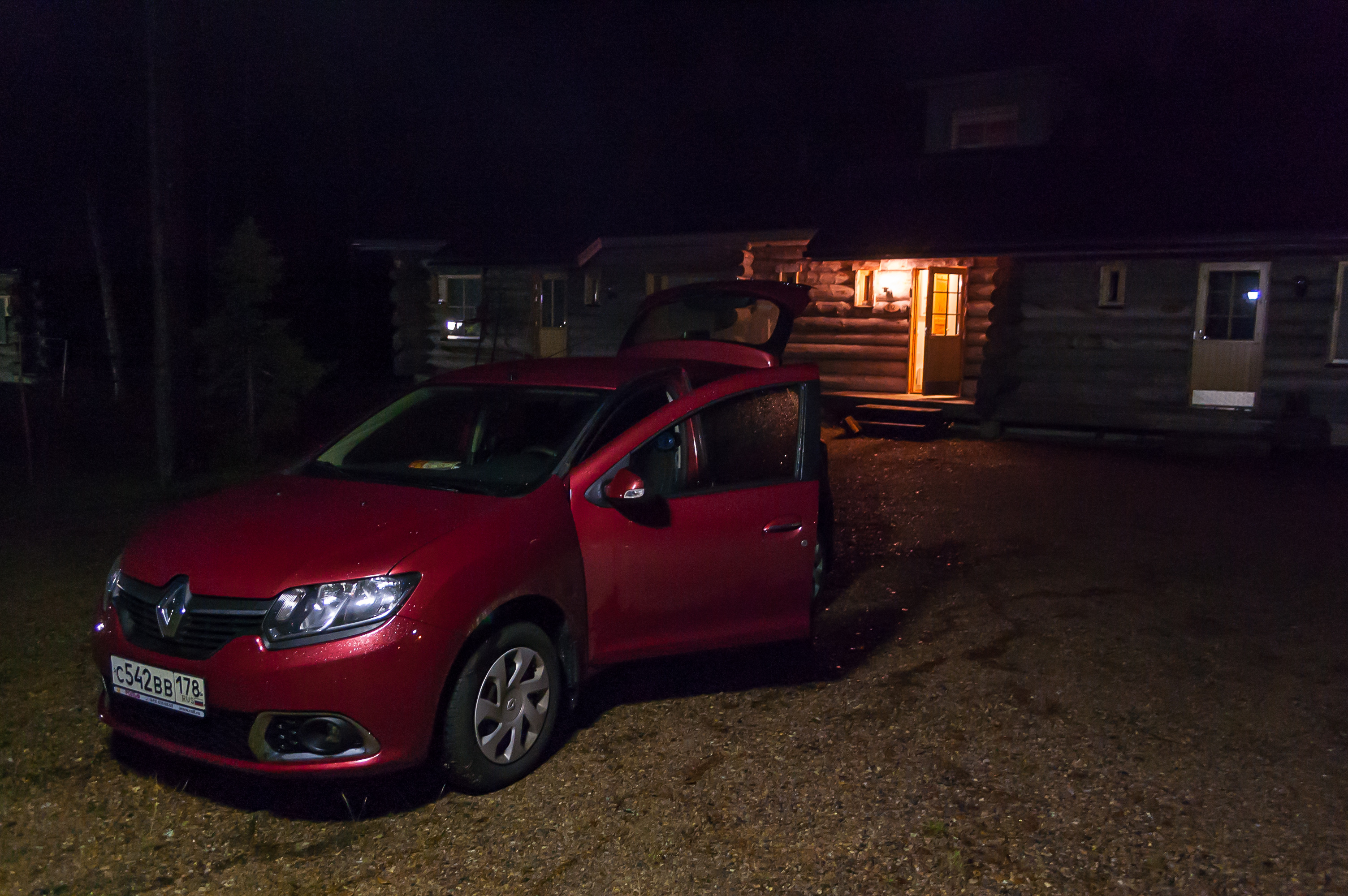 49. Я поглядывал, как в навигаторе сокращаются цифирки оставшегося расстояния, и в конце концов впереди показался свет фонарей. Экясломполо! Въехав в поселок, я свернул направо на его главную улицу, Тунтуринтие (Tunturintie, фин. Дорога на фьельды), и сразу же узнал светящуюся вывеску торгового центра «Йоунин Кауппа», которую я запомнил с панорам Гугла. Еще километр, и я свернул на короткую тупиковую улочку, усеянную бревенчатыми коттеджами. Я сделал по ней круг, нашел тот, который больше всего походил на фотографии, и заехал на его довольно большую покрытую гравием парковку, чтобы посмотреть поближе. Номер над дверью совпадал с бронью. Я нашел свой коттедж.