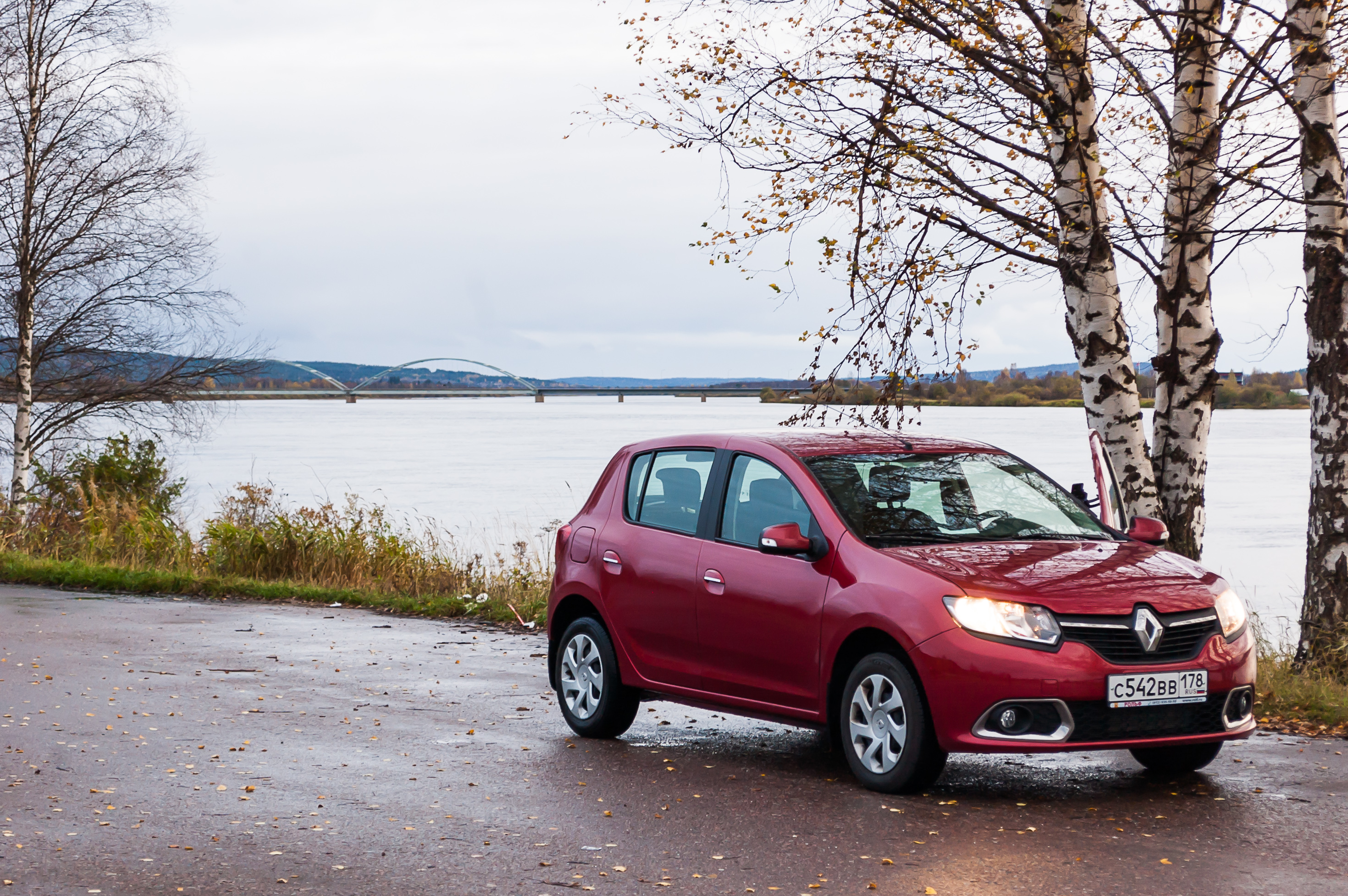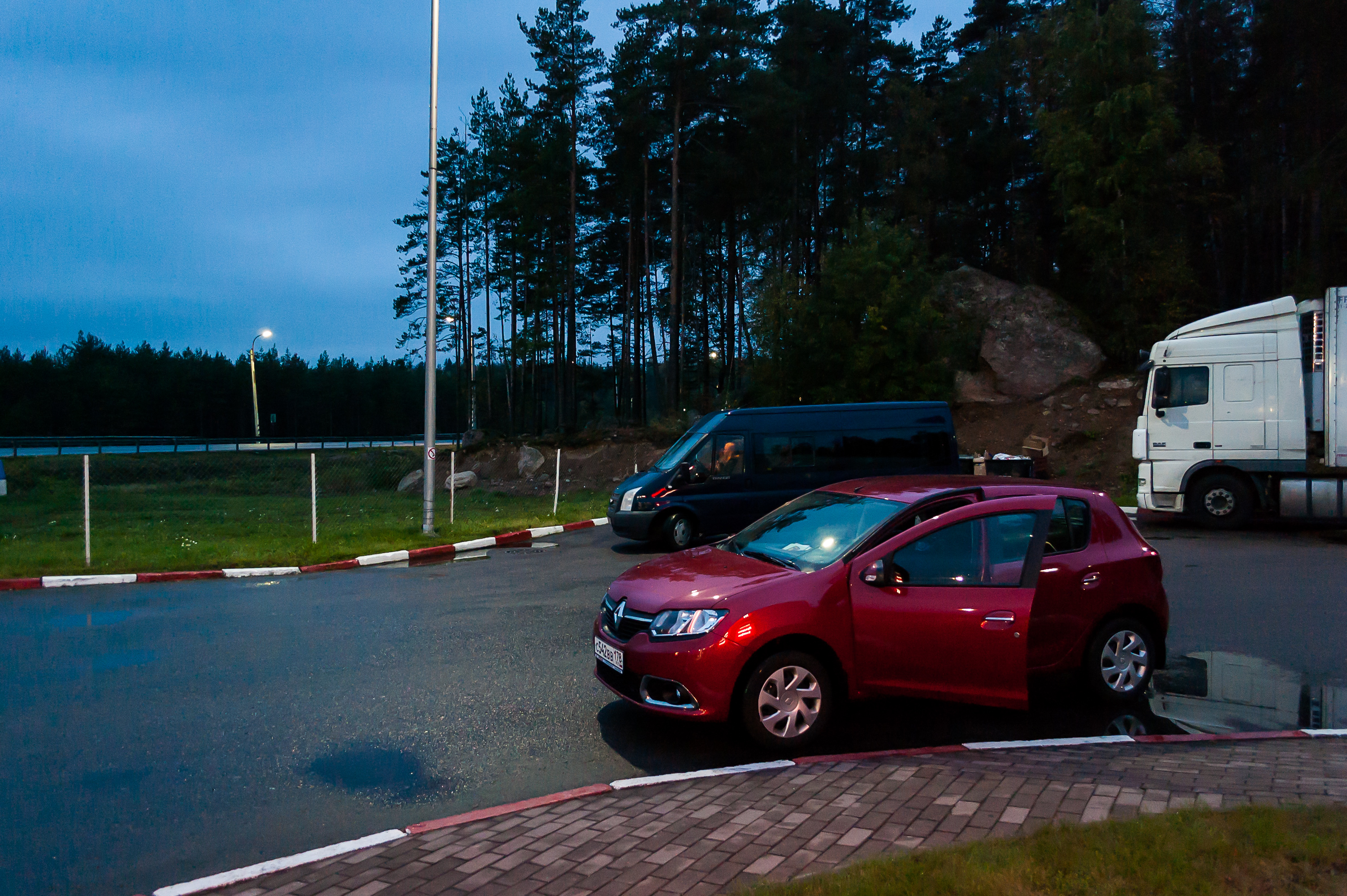 10. 8:47, 286 км: на придорожной стоянке у трассы 62. Сандеро может быть вполне фотогеничной машинкой.