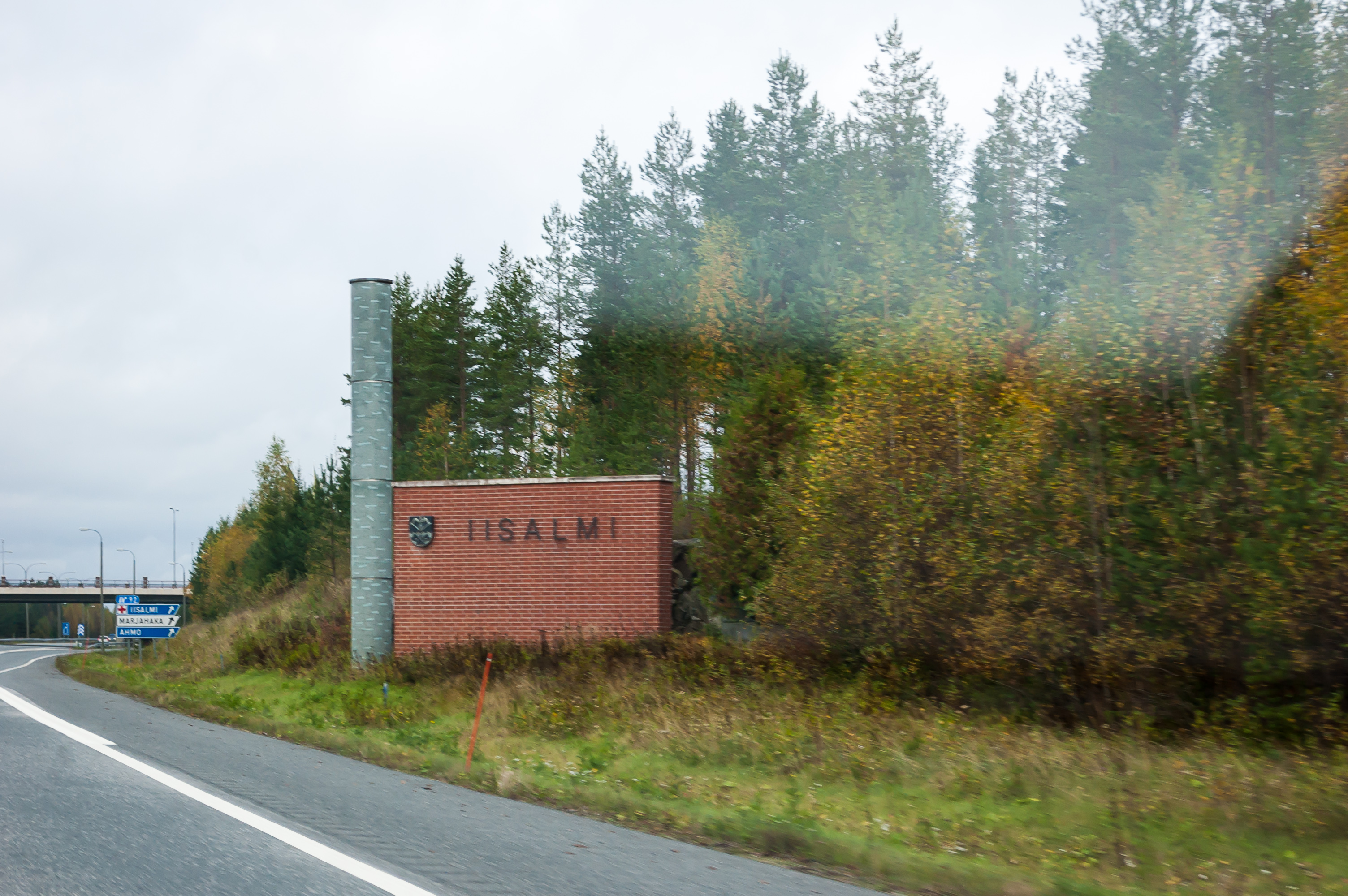 35. Следующий город после Оулу (пригород по сути даже наверное) называется Ии. Да, так и называется. Ии (Ii). Названия на финских дорожных знаках пишутся заглавными буквами, а тут, видимо, специально вторую букву строчную написали, чтобы хотя бы понятно было, что это слово Ii, а не просто какие-то непонятные две белые палочки от балды нарисовали.