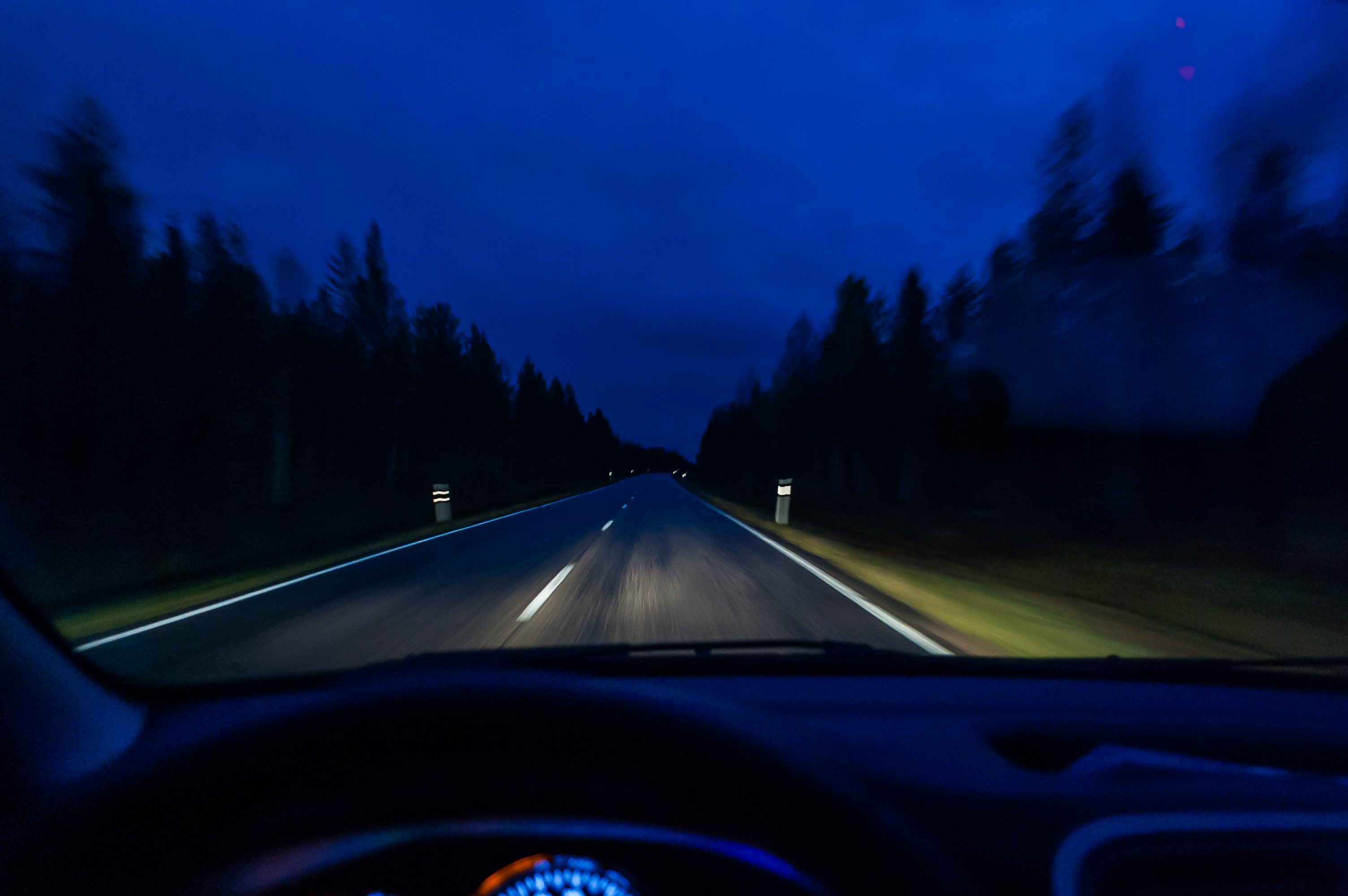 К 5:55 небо начало из черного становиться темно-темно-синим, а к 6:25 уже рассвело достаточно, чтобы не было необходимости включать дальний свет фар.