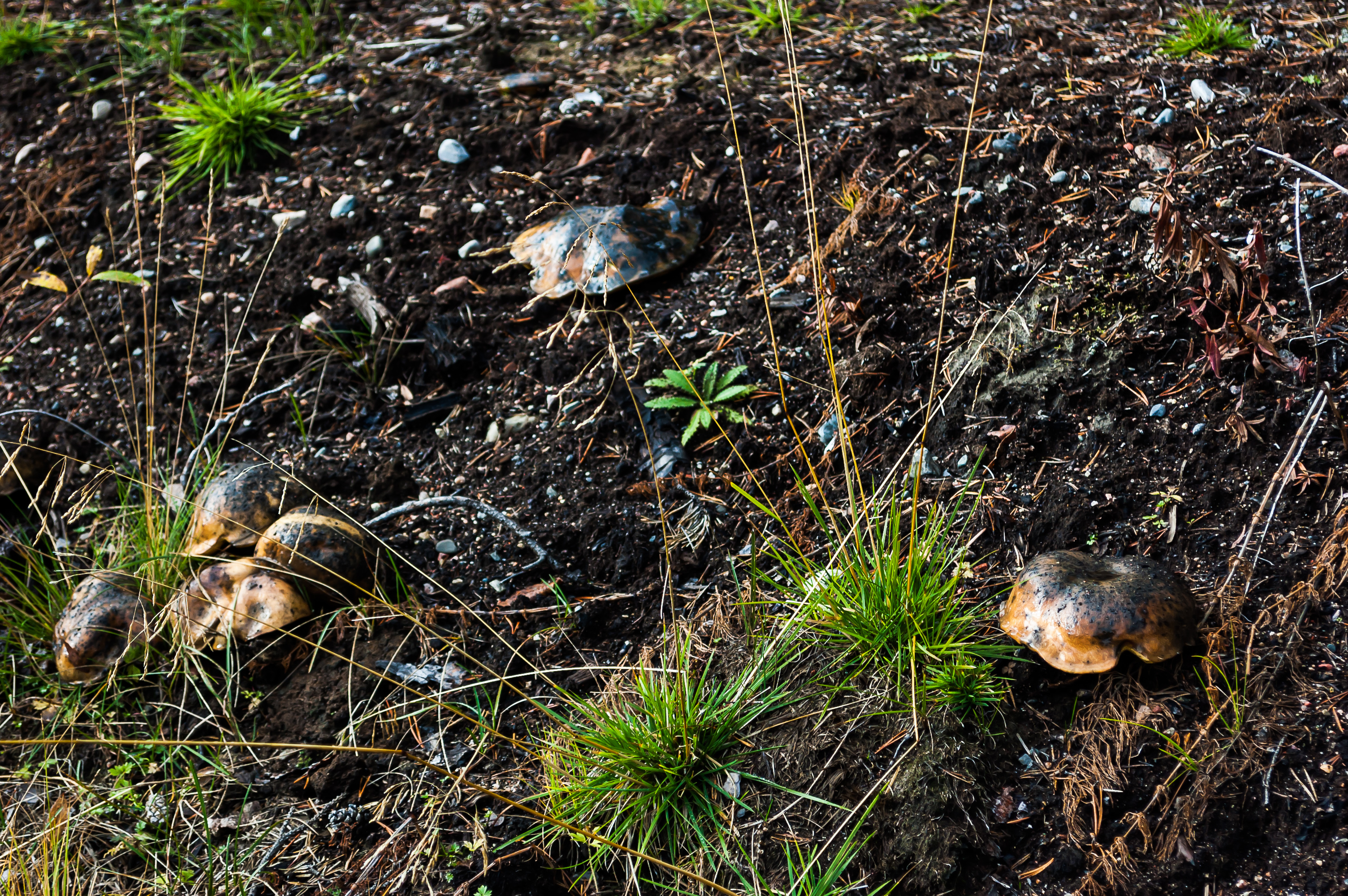31. Ягод кругом росло море, даже прямо на обочине Тунтуринтие. Я все надеялся пособирать морошку, которой Лапландия так славится, но так нигде и не нашел. Похоже, она значительно раньше поспевает, посреди лета еще. Еще попадалось много странных грибов, например эти, похожие на черепах.