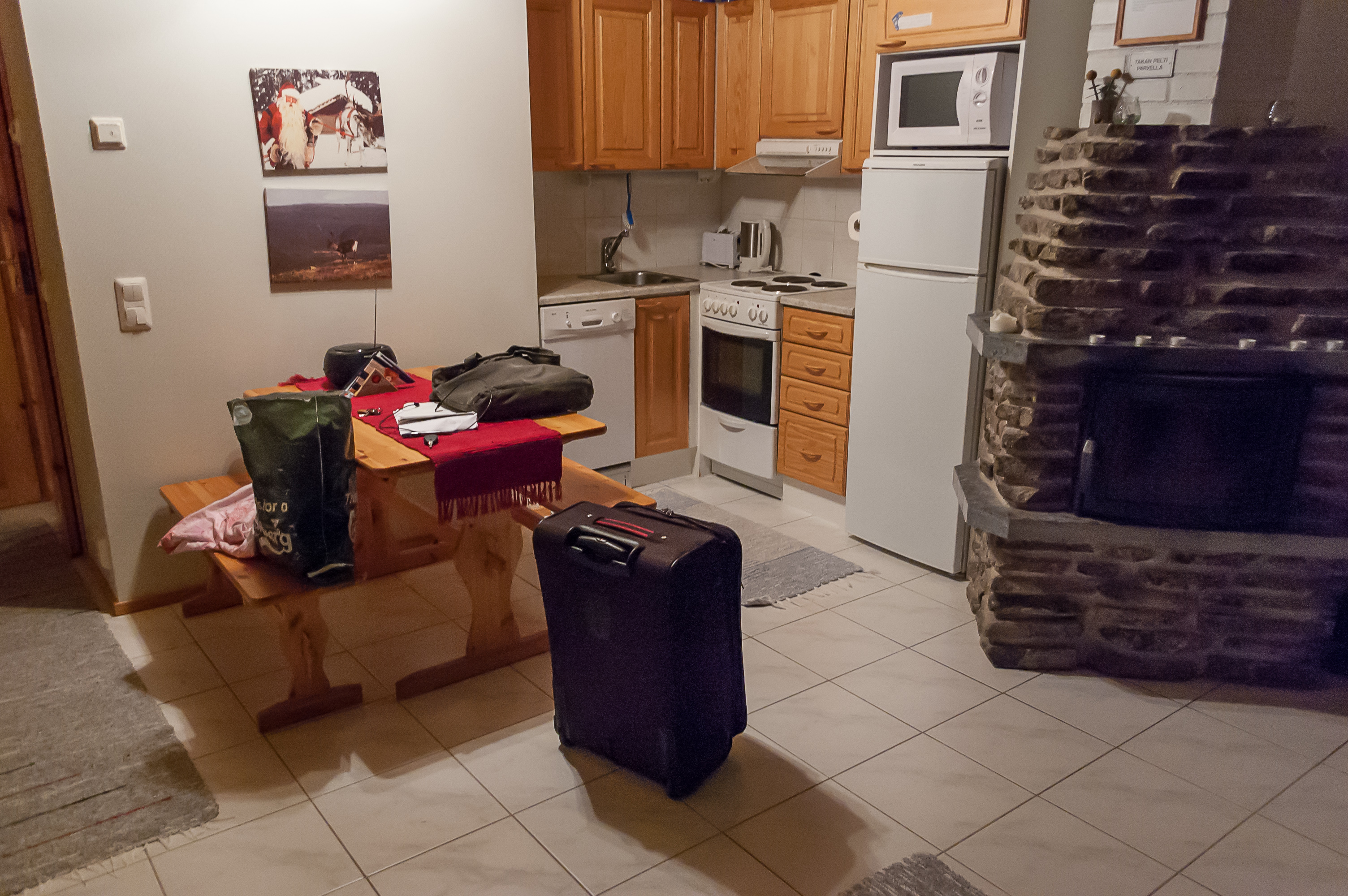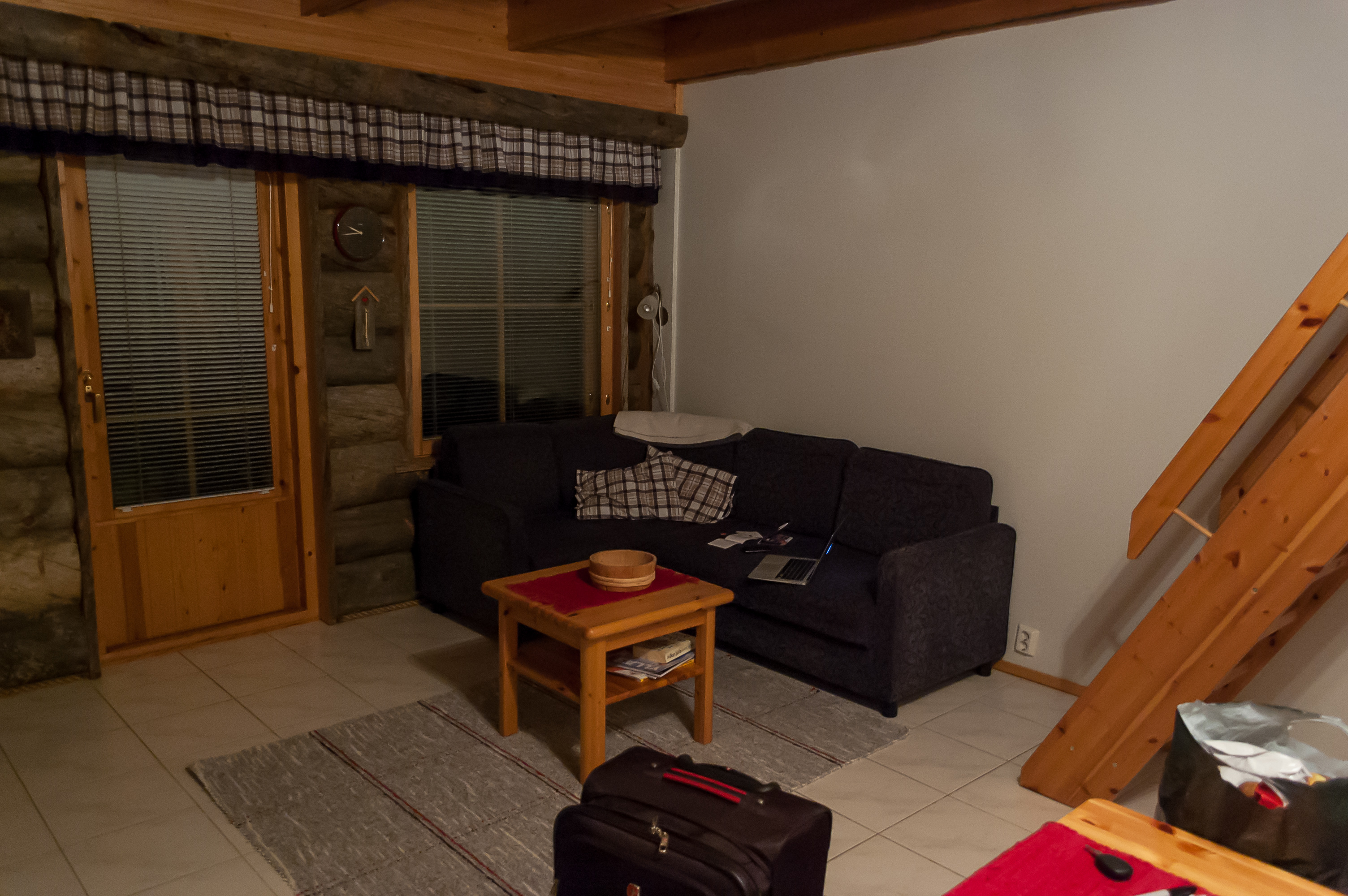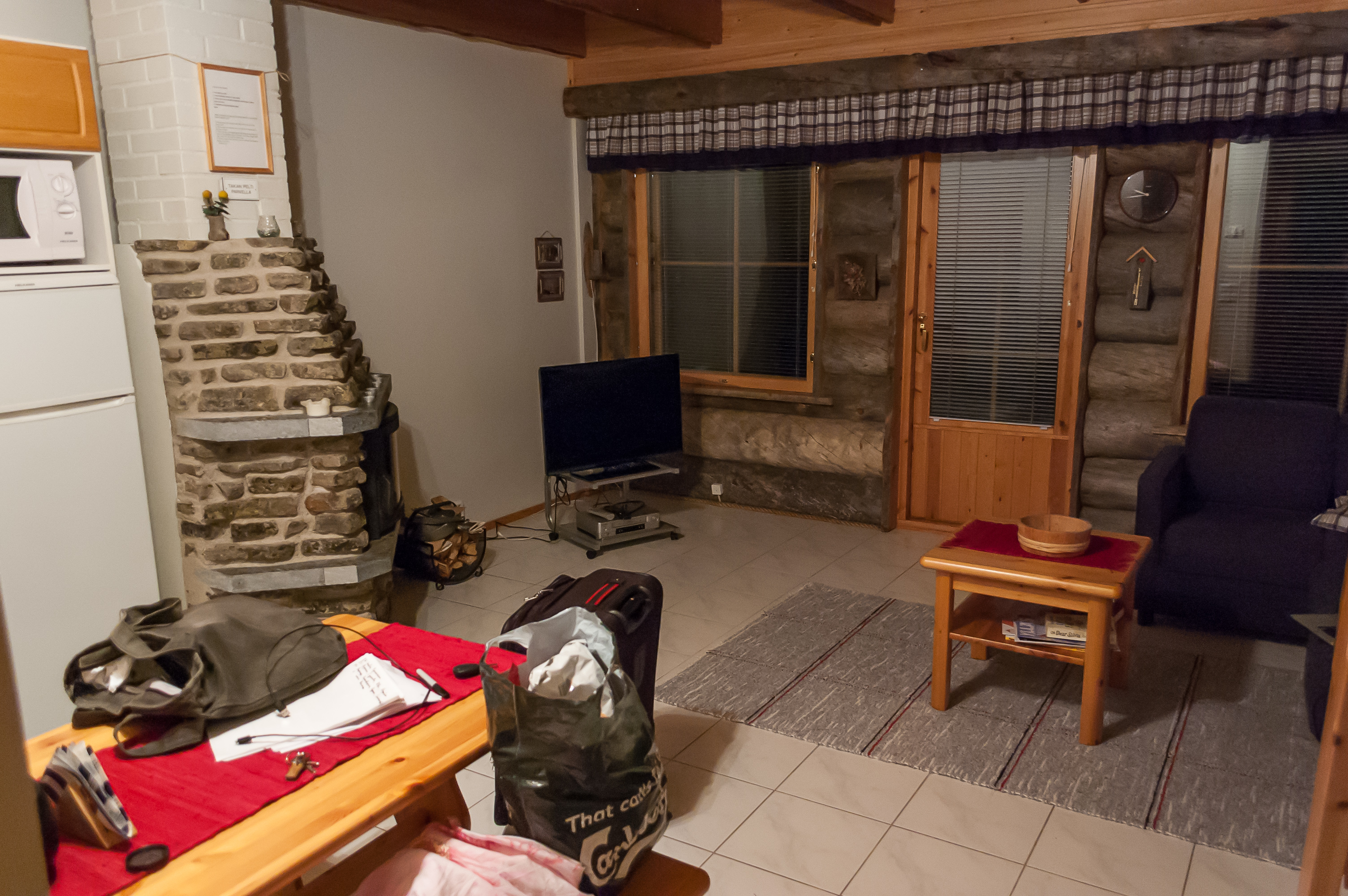 Итак, как же выглядит коттедж на лапландском горнолыжном курорте? Да просто супер он выглядит, чего уж там. Я никогда в таких условиях нигде не жил. По сути это абсолютно полноценный дом, где один-два человека могут жить сколько угодно долго со всеми удобствами. (В Экясломполо, конечно, есть и более традиционные гостиницы; есть и коттеджи побольше, куда влезает больше народа. Мой был один из самых небольших.)