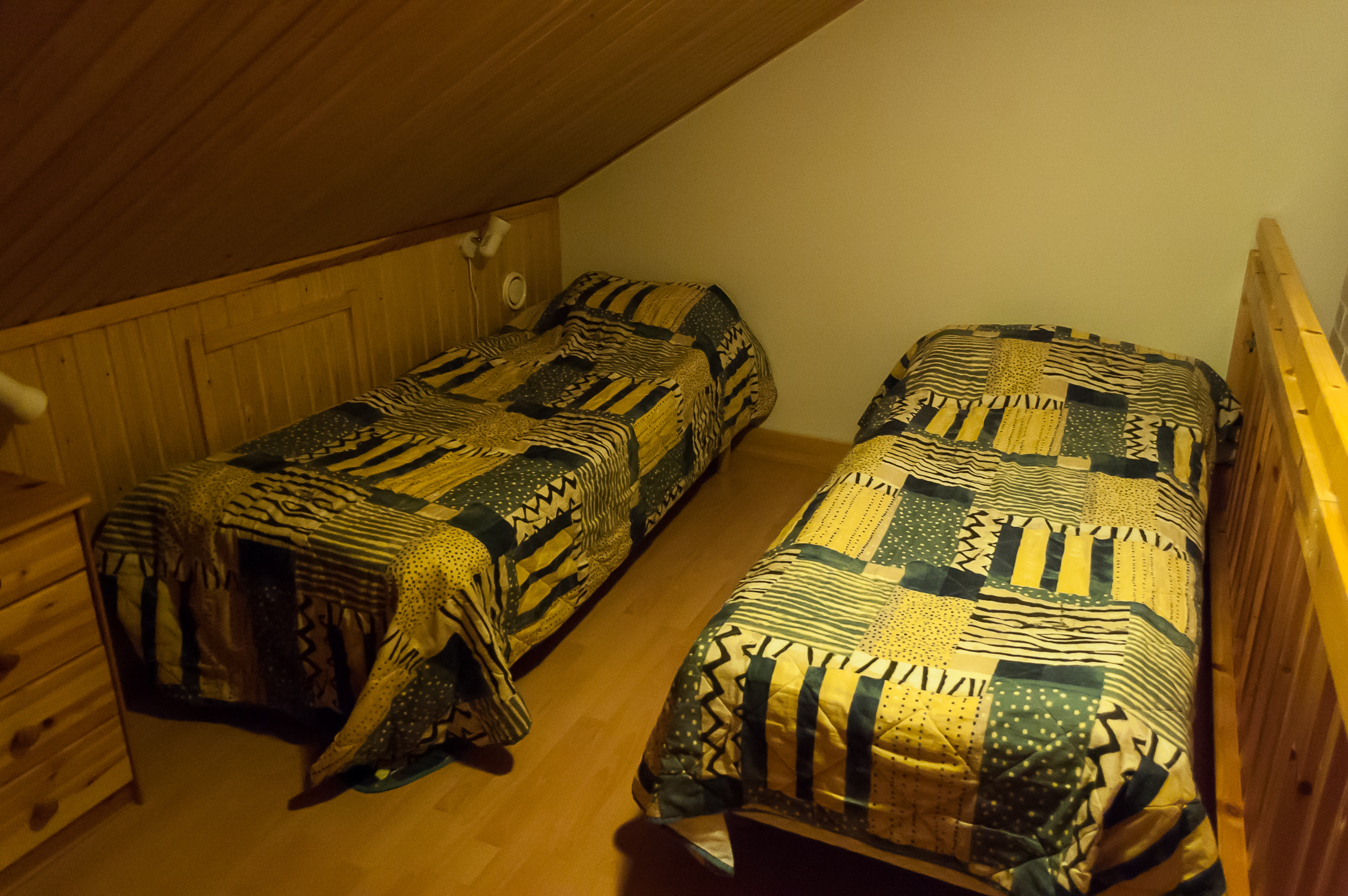 6. В мансарде стоят две кровати, комодик, да в общем-то и все.