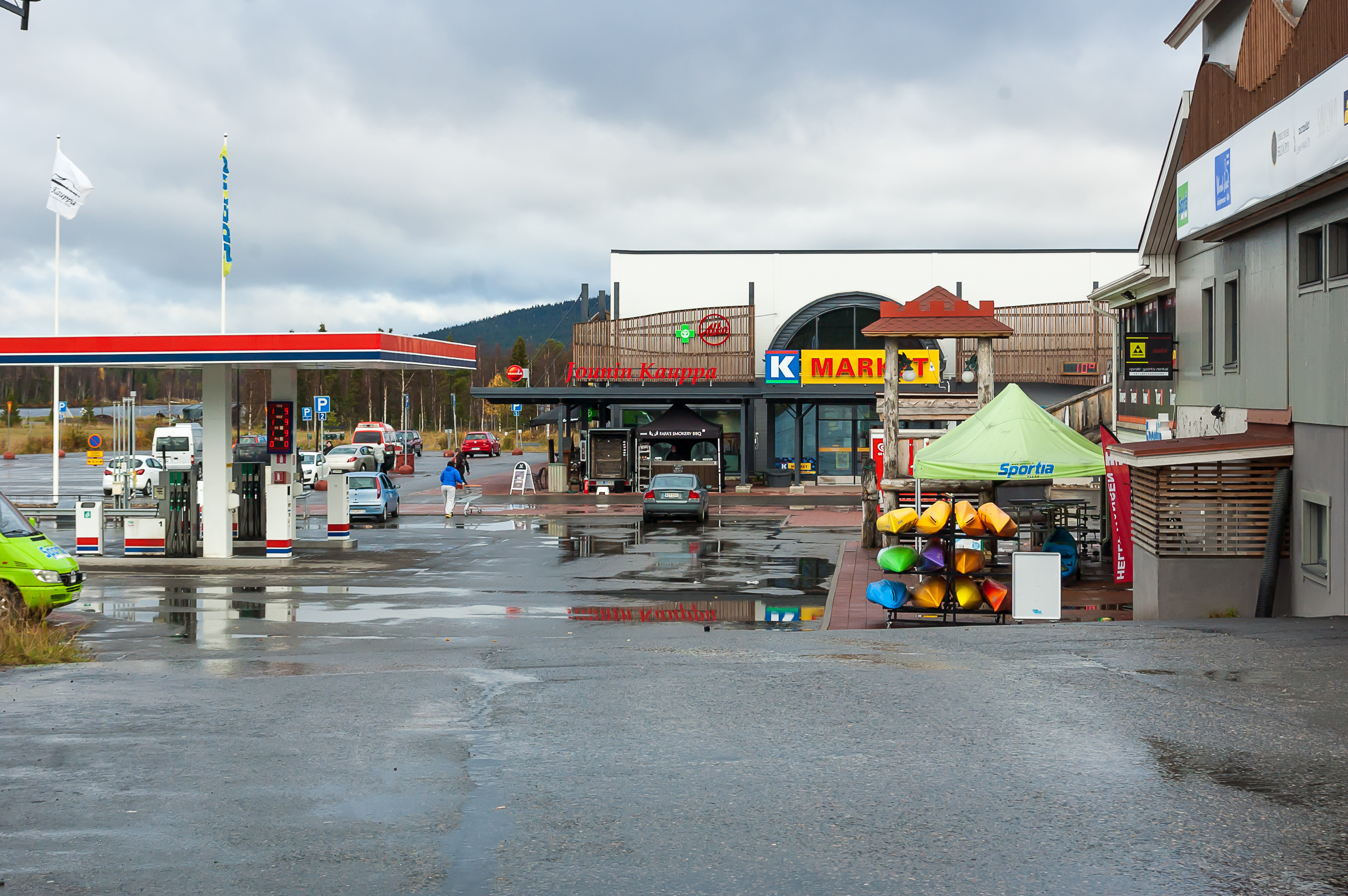 20. Местный «К-Маркет» довольно-таки огромный. Эти супер/гипермаркеты есть почти в любом финском городе, но я читал, что на самом деле именно в Экясломполо находится самый большой. Нехилое достожение для поселка с постоянным населением в 400 человек, ну даже если предположить, что зимой тут толпы туристов. Ну, мне пока что еды покупать было не надо. На парковке перед «Йоунин Кауппас» также разместилась автоматическая заправка.