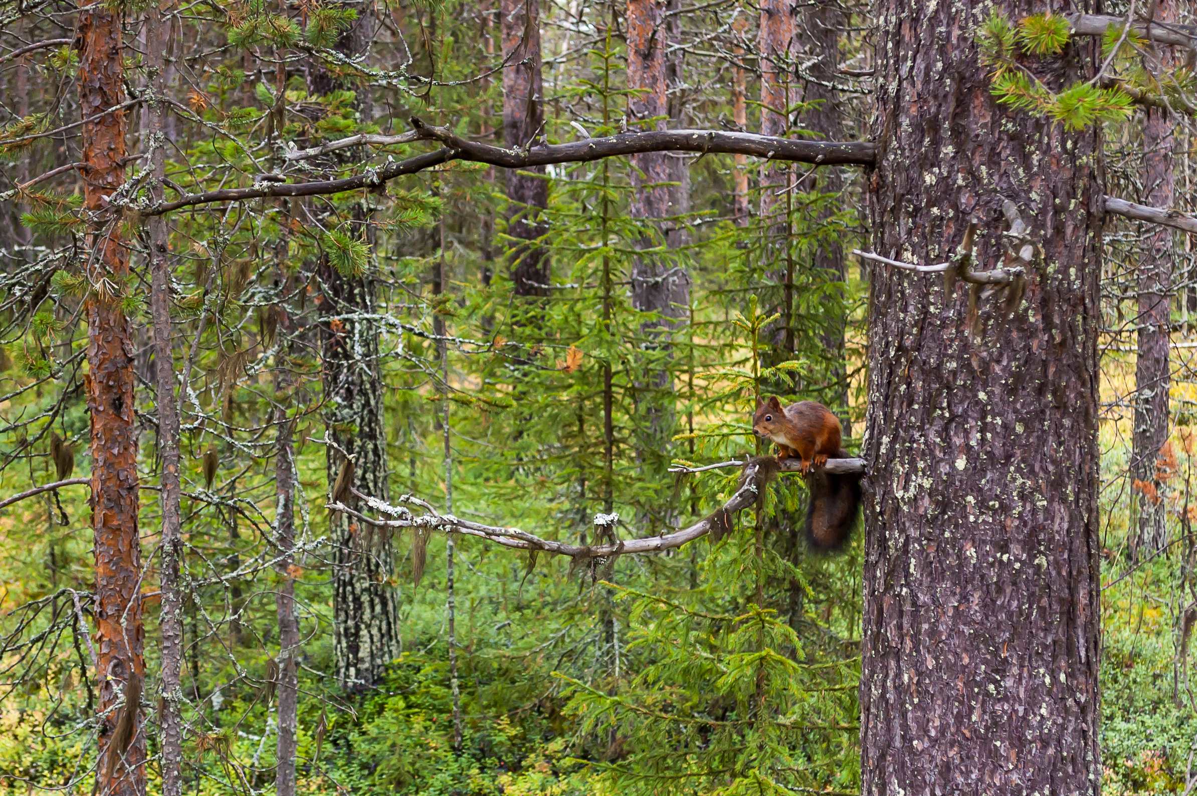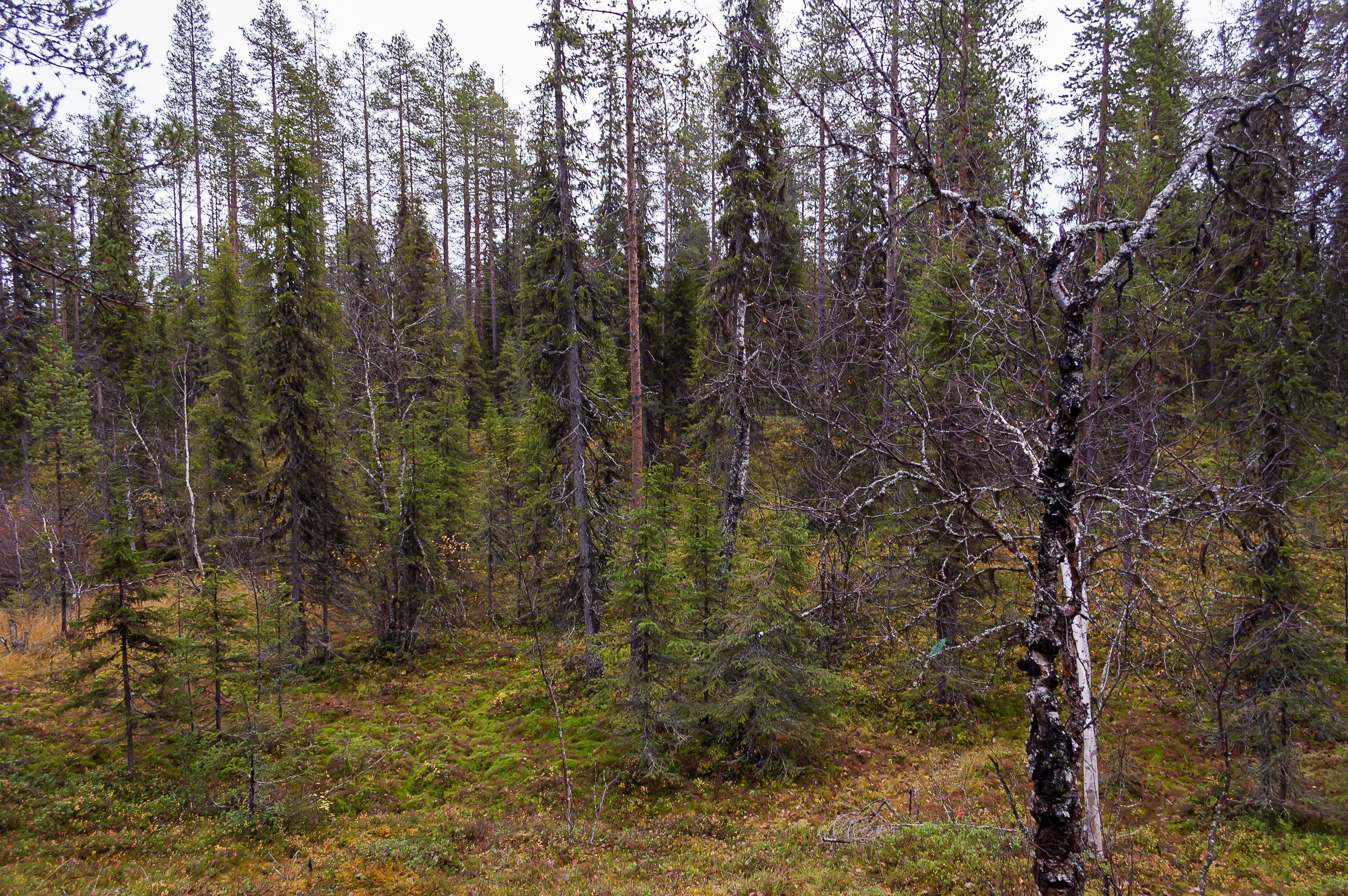 11. Самый настоящий лапландский лес, резко отличающийся от лесов юга Финляндии или Ленобласти. Состоит в основном из высоких, очень узких елок. Лиственные деревья — в основном березы — часто причудливо изогнуты, а кора ствола и земля покрыты мхом. Травяной покров невысокий, но густой; существенную его долю представляют ягоды голубики.