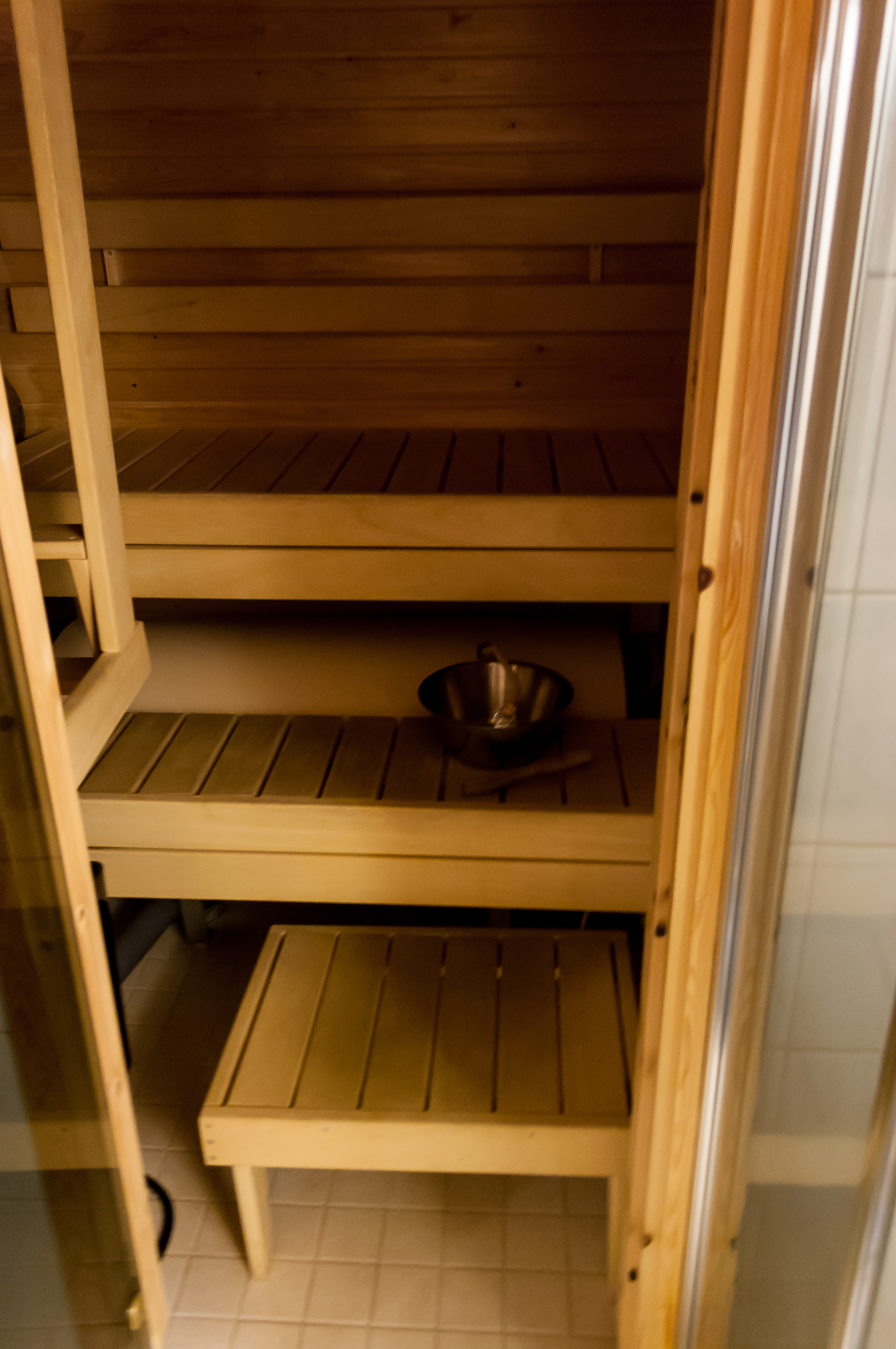 8. Ну и, конечно, какой же может быть финский коттедж без сауны. Сауна довольно обычная, электрическая, я уже был знаком с такими — на стене висит ящик с камнями, нагреваемыми электричеством, и на них просто плещешь водички.