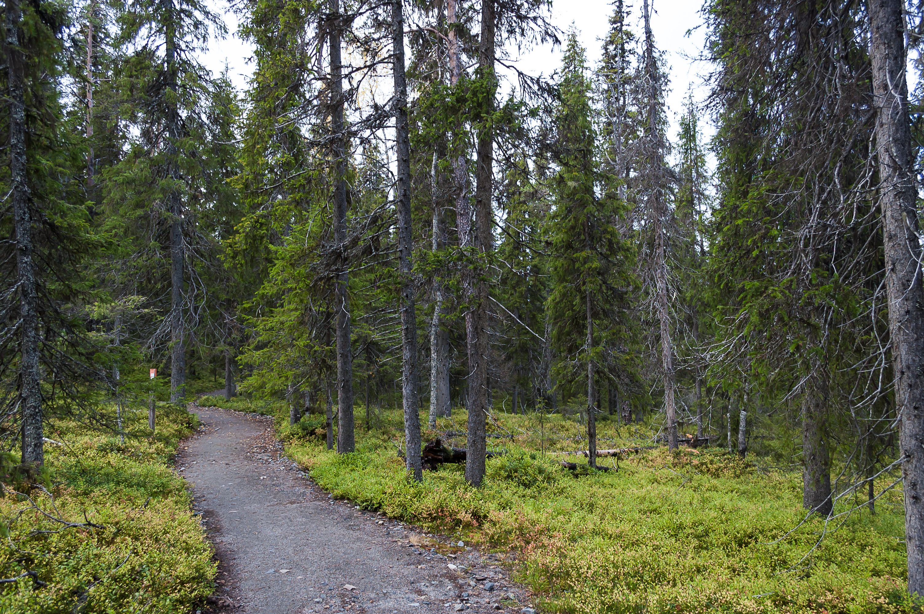 Поизучав карту, я выбрал наконец тропу под названием Тяхтиполку (Tähtipolku, фин. Звездная тропа), которая поднималась на фьельд Кесянки (ударение на е, если что) через ущелье Пирункуру. Засим я вышел из Келлокаса и отправился в путь. (Edit 2022: тропа сейчас называется Pirunkurun ponnistus.)