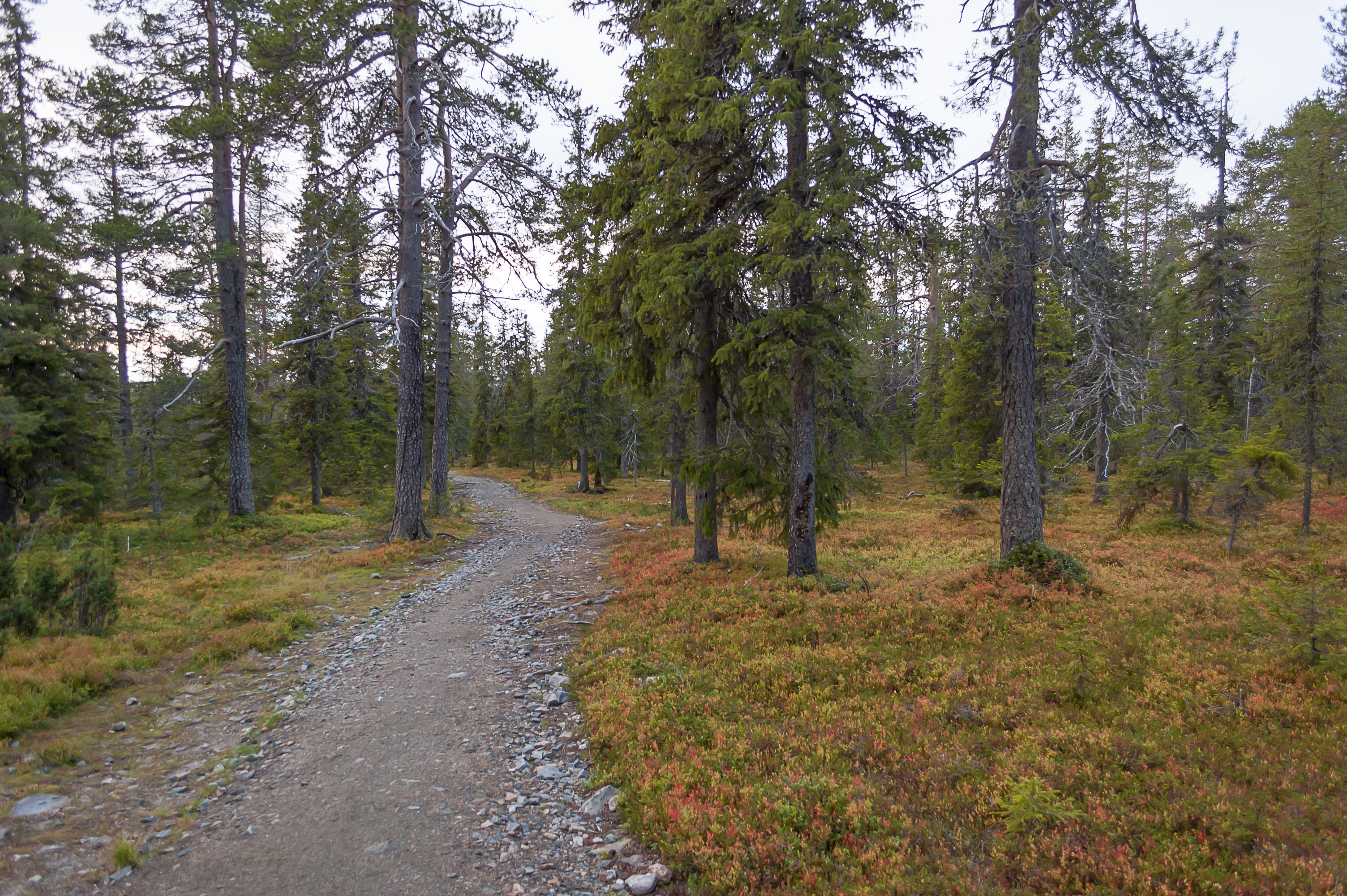 1. Тропа Тяхтиполку на самом деле официально начинается не от «Келлокаса», а от озера Кесянкиярви, так что мне нужно было сначала пройти участками троп Варкаанкуру и Хиллаполку (Hillapolku, фин. Морошковая тропа). Так что я снова иду к ущелью Варкаанкуру.