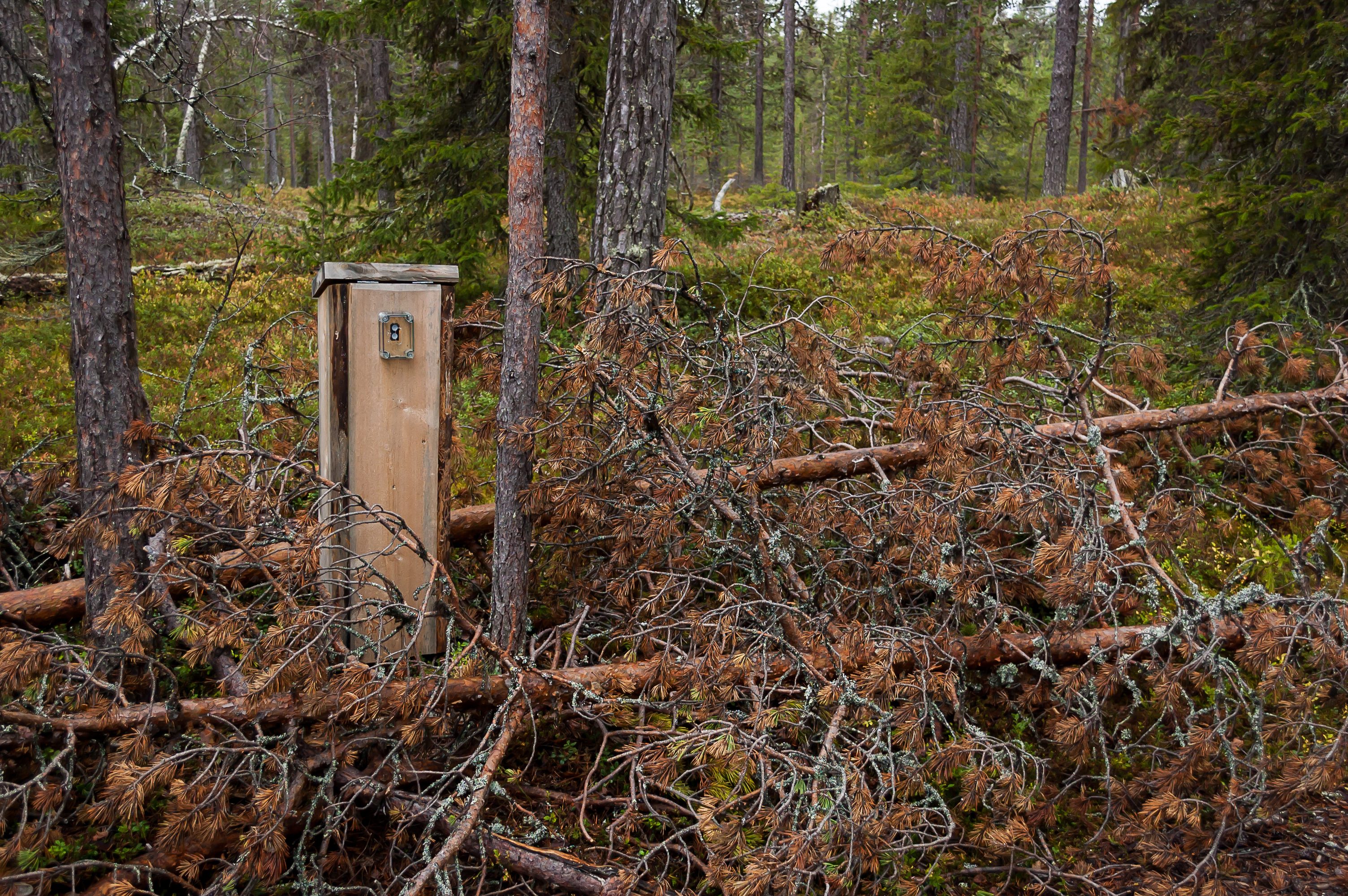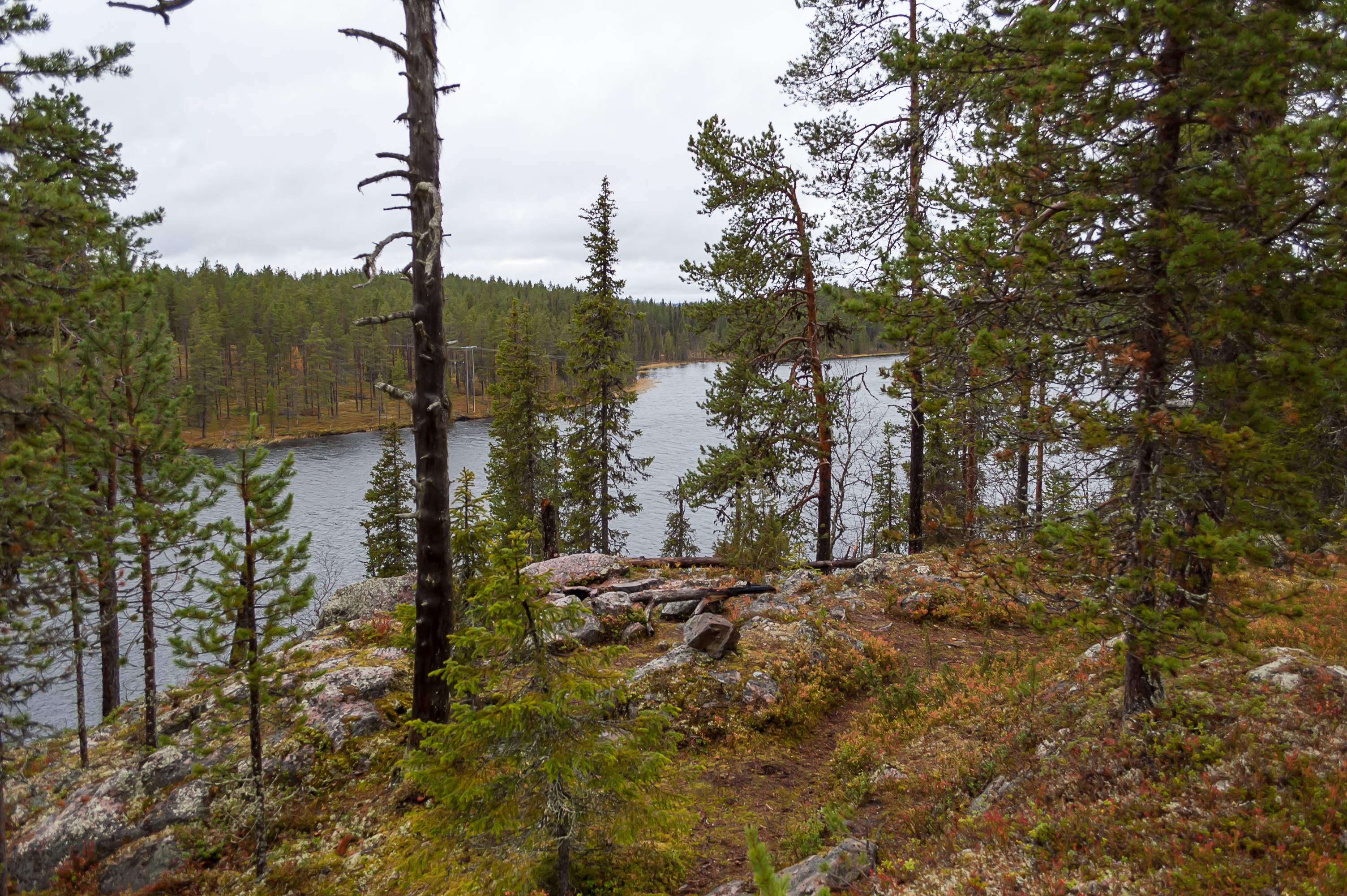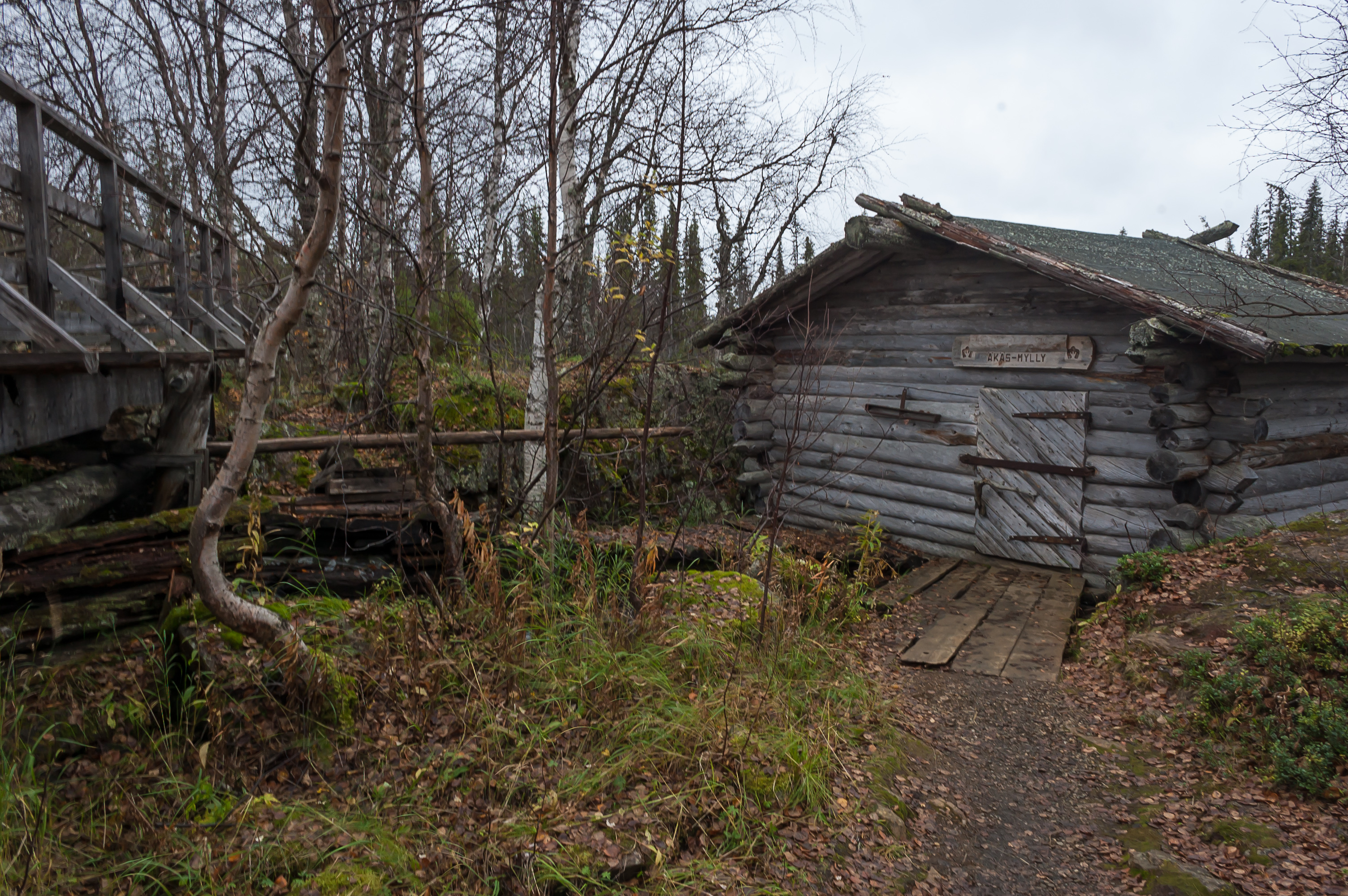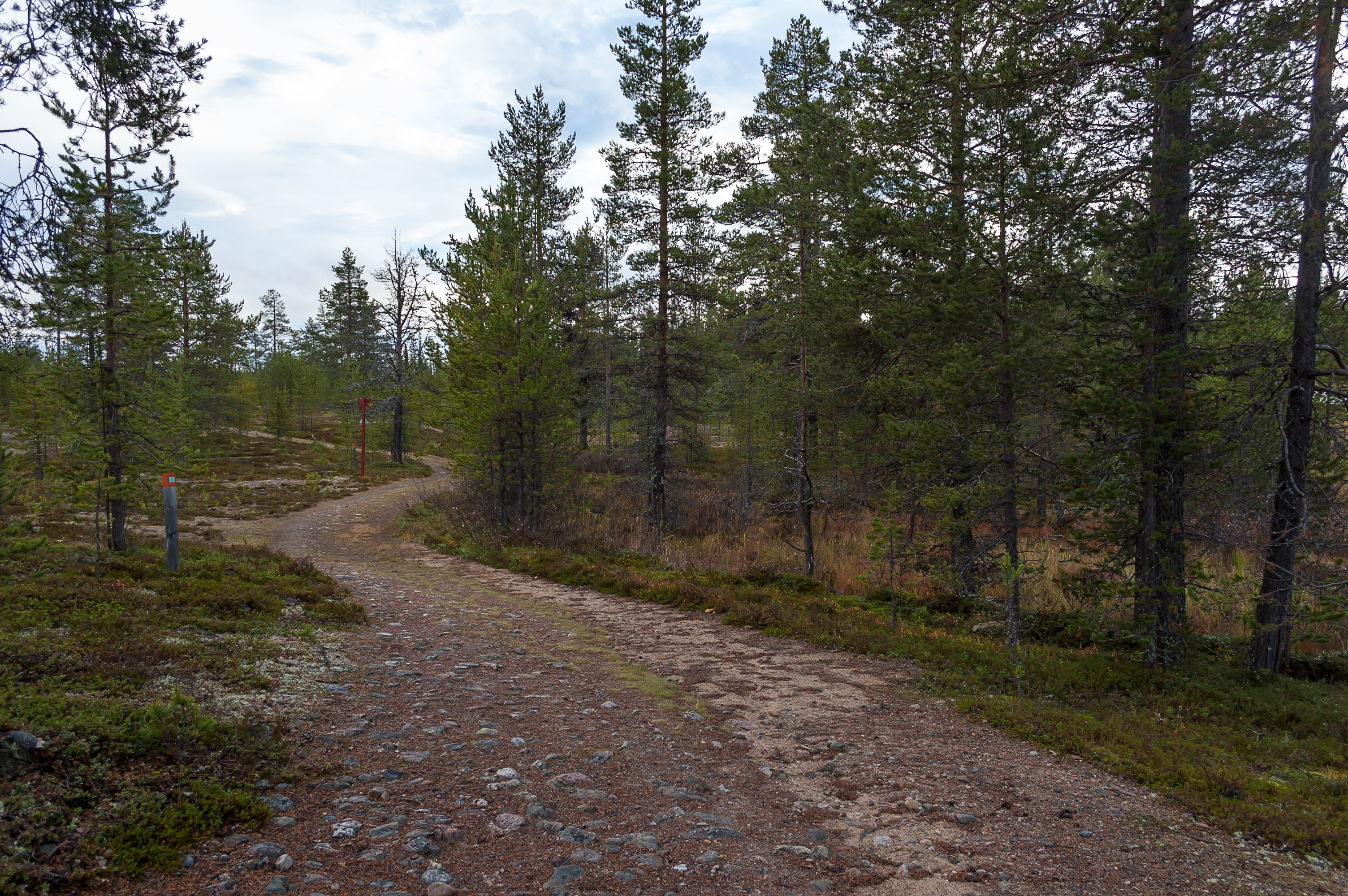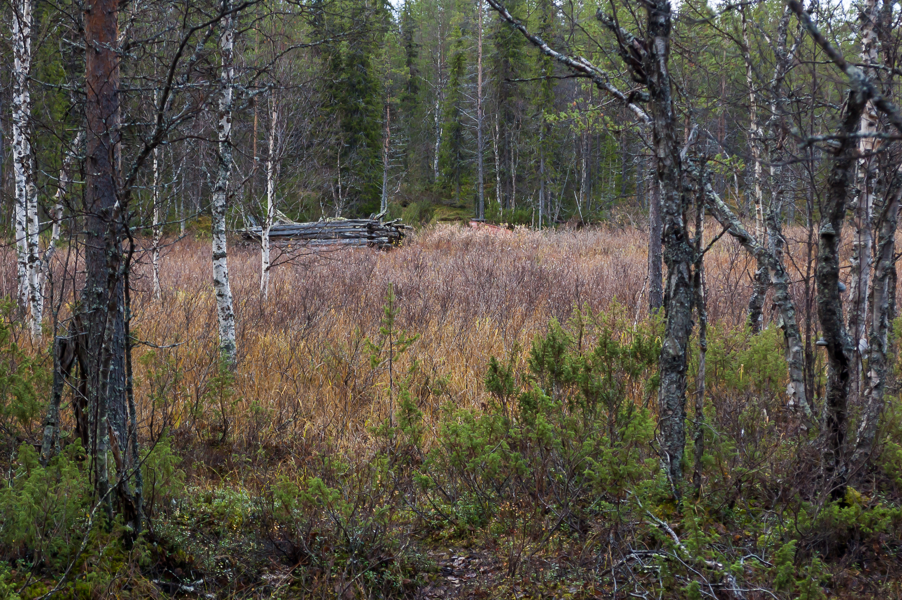 14. На другом берегу стоял навес-лааву, под которым сидели четыре финна и молча пили. Большинство посетителей дальше не заходят, но тропинка идет дальше и разветвляется. Правый путь ведет обратно к Экясломполо, а левый — к камню Сейтакиви (Seitakivi, фин. буквально и будет камень-сейд), а от него к Приюту Экяскеро у одноименного фьельда. От мельницы до Сейтакиви примерно 3 км. Я отправился дальше.