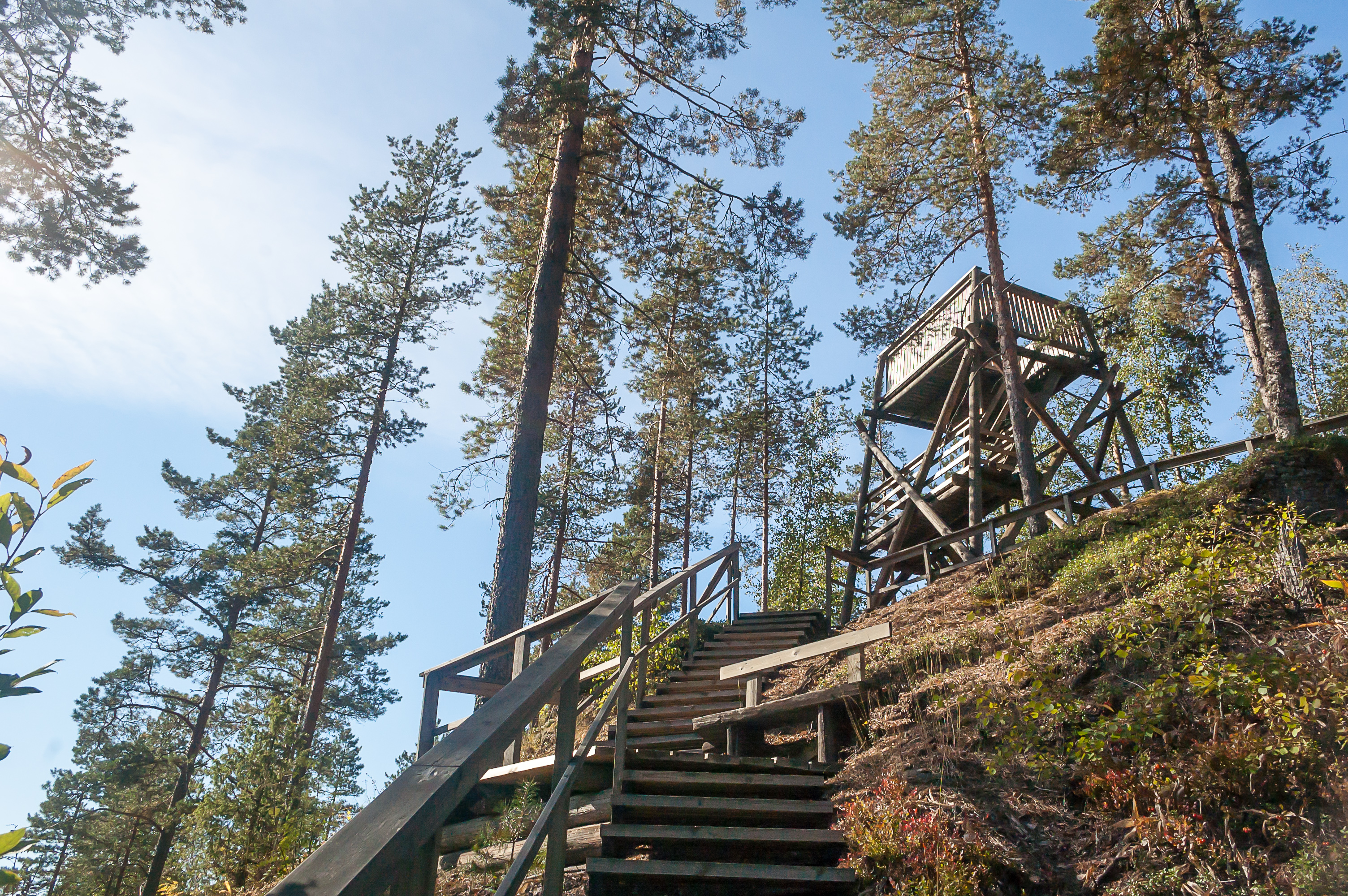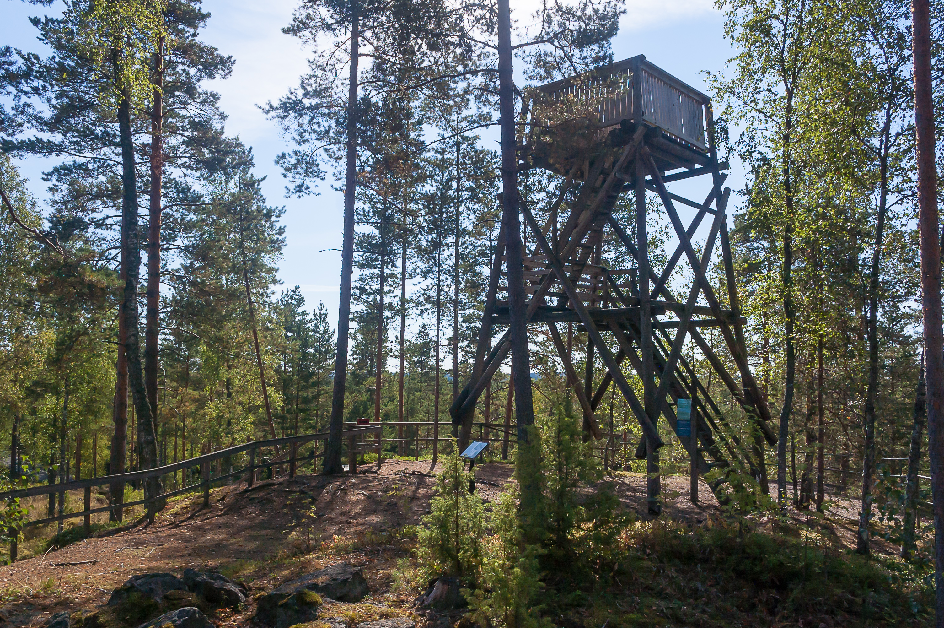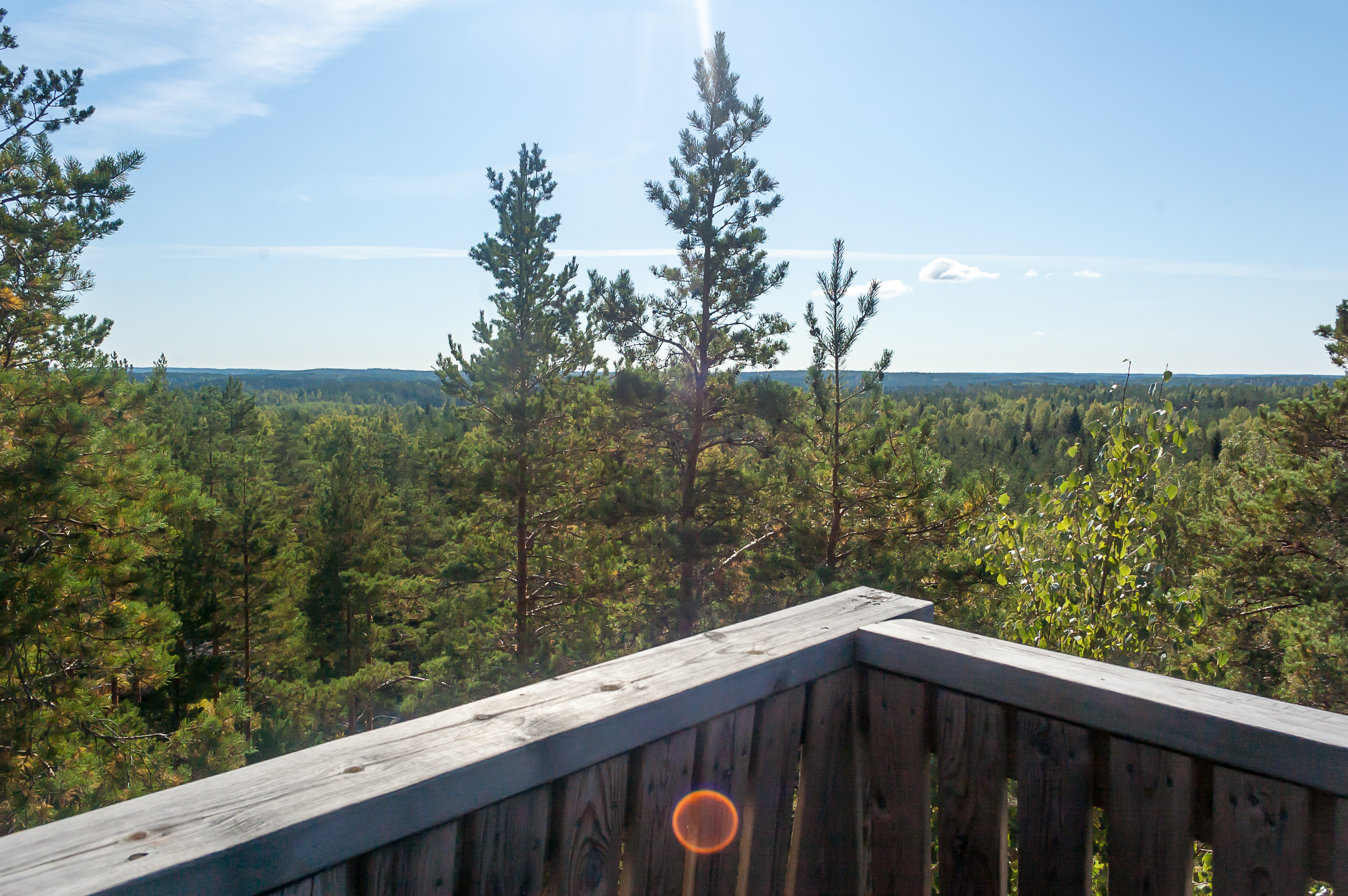 11. Наверху вышки. Во все направления до горизонта простираются безграничные сосновые леса. На самом деле до Финского залива всего 20-25 км по прямой, но тем не менее мне не удалось его разглядеть.